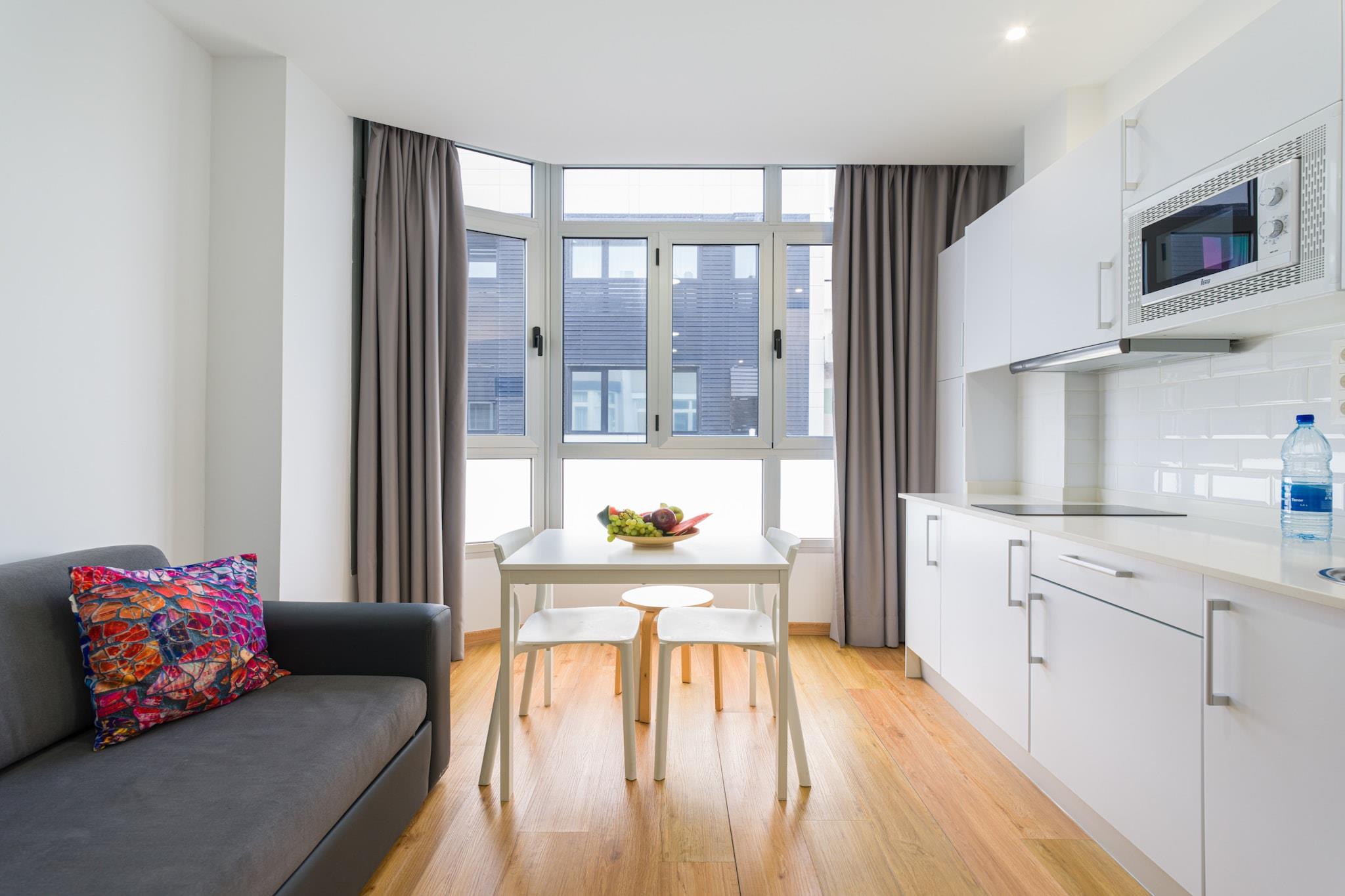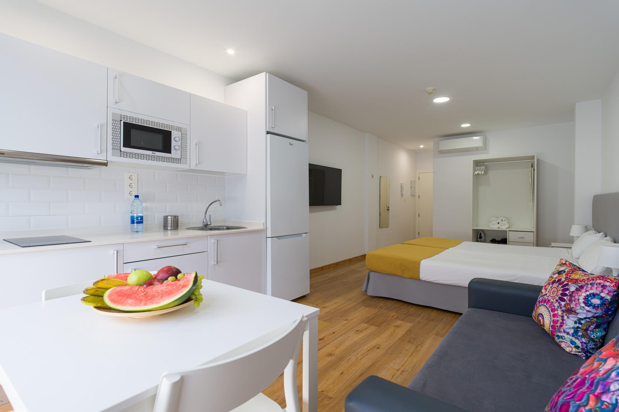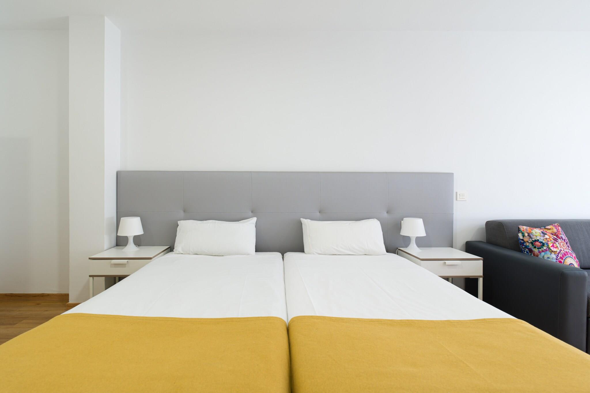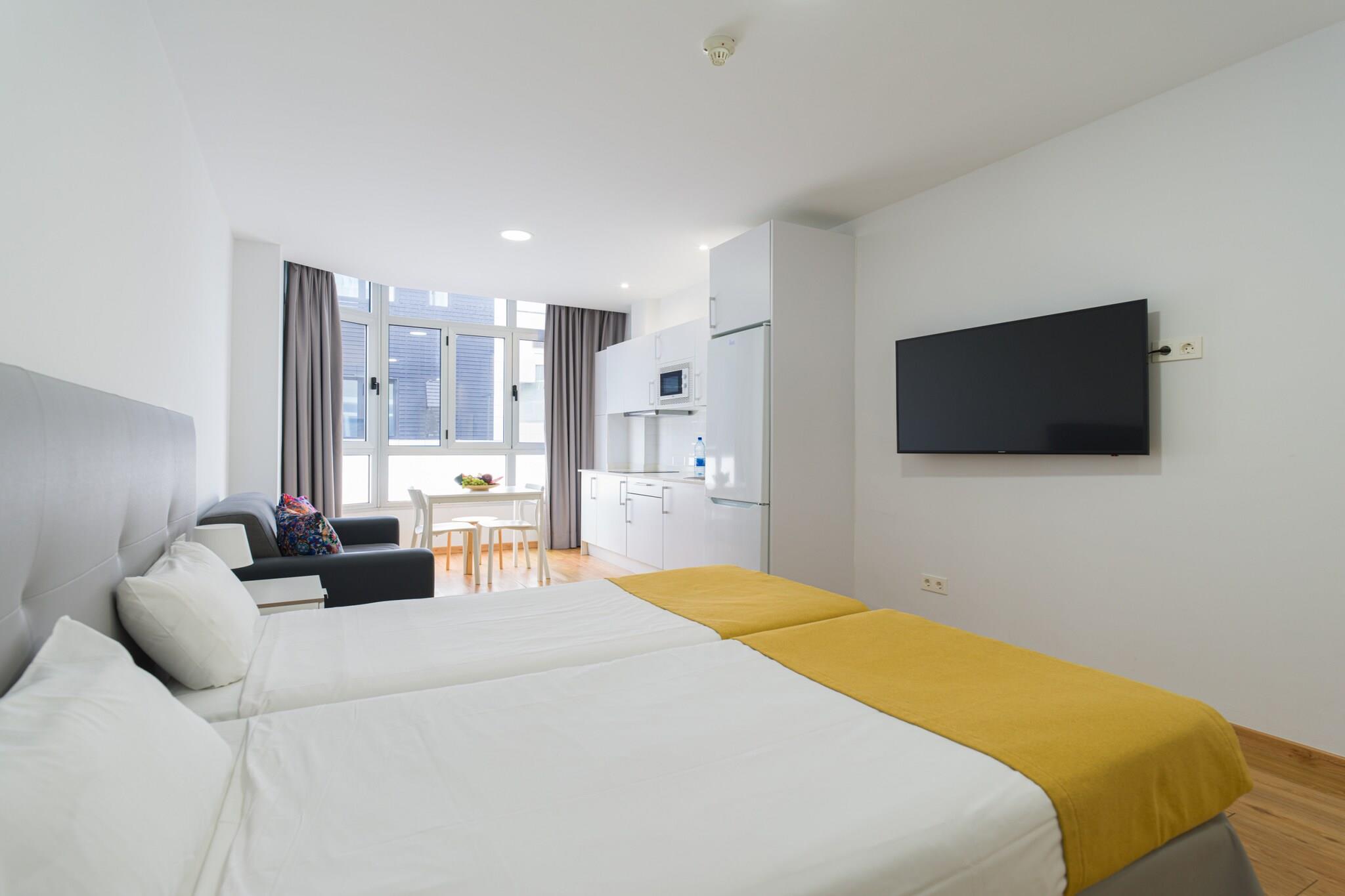 Vågn op til havbrisen i dette charmerende 35 m² store kysttilflugtssted i Las Palmas de Gran Canaria, perfekt til to gæster. Ideelt beliggende kun 70 meter fra det gyldne sand på Las Canteras-stranden og få skridt fra den livlige atmosfære i det lokale kvarter, tilbyder denne lejlighed både komfort og bekvemmelighed i et pulserende kystmiljø. Indenfor finder du et lyst og funktionelt rum, der føles som hjemme, udstyret med aircondition, Wi-Fi, et fladskærms-tv og alt det nødvendige for et ubekymret ophold. Det åbne køkken har en induktionskogeplader, køleskab, mikroovn, kaffemaskine, brødrister, kedel og alle nødvendige redskaber, hvilket gør det nemt at tilberede måltider eller nyde en morgenkop med udsigt. De store vinduespartier inviterer til naturligt lys og giver en hyggelig stemning hele dagen. Uanset om du er her for at slappe af ved stranden, udforske Las Palmas' kulturelle tilbud eller blot nyde det lokale køkken på nærliggende restauranter og markeder, har denne beliggenhed dig dækket. Med supermarkedet kun 20 meter væk, den pulserende promenade rundt om hjørnet og nem adgang til El Confital og lufthavnen (kun 26 km væk), har du alt hvad du behøver til en dejlig flugt fra Gran Canaria.