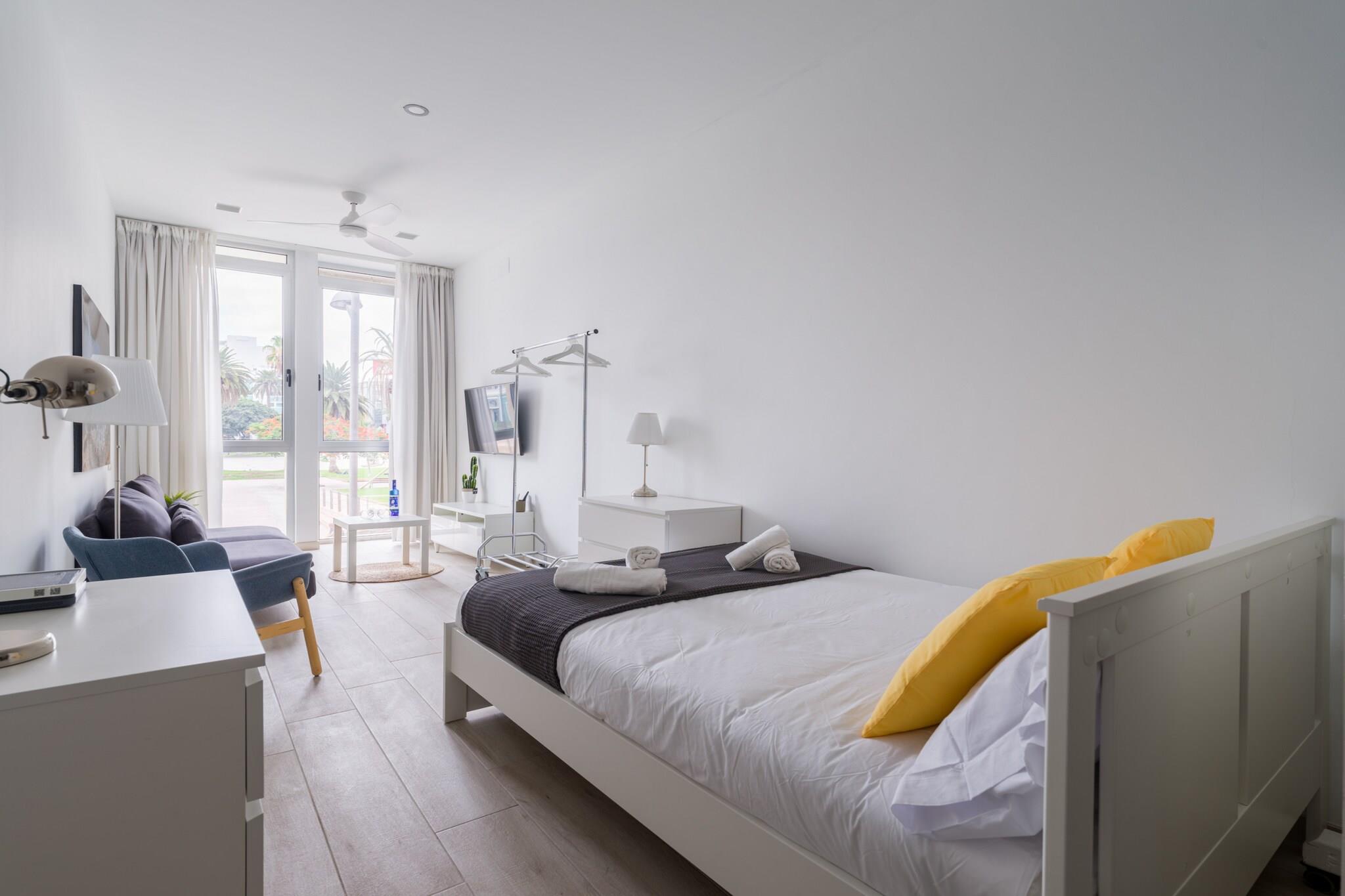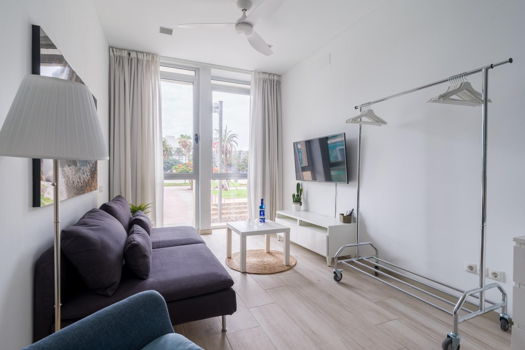 Oplev denne charmerende og moderne 1-værelses lejlighed beliggende i det pulserende hjerte af Las Palmas de Gran Canaria, kun få skridt fra Santa Catalina Park og Playa de Las Canteras gyldne sand. Perfekt til par eller solorejsende, denne hyggelige 35 m² store bolig tilbyder et komfortabelt tilflugtssted tæt på alt, hvad byen har at byde på. Indvendigt byder lejligheden på et lyst og smagfuldt indrettet opholdsrum med et veludstyret selvstændigt køkken med køleskab, mikroovn, ovn, fryser, kaffemaskine, elkedel, juicer, brødrister og alt det køkkenudstyr, du har brug for til et bekvemt ophold. Du vil også finde en vaskemaskine, strygejern, hårtørrer og gratis Wi-Fi for at gøre dit ophold så behageligt som muligt. For underholdning kan du nyde et fladskærms-tv og radio. Træd udenfor, og du er omgivet af fremragende spisemuligheder såsom Restaurante Casa Fataga og Little Italy, samt lokale caféer og butikker. Busstationen Intercambiador Santa Catalina ligger kun 100 meter væk, hvilket giver dig nem adgang til at udforske byen og videre. Inden for en kort gåtur kan du nå Las Alcaravaneras-stranden, Hiperdino-supermarkedet og kulturelle hotspots. Uanset om du er her for at slappe af ved havet, udforske byens charme eller besøge nærliggende golfbaner, naturreservater eller forlystelsesparker, er denne lejlighed den ideelle base. Book dit ophold og nyd det bedste af urban livsstil lige ved kysten!