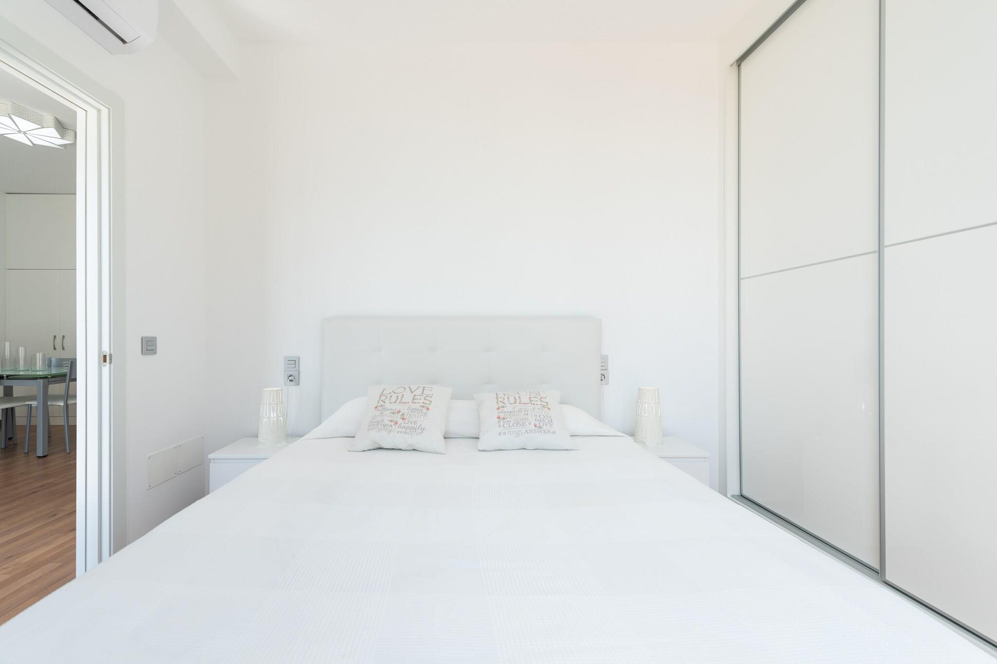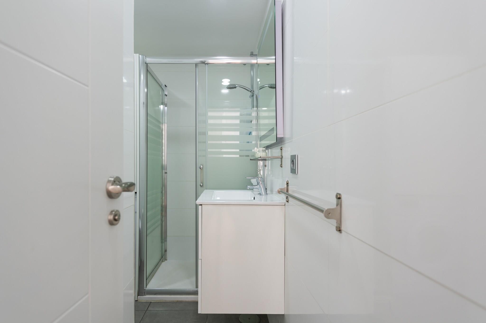 På 7. etage: (åbent køkken(kogeplade(glaskeramisk), elkedel, brødrister, kaffemaskine, ovn, mikrobølgeovn, opvaskemaskine , køle-fryseskab, Saftpresser, ), stue / spisestue(dobbeltsovesofa, Fjernsyn, spisebord, sofahjørne, radio), soveværelse(enkeltseng, enkeltseng), soveværelse(dobbeltseng), badeværelse(bruser), toilet(toilet)) , Internetadgang, Fjernsyn, tørretumbler, vaskemaskine, balkon, varme, terrasse, havemøbler, strygejern, luft til luft-varmepumpe, føntørrer, , Wine glasses
