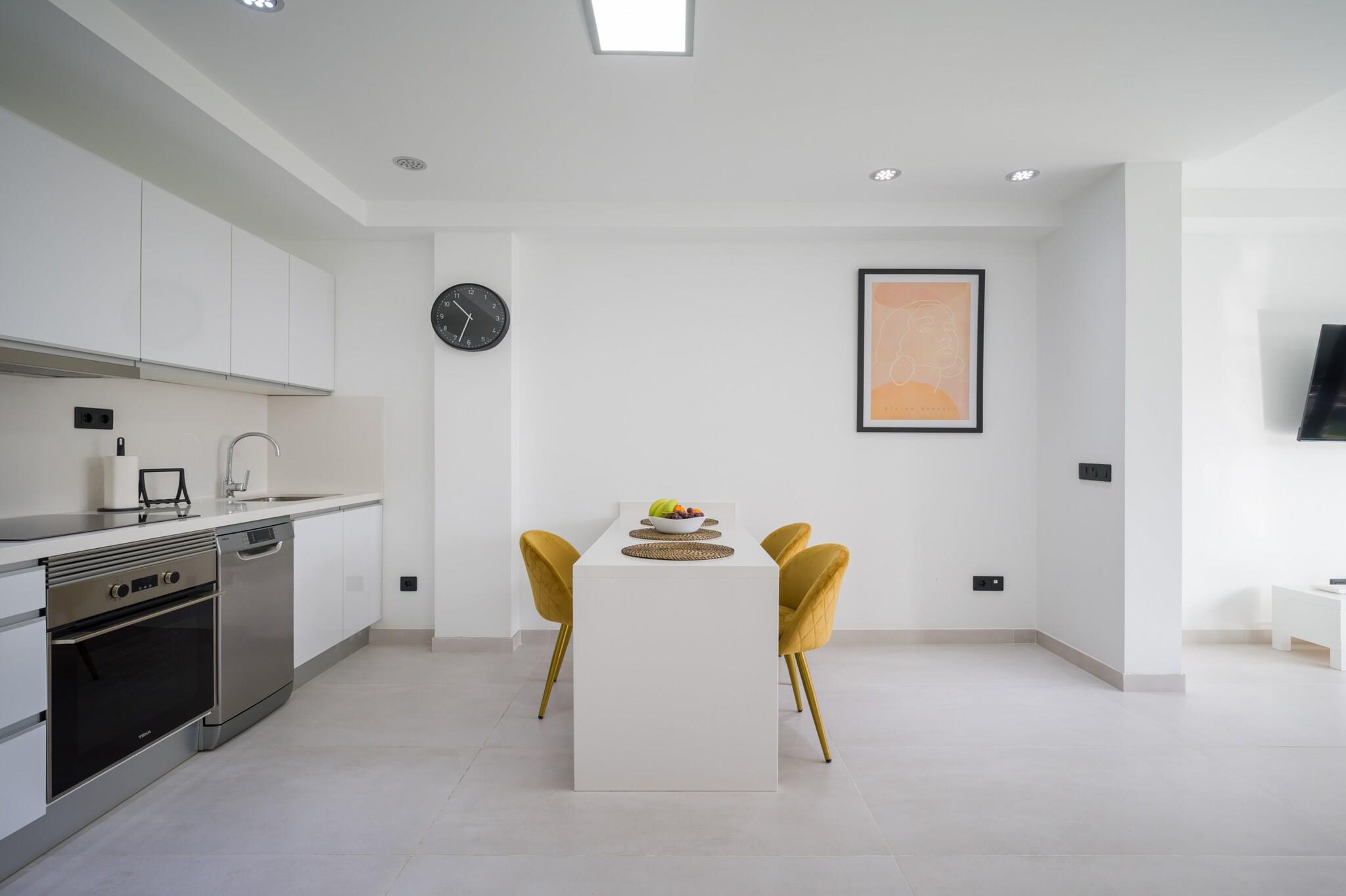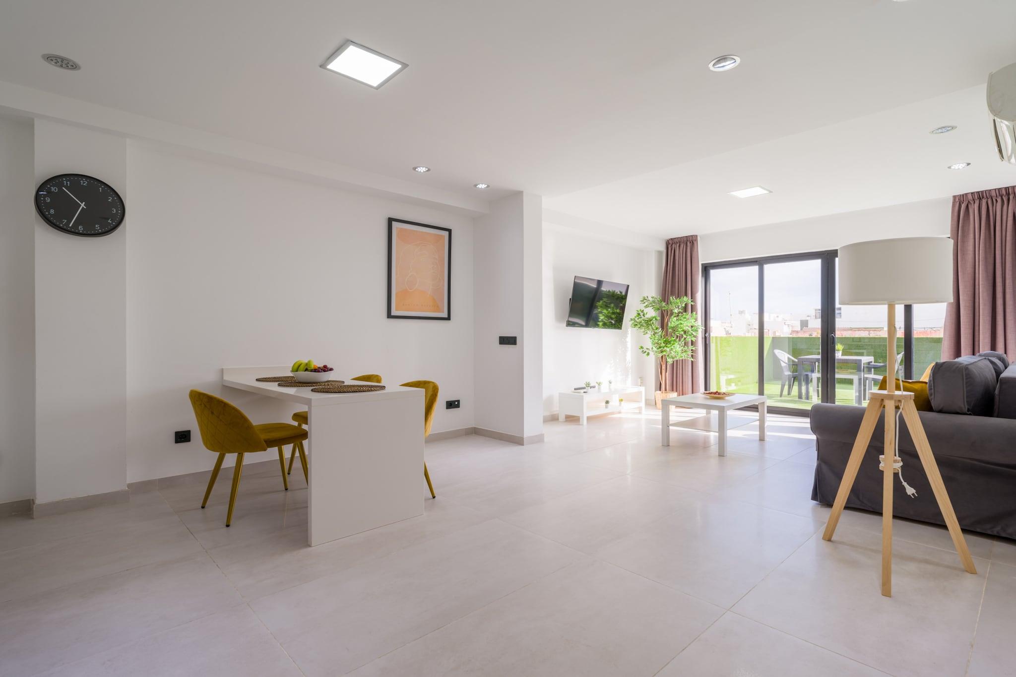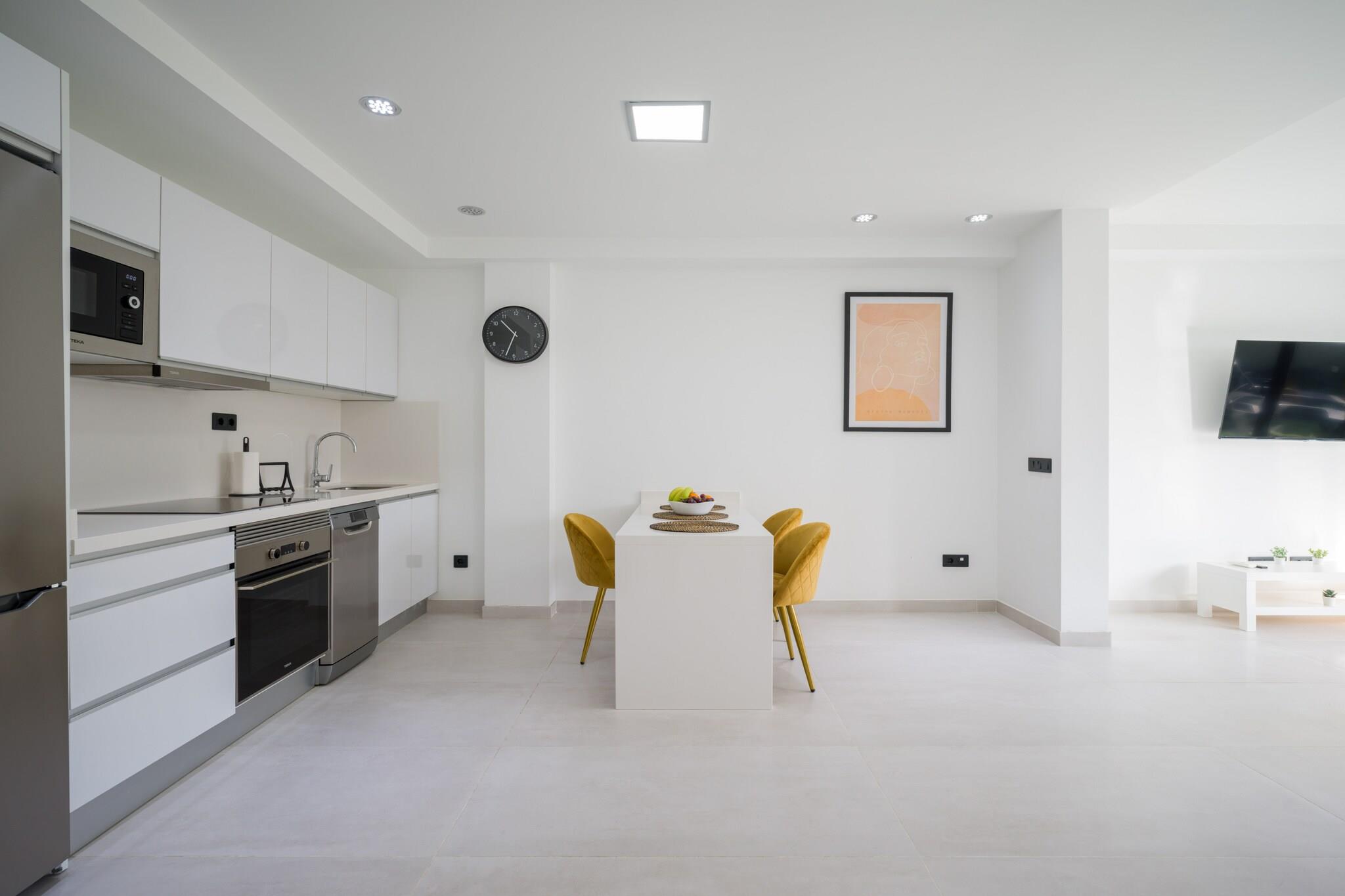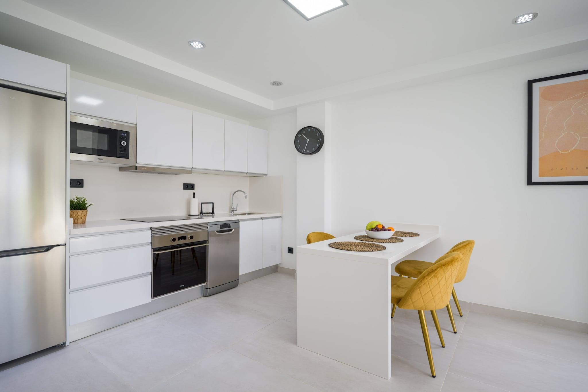 Nyd en behagelig storbyferie i denne hjemlige 1-værelses lejlighed i hjertet af Las Palmas de Gran Canaria, ideel til op til 3 gæster. Beliggende i et livligt centralt kvarter tilbyder denne lejlighed på 48 m² den perfekte blanding af bekvemmelighed og afslapning kun få skridt fra butikker, restauranter og offentlig transport. Lejligheden har en rummelig 20 m² stor terrasse, perfekt til at nyde morgenmaden udendørs eller slappe af efter en dag med udforskning af byen. Indenfor finder du et lyst og funktionelt opholdsrum udstyret med Wi-Fi, aircondition med varmepumpe, TV, radio og vaskemaskine. Det åbne køkken er fuldt udstyret med en keramisk kogeplade, køleskab, fryser, mikroovn, opvaskemaskine og alle nødvendige køkkenredskaber - inklusive en kaffemaskine, kedel, brødrister og juicer - hvilket gør tilberedningen af ??måltider enkel og behagelig. Uanset om du besøger for forretning eller fritid, tilbyder denne centralt beliggende lejlighed en komfortabel base med alt hvad du behøver for et behageligt og praktisk ophold i Las Palmas.