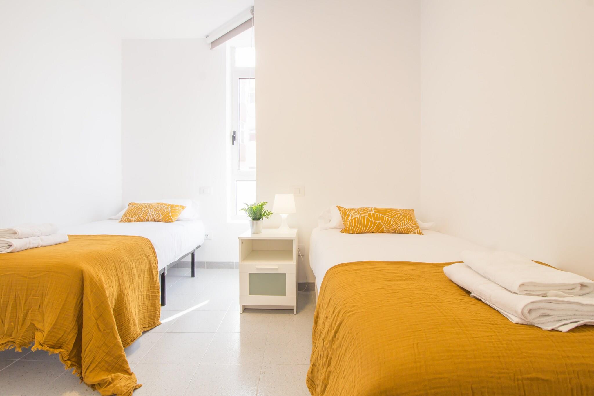 Denne rummelige lejlighed med 2 soveværelser ligger direkte ud til den gyldne sandstrand Playa de Las Canteras og tilbyder et lyst og hjemligt tilflugtssted for op til fire gæster. Med et areal på 84 m² og en privat terrasse på 6 m² er det det ideelle sted for familier, par eller venner, der ønsker at nyde strandlivet i hjertet af Las Palmas. Nyd den rolige havudsigt, det pulserende lokalliv og direkte adgang til en af de mest berømte bystrande i Europa. Lejligheden er designet med komfort og funktionalitet i tankerne og har et fuldt udstyret åbent køkken med keramisk kogeplade, ovn, mikrobølgeovn, køleskab, fryser og et komplet udvalg af køkkenredskaber og apparater, herunder kaffemaskine, brødrister, elkedel og juicer. Yderligere faciliteter inkluderer højhastigheds-Wi-Fi, vaskemaskine, hårtørrer, strygejern og et fladskærms-tv - hvilket sikrer et behageligt og afslappende ophold. Opholdsstuen åbner ud til en charmerende terrasse, perfekt til at nippe til morgenkaffen eller nyde solnedgangen. Beliggende i et familievenligt område med alle nødvendige fornødenheder kun få skridt væk, finder du restauranter som Mandú, caféer som Granier og Hiperdino-supermarkedet inden for 100 meter. Santa Catalina busstation ligger kun 700 meter væk, hvilket giver nem adgang til nærliggende attraktioner såsom El Confital naturreservat, Las Palmeras Golf og den historiske by Arucas. Uanset om du er på jagt efter sol, hav eller kultur, placerer denne lejlighed ved stranden dig i centrum af det hele. Bemærk: Der er igangværende byggeri i nærheden af ejendommen. Ifølge husejeren er arbejdet stadig i gang og forventes at fortsætte i de næste tre måneder.