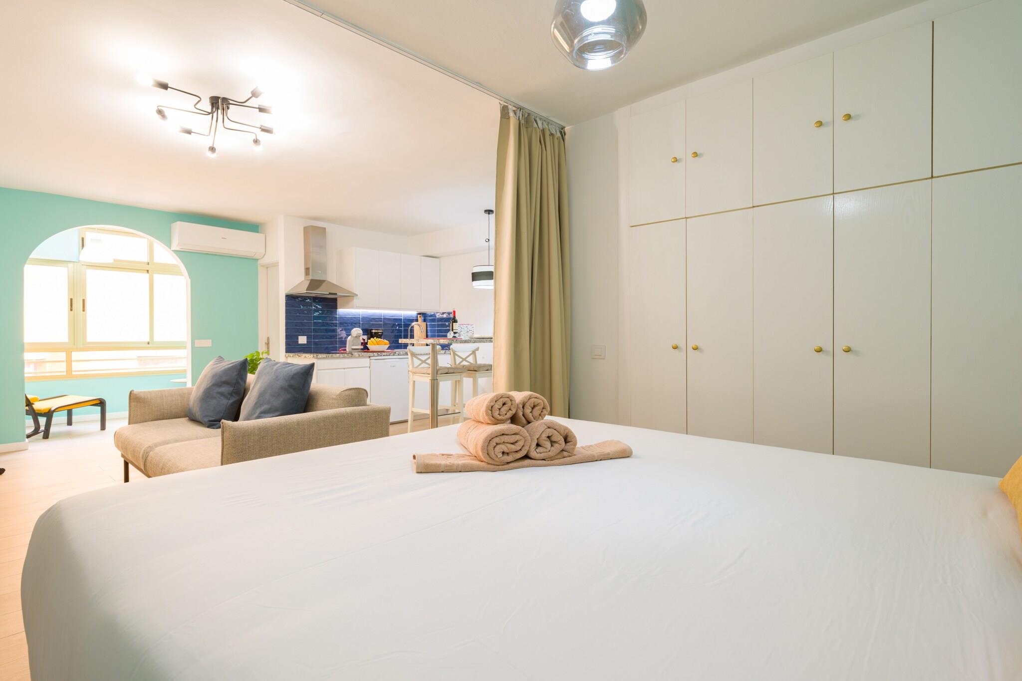 Dette lyse og hyggelige hus på 45 m² ved stranden er det perfekte tilflugtssted for 2 gæster, ideelt beliggende lige ved stranden af ??Playa de Las Canteras. Træd udenfor, og du er kun 5 meter fra sandet, med supermarkeder, caféer og restauranter som Bella Lucia og La Barca de San Andrés kun få skridt væk. Designet til komfort og bekvemmelighed, lejligheden har et rummeligt layout med naturligt lys, moderne møbler og en fantastisk havudsigt. Nyd at slappe af indendørs med faciliteter, herunder Wi-Fi, aircondition, et tv, vaskemaskine, tørretumbler og elevator. Gæsterne har også adgang til en fælles swimmingpool - ideel til at slappe af efter en dag med udforskning. Det fuldt udstyrede køkken i åbent plan omfatter en keramisk kogeplade, ovn, mikroovn, køleskab, fryser, kaffemaskine, brødrister og alle de redskaber, der er nødvendige for at tilberede måltider derhjemme. Med Las Alcaravaneras-stranden, golfbaner som Las Palmeras og El Cortijo og lokale busstationer kun få minutter væk, er dette hjem en fremragende base for at opdage Las Palmas og øen udenfor. Uanset om du er her for sol, surf eller en afslappende flugt ved havet, tilbyder denne ejendom alt, hvad du behøver for et mindeværdigt ophold.