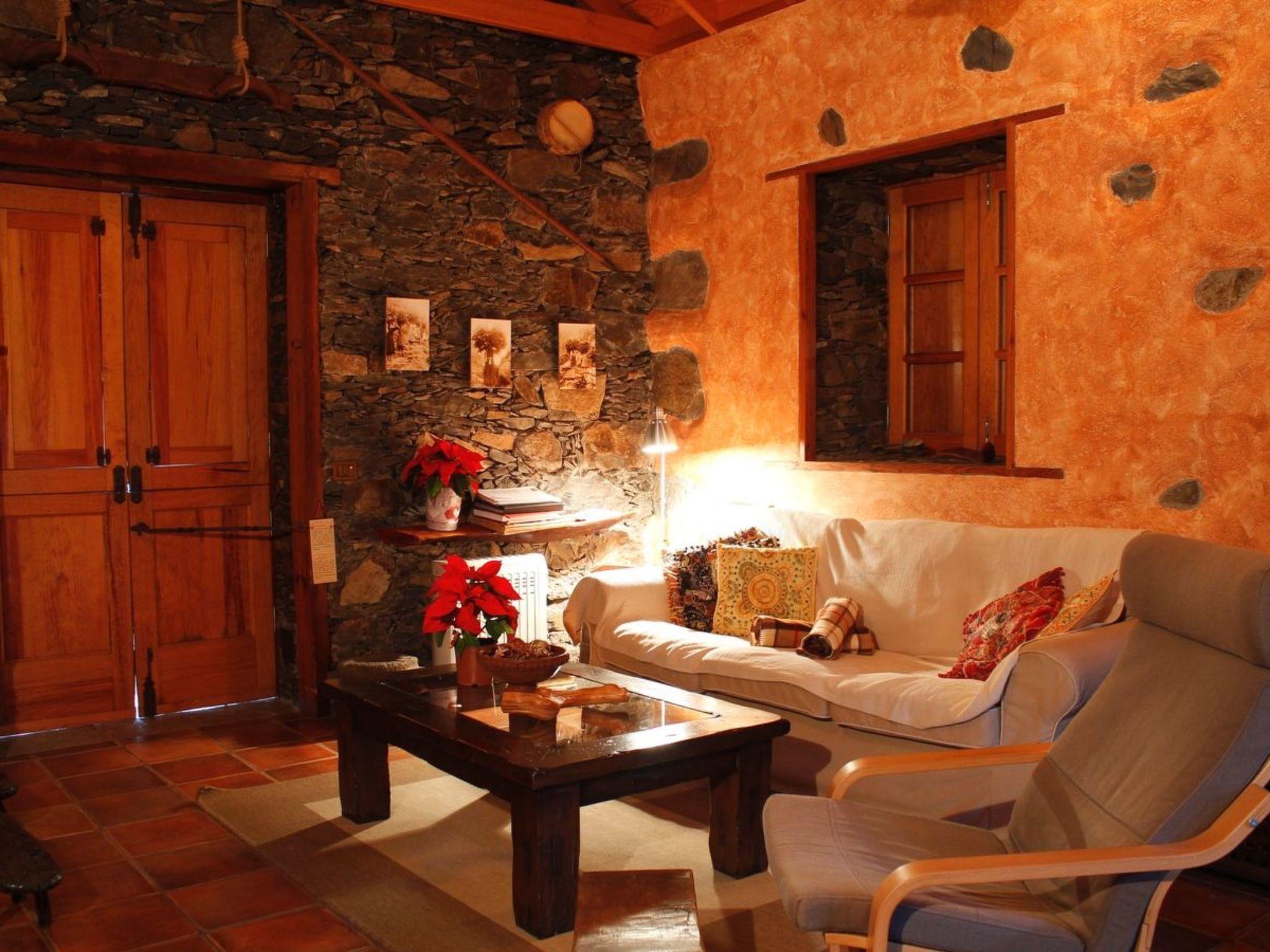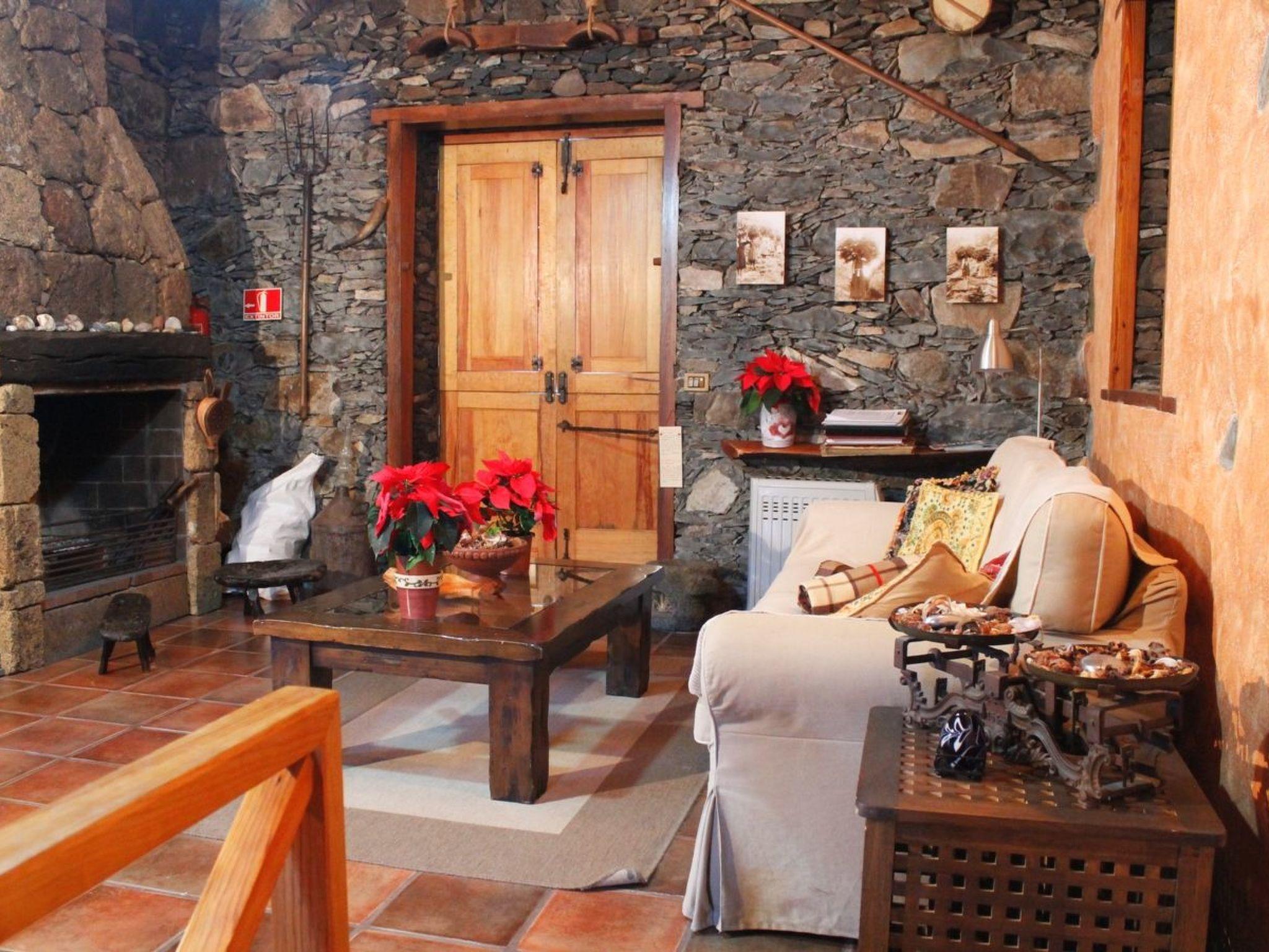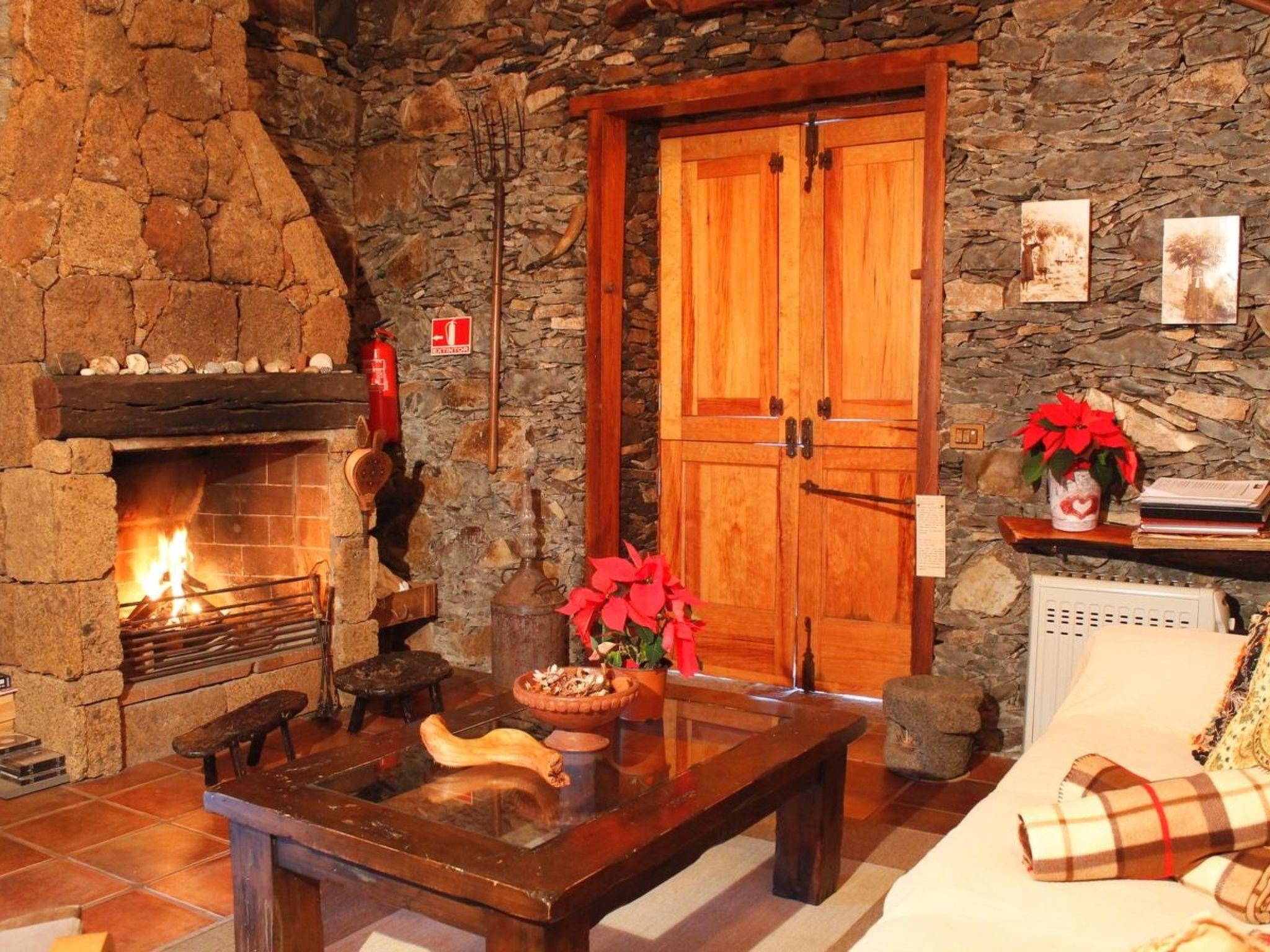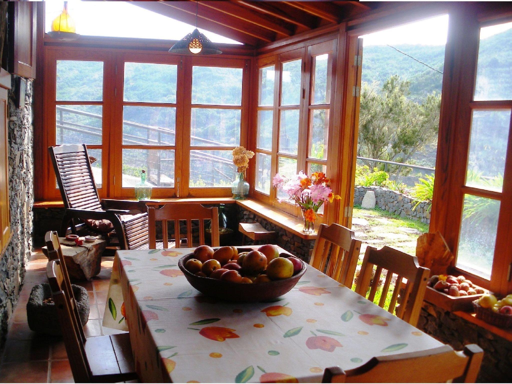 It has 2 bedrooms (master bedroom with a double bed in the attic) and the other with 2 single beds and a cot for small children, a bathroom with shower, kitchen (stove, refrigerator, microwave, fondue, blender, juicer, coffee maker, etc.), a living room with satellite TV, flat screen TV, Wi-Fi, stereo, CD's for guests, a fireplace, a sofa for 3 people and a hammock, a covered veranda with table, chairs and rocking chair.