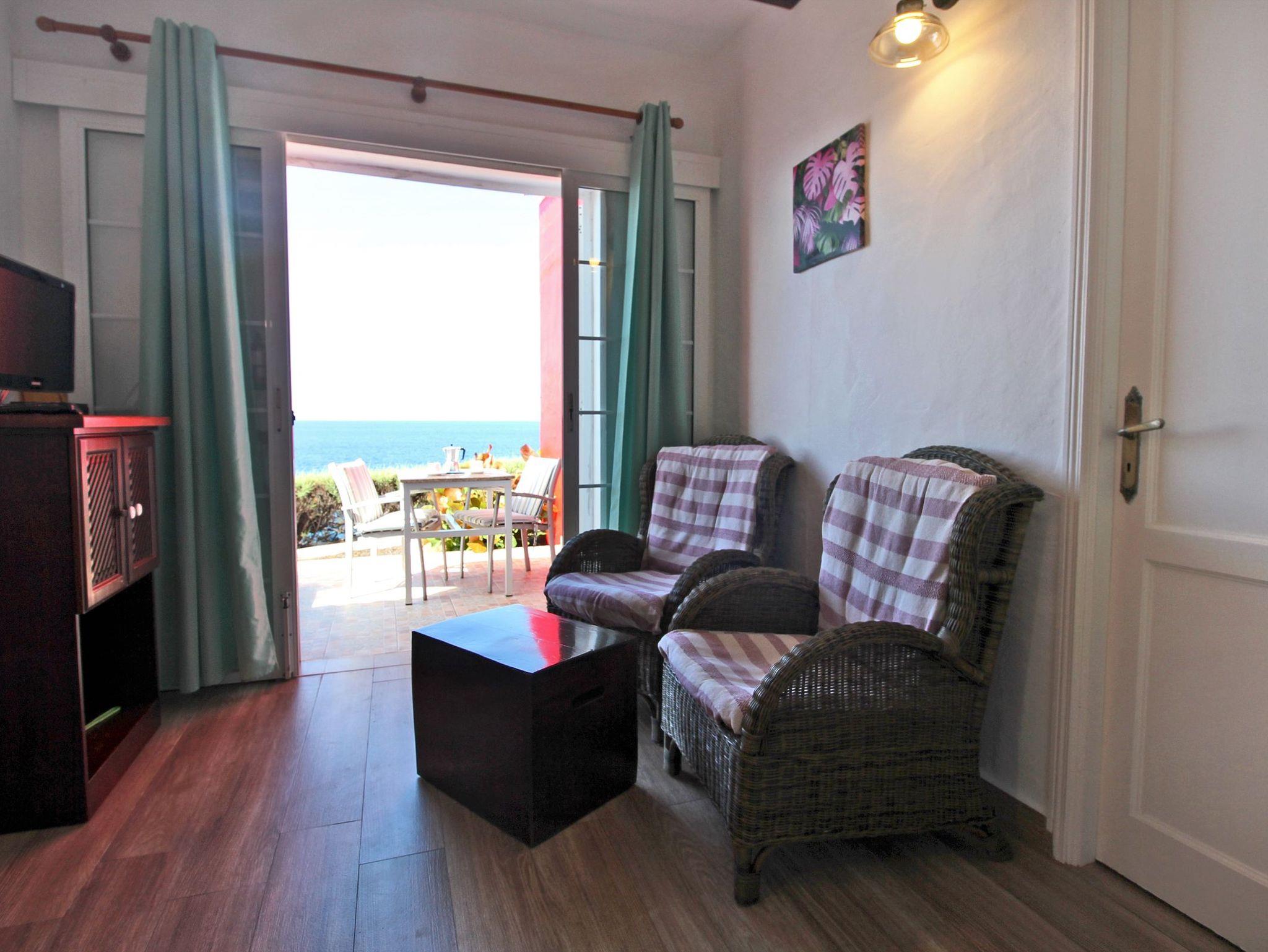 Der Meerblick ist seitlich (von der Terrasse), dafür ist nach Vorne noch etwas Platz zum Garten. Apt. 3 ist am nächsten zum Meer. Diese Unterkünfte sind jeweils mit einem Sofa ausgestattet.