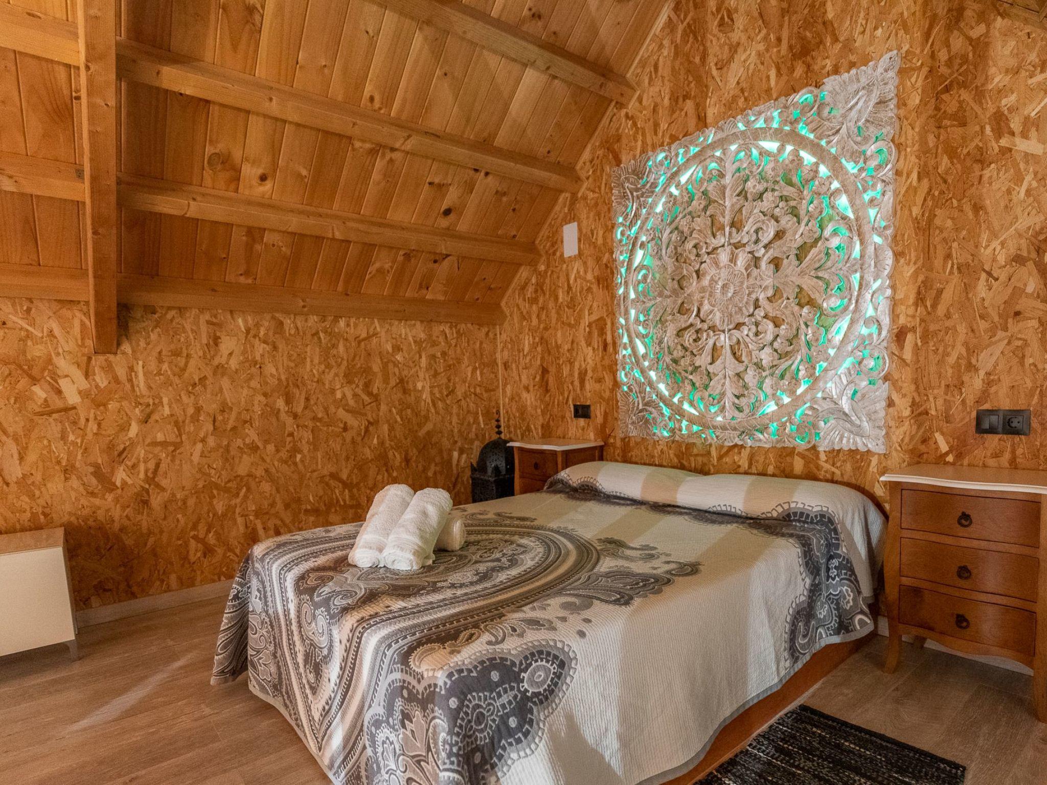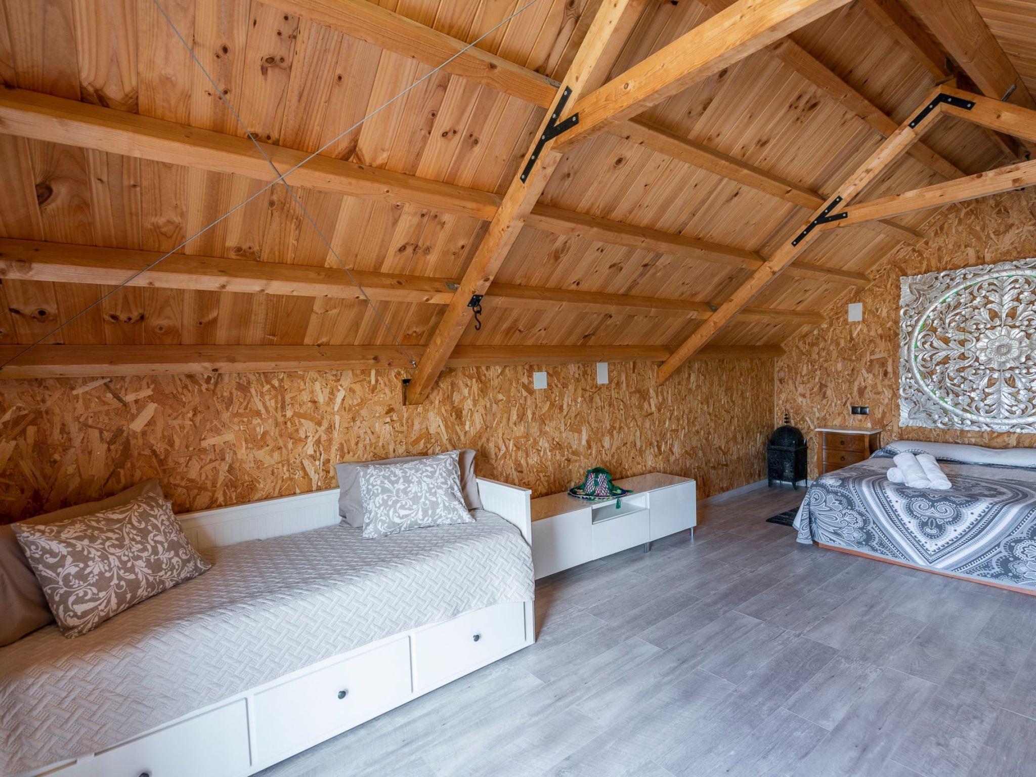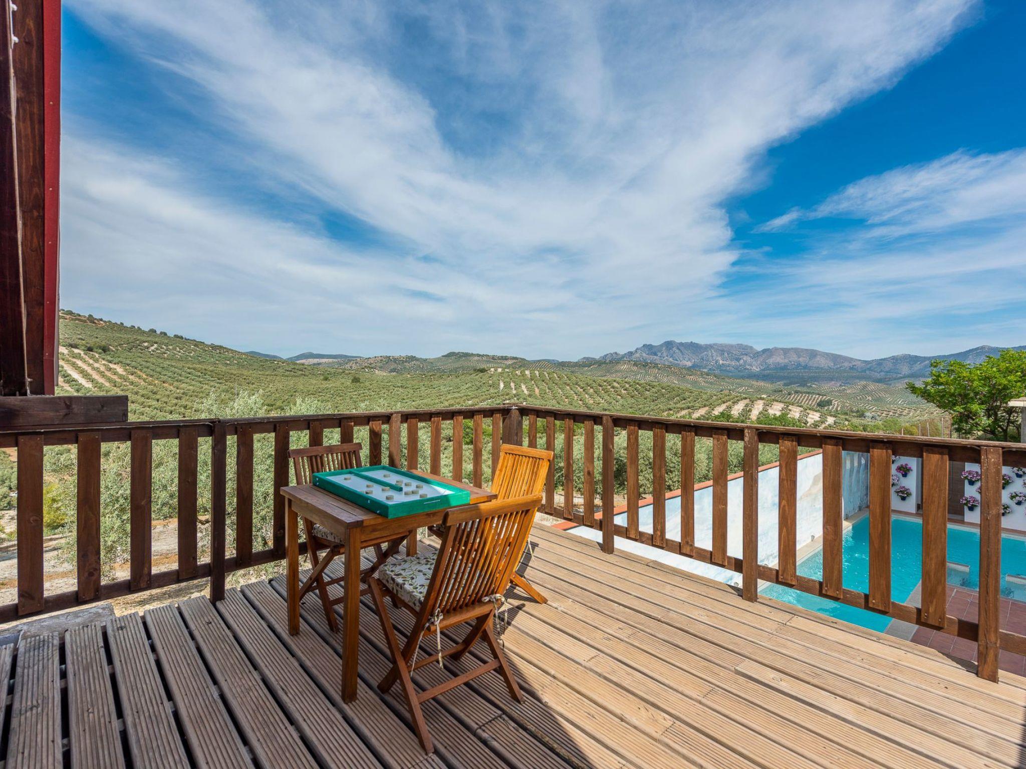 Upstairs we have a magnificent bedroom with a double bed of 1,50x1,90 and a double divan and a terrace with incredible views of the mountains. We also have some hooks to place a hammock for the little ones. From here there is access to an incredible terrace with views of the Sierras Subbéticas and the extensive olive groves of the area.