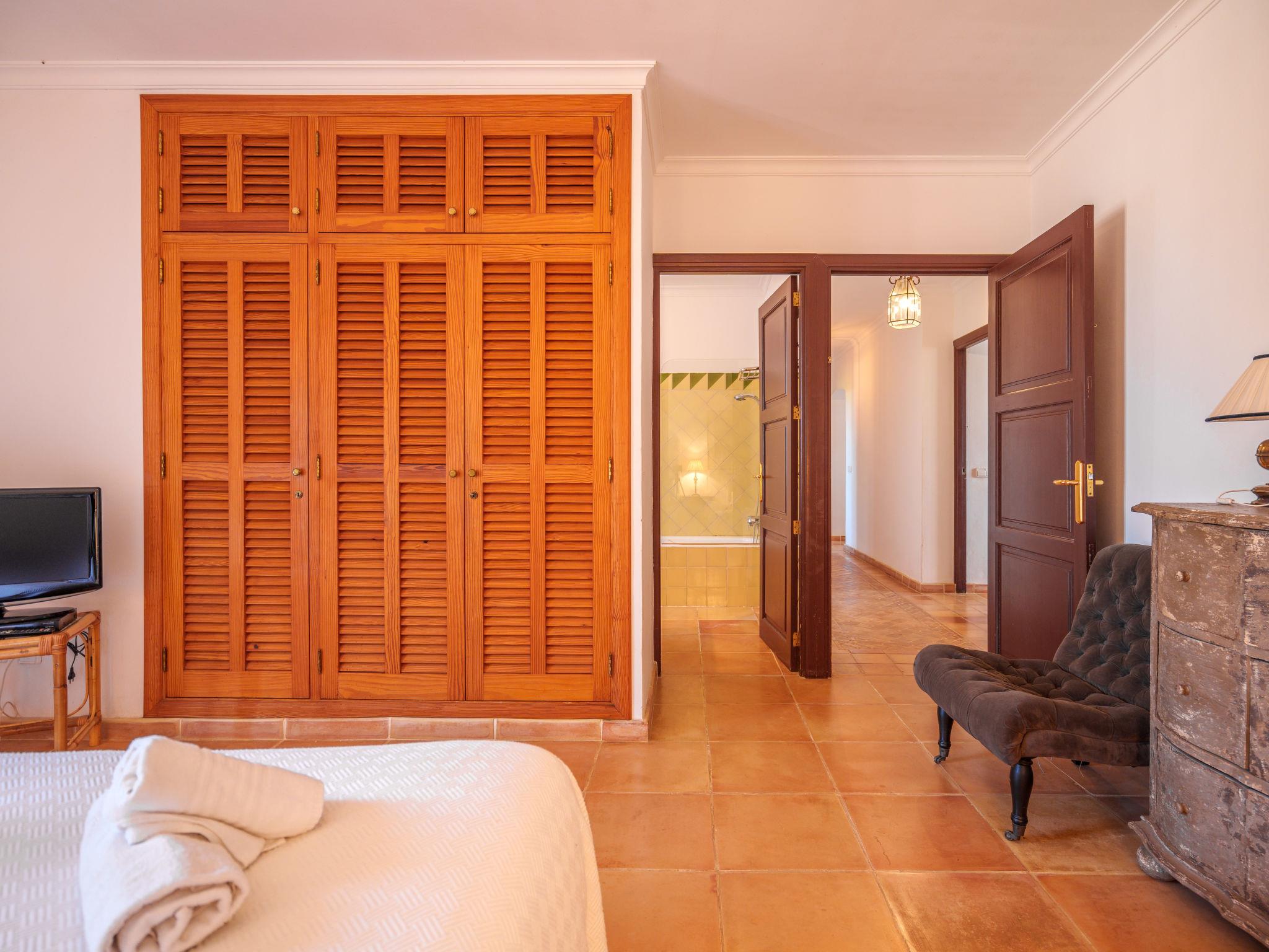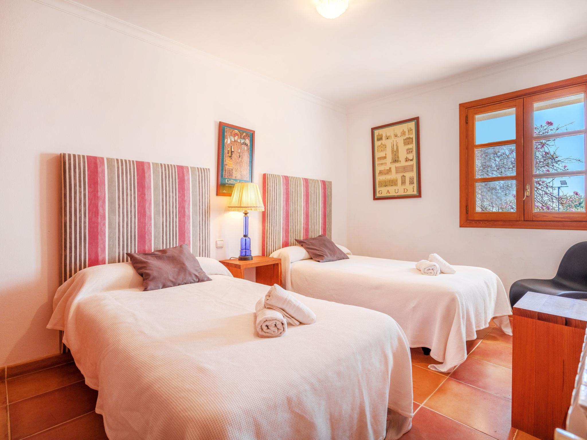 "Gran Llombards", 5-room house 200 m2 on 2 levels. Object suitable for 6 adults. Very comfortable furnishings: living room with open-hearth fireplace, digital TV, international TV channels and flat screen. Exit to the patio. Dining room with dining table, digital TV and flat screen. Kitchen-/living room (oven, dishwasher, 3 ceramic glass hob hotplates, toaster, kettle, microwave, freezer, electric coffee machine) with dining table. Shower/WC. Upper floor: 1 large double bedroom with 1 french bed (150 cm, length 200 cm), bath/WC. Exit to the terrace. 3 large double bedrooms, each room with 2 beds (90 cm, length 200 cm), bath/WC. Large balcony, patio, porch. Terrace furniture, balcony furniture, barbecue, deck chairs (4), covered balcony. View of the resort. Facilities: washing machine, iron, children's high chair, baby cot, hair dryer. Internet (WiFi, free). Parking (fenced 2 cars) at the house. Please note: non-smoking house. The pool mentioned in the description is for private use. ETV/9186 // Reg. Nr.: ESFCTU00000700800077721500000000000000000000ETV/91868