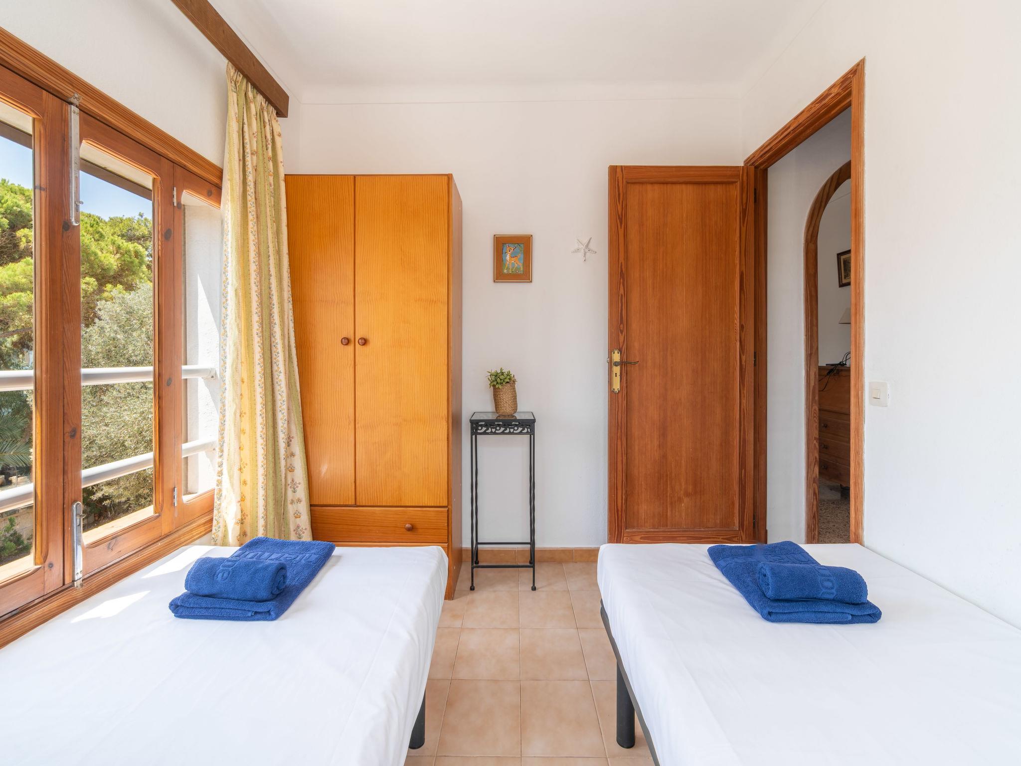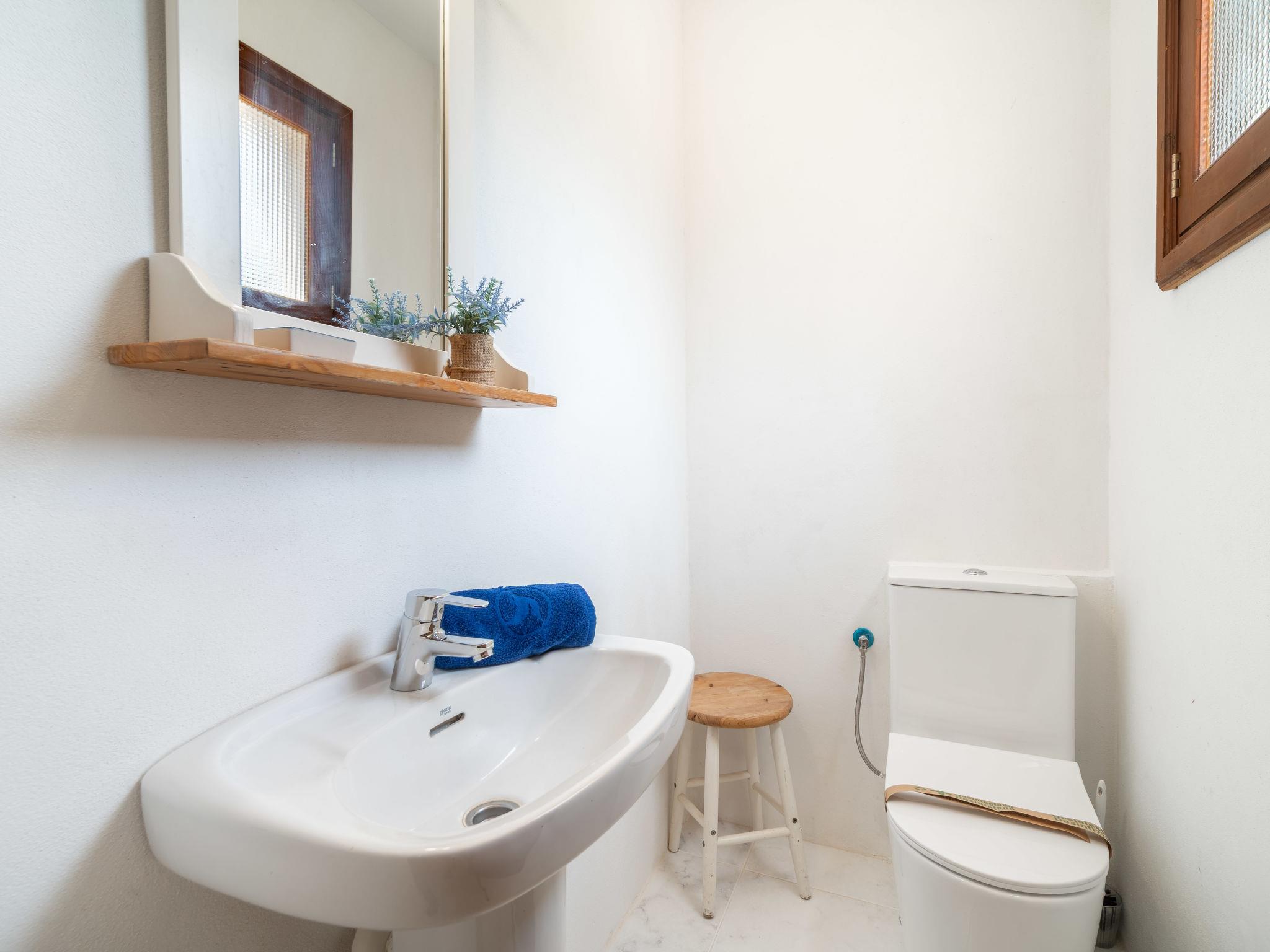 "Can Jordi", 7-room house 135 m2. Object suitable for 8 adults. Living/dining room with open-hearth fireplace, dining table, air conditioning and forced-air heating. Exit to the patio. 2 rooms, each room with 1 bed (90 cm, length 190 cm). 1 double bedroom with 1 french bed (1 x 150 cm, length 190 cm), fan. Kitchen (oven, dishwasher, 4 ceramic glass hob hotplates, toaster, kettle, microwave, electric coffee machine) with air conditioning and forced-air heating. Exit to the patio. Bath/WC. Upper floor: living room with air conditioning and forced-air heating. 1 double bedroom with 1 french bed (1 x 150 cm, length 190 cm). 1 double bedroom with 2 beds (90 cm, length 190 cm). Bath/WC. Natural stone floors. Garden, lawn. Terrace furniture, barbecue, deck chairs (3), covered balcony. View of the countryside and the bay. Facilities: washing machine, iron, children's high chair, baby cot for up to 2 year olds. Internet (WiFi, free). Suitable for families. ETV/12011 // Reg. Nr.: ESFCTU0000070080007488710000000000000000000ETV/120113