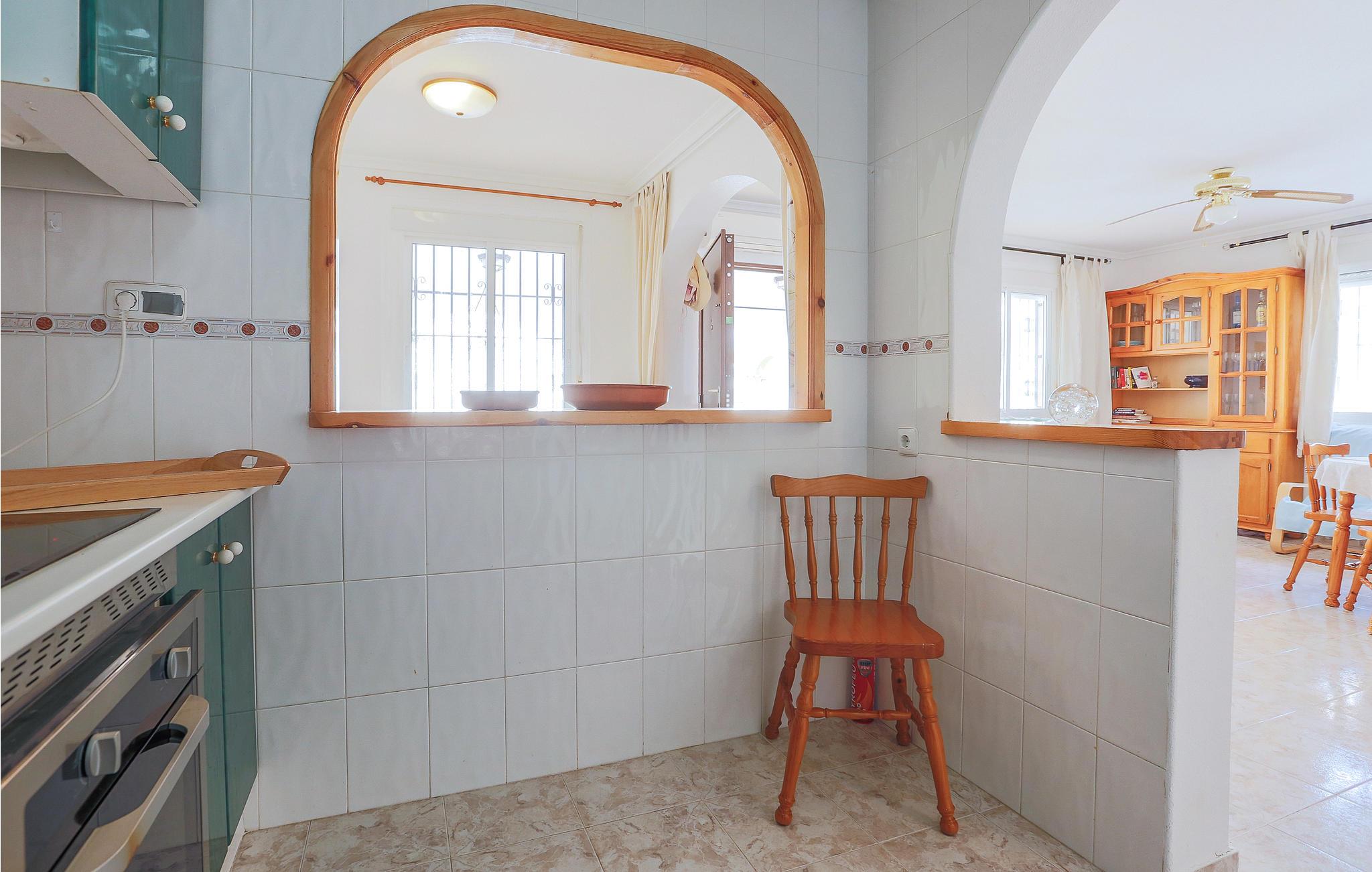 Velkommen til dette lyse og familievenlige feriehus tæt på de smukke sandstrande ved Mar Menor. Huset byder på gode faciliteter og passer særligt godt til børnefamilier. Med sine dekorative detaljer tilbyder ferieboligen en behagelig atmosfære og base for udflugter og aktiviteter. Nyd jeres måltider på den overdækkede terrasse og læg planer for de næste dage.