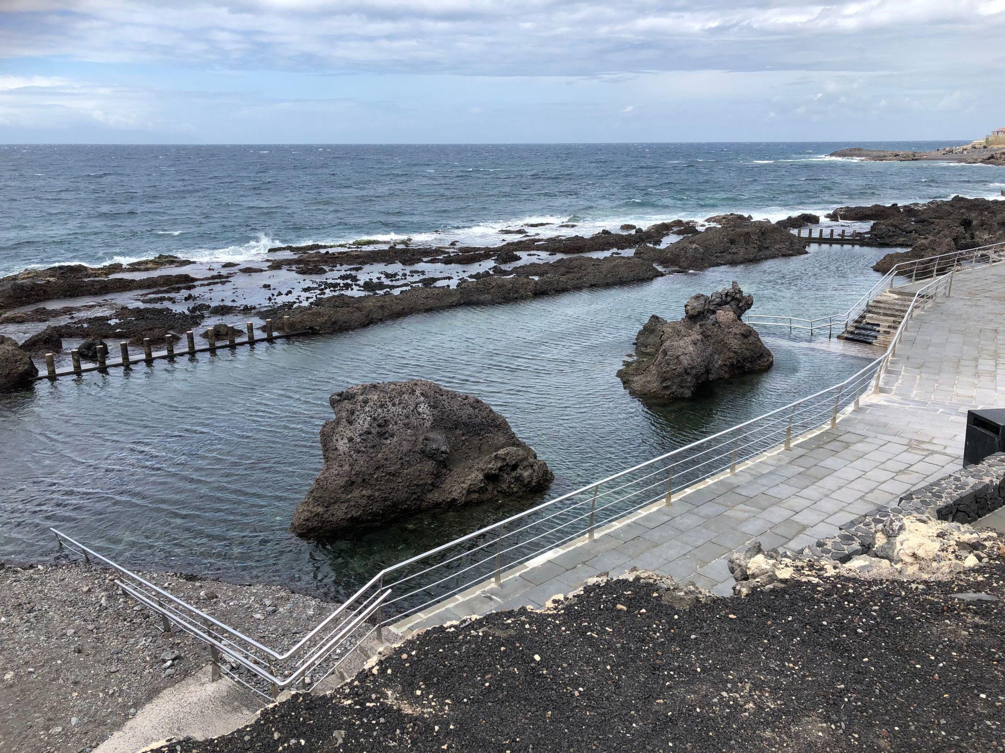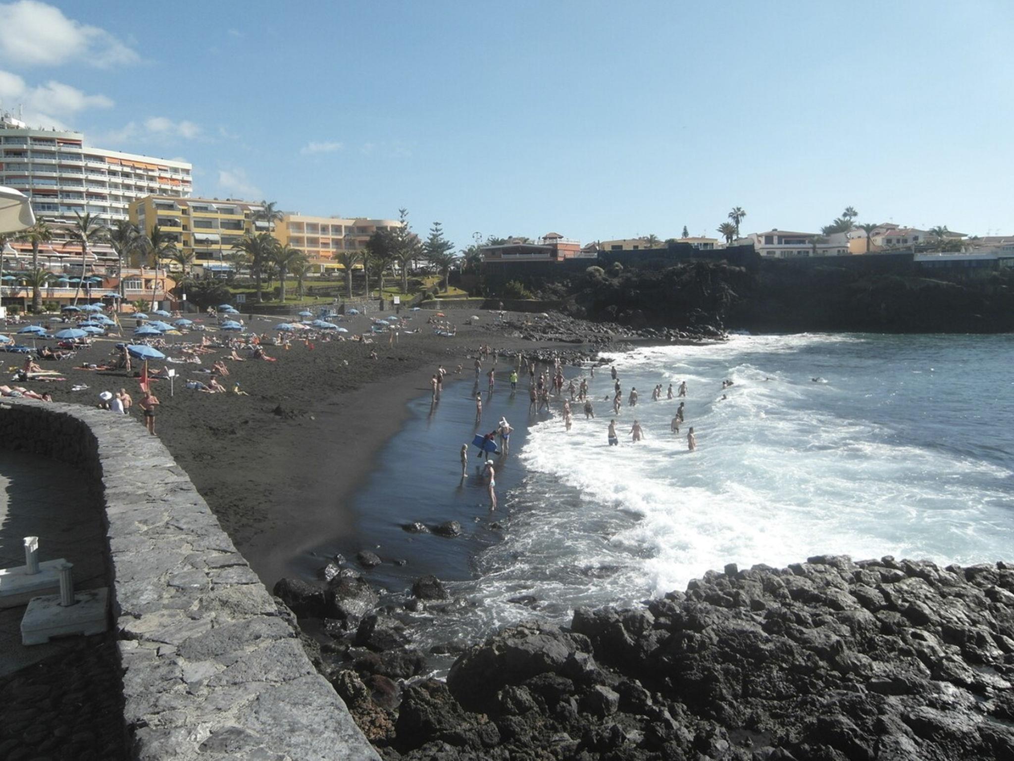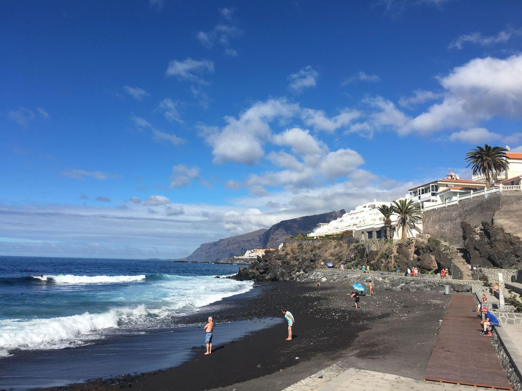 The flat is located in a well-kept complex, quite directly on the black sandy beach 'Playa La Arena' in the idyllic holiday resort of Puerto Santiago, and delights with its large, beautifully furnished balcony with a fantastic view of the sea and the neighbouring island of La Gomera. From the roof terrace you also have a view of the mountains and the island giant Teide.