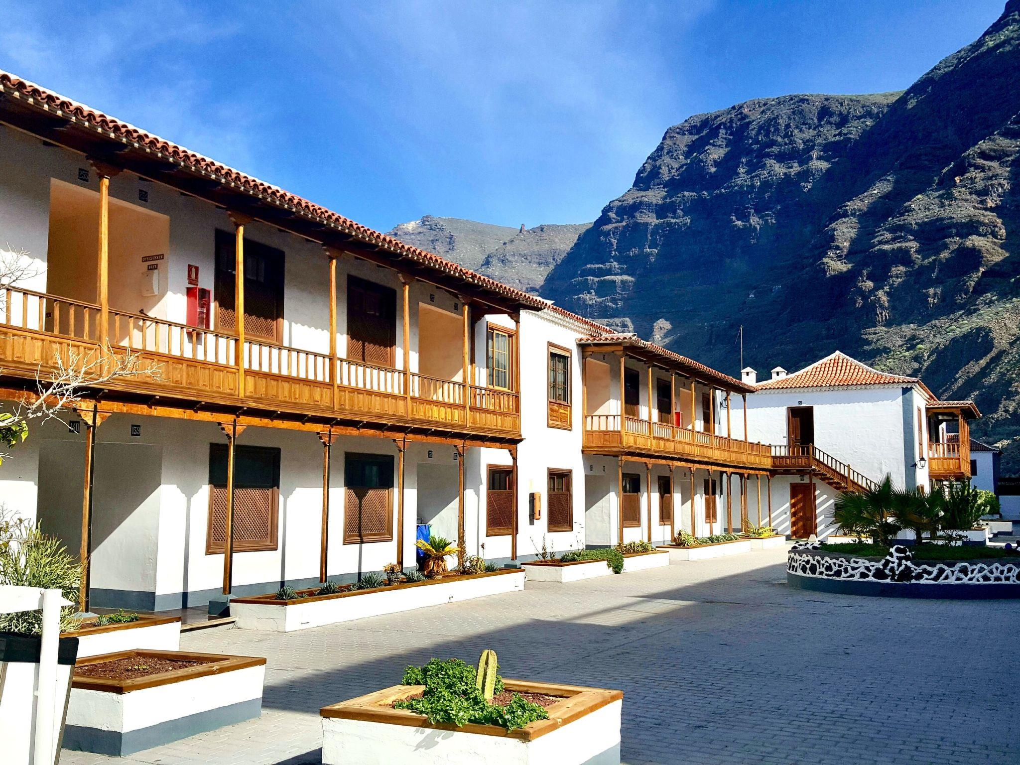The superb view of the cliff, the charm of the port, the typical Canarian architecture, the proximity to the beach and the "Oasis" heated swimming pool, the convenience of all services within 300 meters Los Gigantes is renowned for its reef and numerous boat excursions for the sight of dolphins and whales. Excursions by jet ski, kayak, diving in the various bays of the cliff are also possible. Several possibilities for trekking in the mountains and in the nearby Maska valley. In the small center there is a small church whose square is often home to parties and events, there are supermarkets, bars, pubs and restaurants.