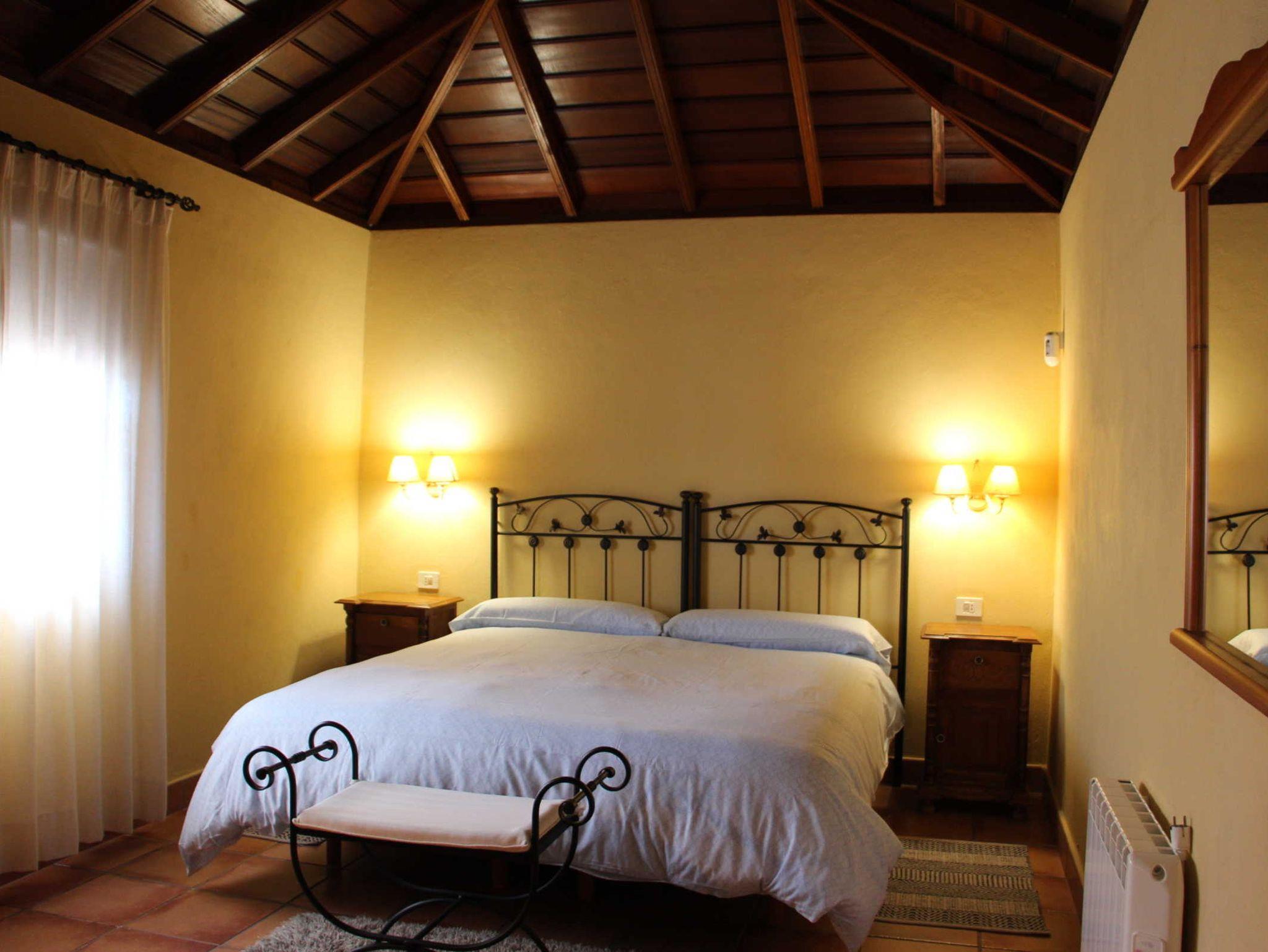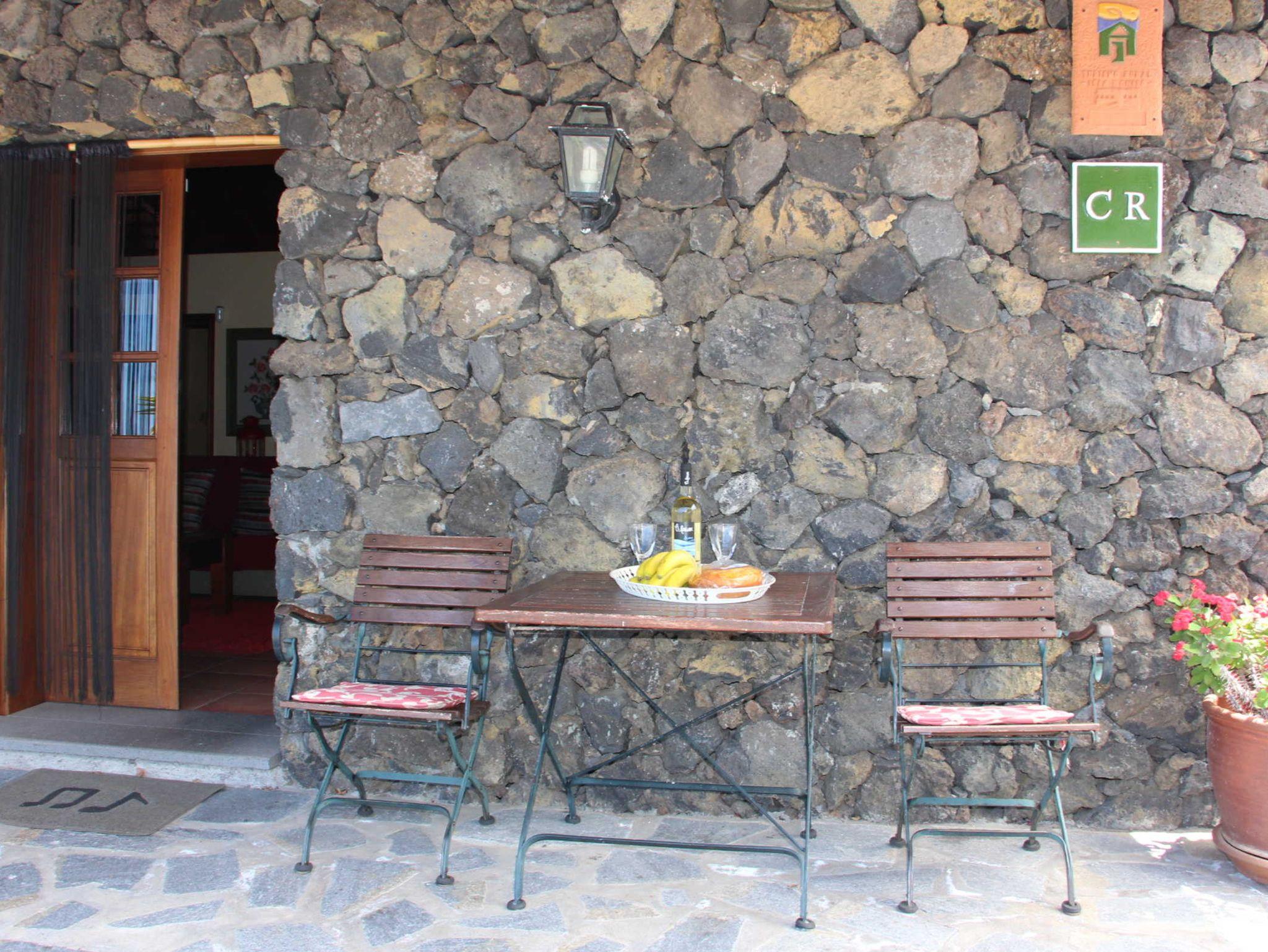 Alle Räume haben ein kanarisches Holzgiebeldach. Um den kleinen Kamin im Wohnbereich gruppieren sich ein Sofa und zwei Stühle. Sat-TV, ein großer Flachbildfernseher und Internet-WLAN gehören selbstverständlich zur komfortablen Ausstattung. Die Wandbilder sind allesamt Handarbeiten der Mutter der Eigentümerin. Die Küche bietet viel Arbeitsfläche und zusätzlichen Platz für Geschirr in einer schönen Vitrine. Am Esstisch im Mittelpunkt des Raumes ist Platz für bis zu 4 Personen.