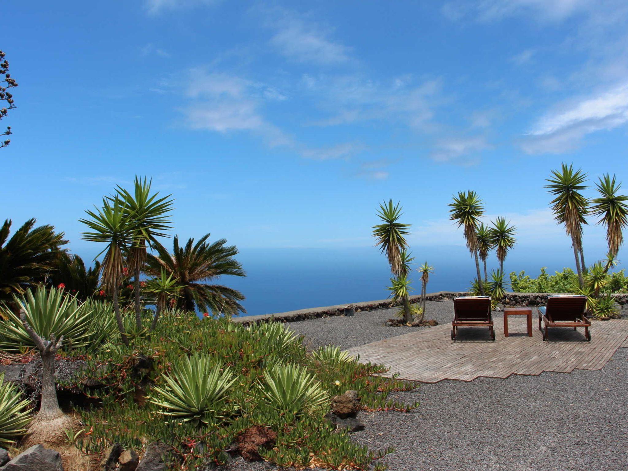 Sehr schön ist der mit Holz ausgelegte Platz für die Sonnenliegen, von hier haben Sie einen wunderbaren Blick auf das Meer und die pittoreske Vulkanlandschaft des Südens. Zwei große Bäume bieten ein schattiges Plätzchen für heiße Stunden am Nachmittag.