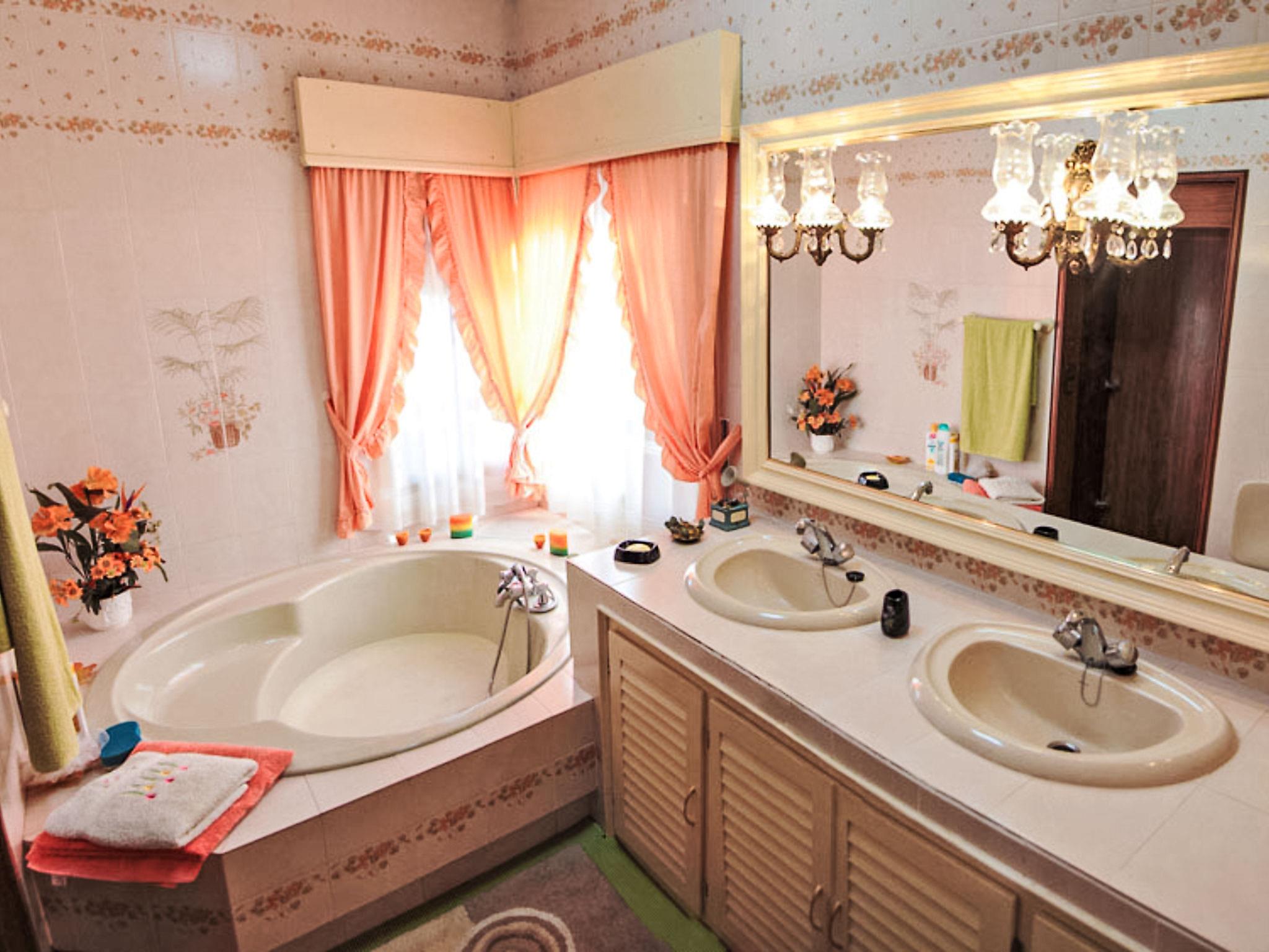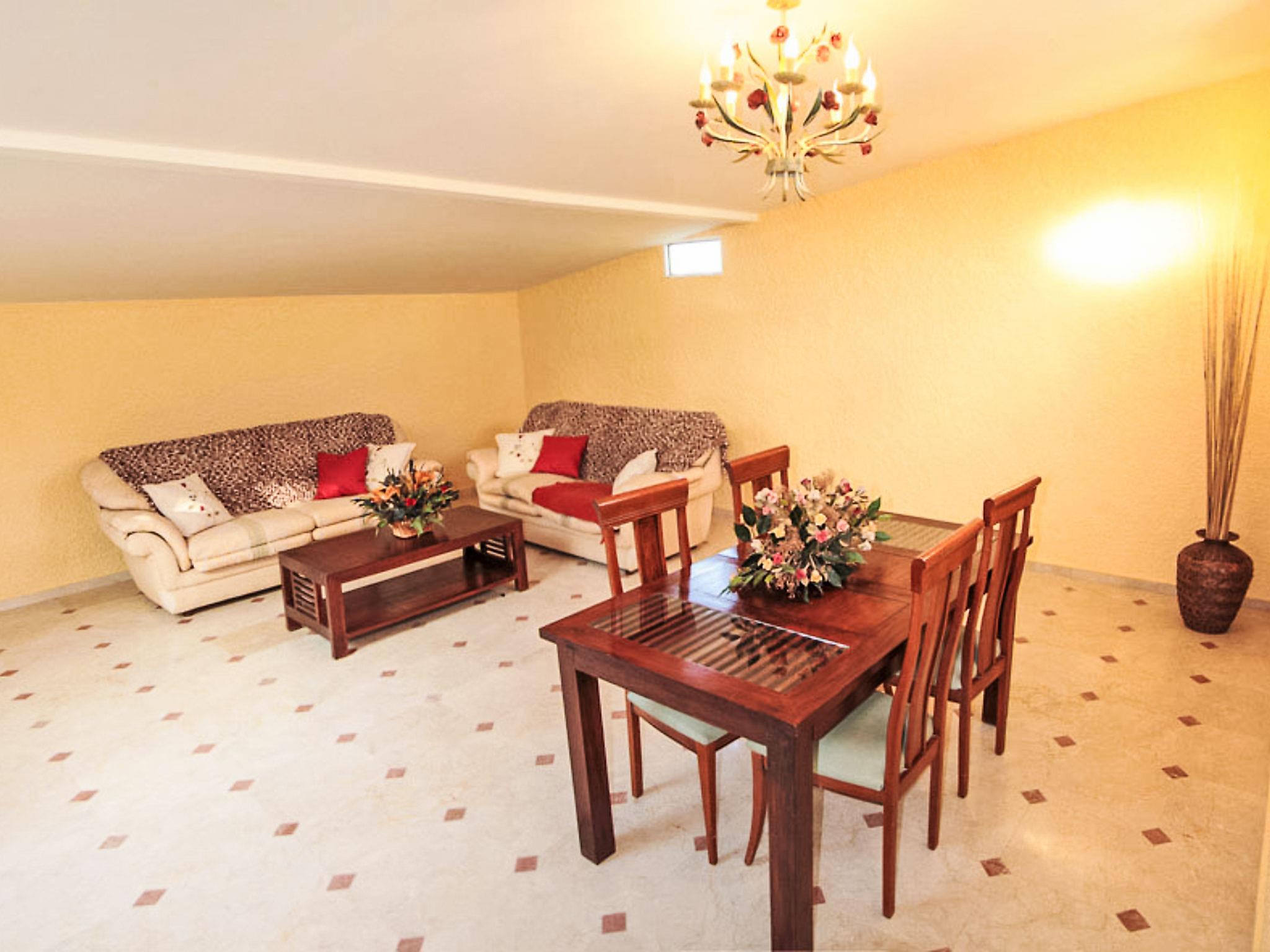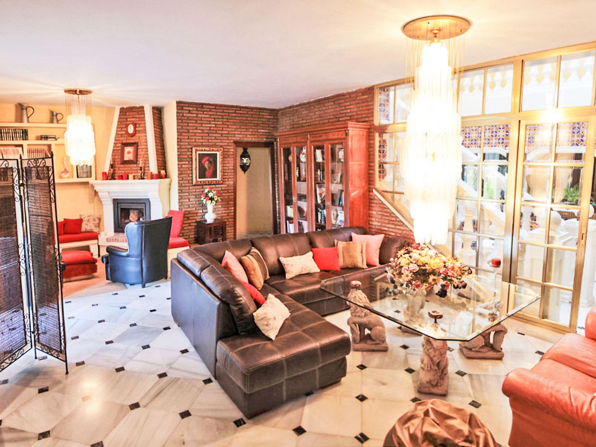 "Finca La Poza", 6-room house 300 m2. Spacious: dining room with TV and DVD. Living room with open-hearth fireplace. 1 room with 1 french bed (135 cm, length 190 cm), bath/bidet/WC (private). 1 room with 1 french bed (135 cm, length 190 cm). 1 room with 2 beds (90 cm, length 190 cm). 1 room with 1 french bed (135 cm, length 190 cm), TV. Kitchen (oven, dishwasher, 4 ceramic glass hob hotplates, microwave, electric coffee machine) with hatch. Shower/bidet/WC, sep. WC. Electric heating. Terrace furniture, barbecue, deck chairs. View of the mountains. Facilities: washing machine. Internet (WiFi, free). Parking (4 cars) at the house. VITAR/MA/2093 // Reg. Nr.: ESFCTU000029026000199525000000000000000VITAR/MA/20939
