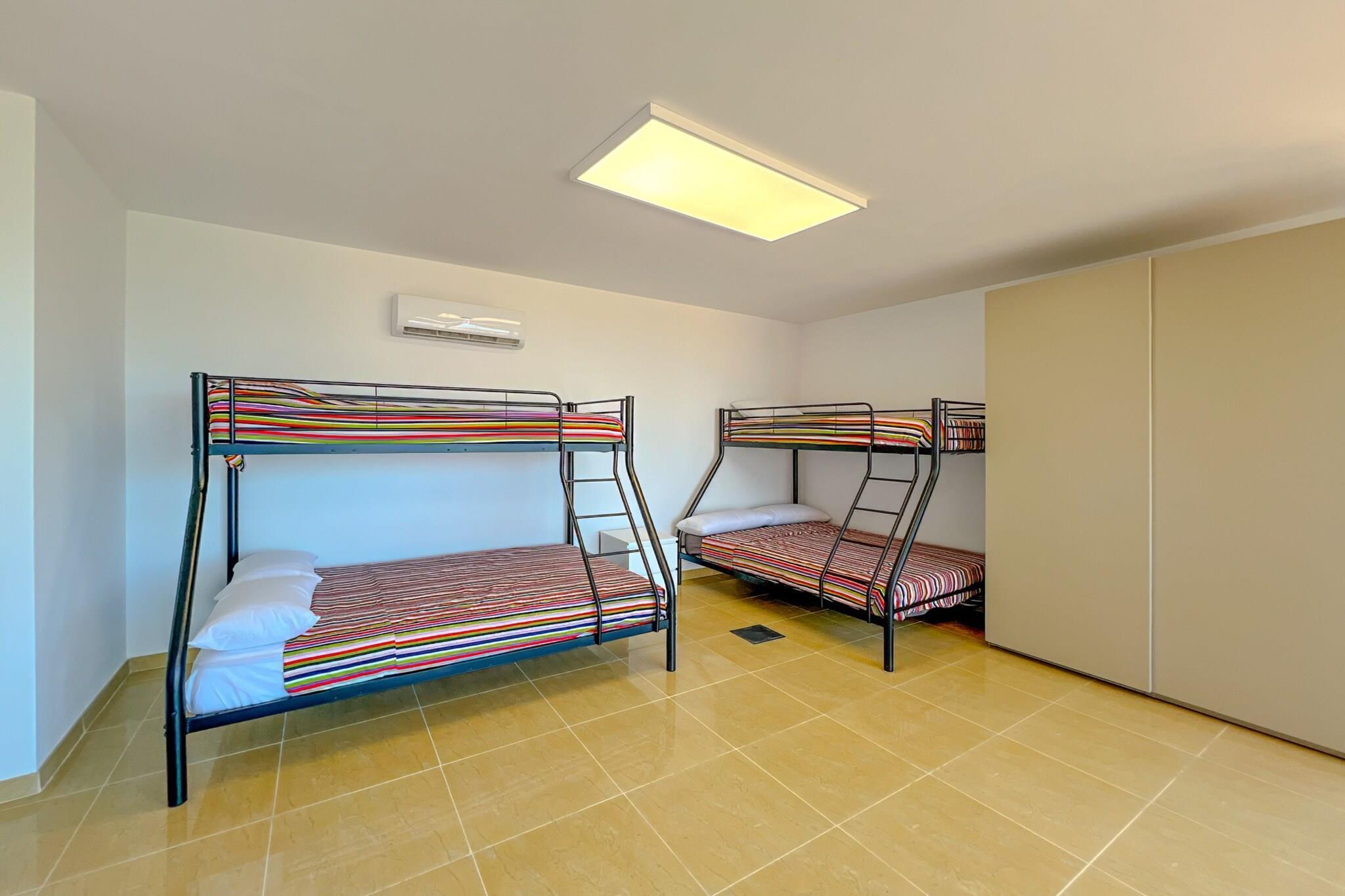 Åbent køkken(elkedel, brødrister, kaffemaskine, ovn, mikrobølgeovn, opvaskemaskine , køle-fryseskab, , ), stue / spisestue(Fjernsyn, spisebord, sofahjørne), soveværelse(dobbeltseng), soveværelse(dobbeltseng), soveværelse(dobbeltseng), soveværelse(køjeseng), soveværelse(køjeseng, køjeseng), badeværelse(bruser), badeværelse(bruser), badeværelse(badekar), Internetadgang, Havemøbler, vaskemaskine, varme(central), klimaanlæg, terrasse, have, grill, parkering, swimmingpool(privat), strygejern