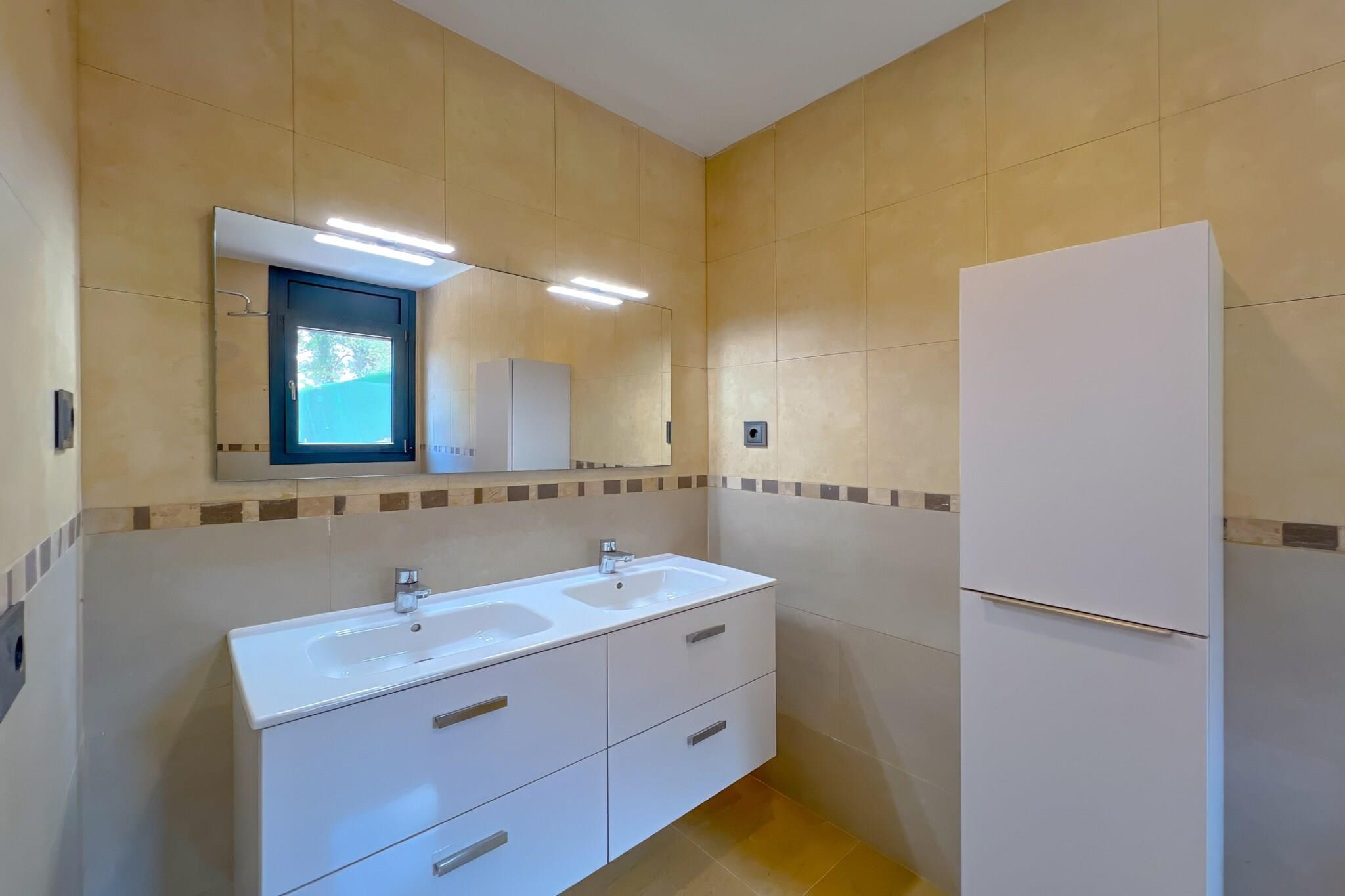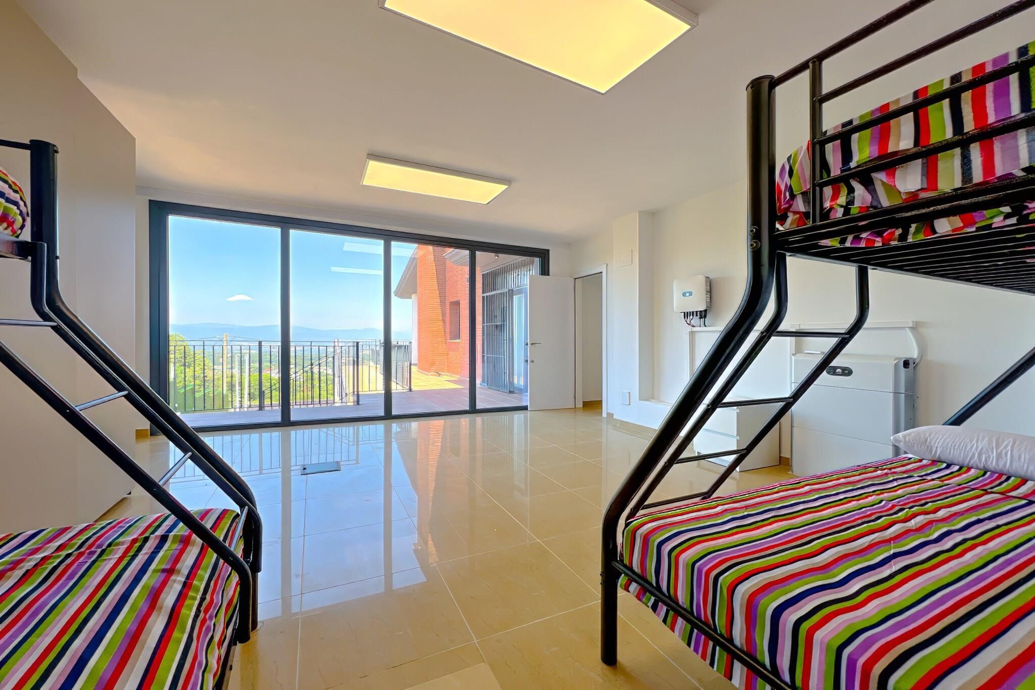Flygt til roen på Costa Brava i denne fantastiske private villa, perfekt til store familier eller vennegrupper. Beliggende i de fredelige omgivelser i Maçanet de la Selva, byder dette rummelige tilflugtssted på en privat saltvandspool, en frodig have og en betagende udsigt over bjergene - hvilket giver de ideelle rammer for afslapning og udendørs sjov. Villaen har komfortabel plads til op til 14 gæster fordelt på 5 soveværelser, herunder to store familieværelser med køjesenge (ideelle til børn eller grupper) og tre dobbeltværelser. Med tre badeværelser (to med brusere og et med badekar), et fuldt udstyret åbent køkken og en hyggelig opholdsstue er hjemmet designet til komfort og bekvemmelighed. Aircondition overalt sikrer et behageligt ophold selv i de varmeste måneder, og gratis Wi-Fi holder alle forbundet. Udenfor kan du nyde solrige dage ved poolen, tænde op i grillen eller blot slappe af i haven med panoramaudsigt. Villaen er kæledyrsvenlig og tilbyder privat parkering. Uanset om du planlægger en sommerferie, en weekendfest eller en fredelig flugt, er denne villa den perfekte base for at udforske Costa Brava og nærliggende byer som Girona og Barcelona.