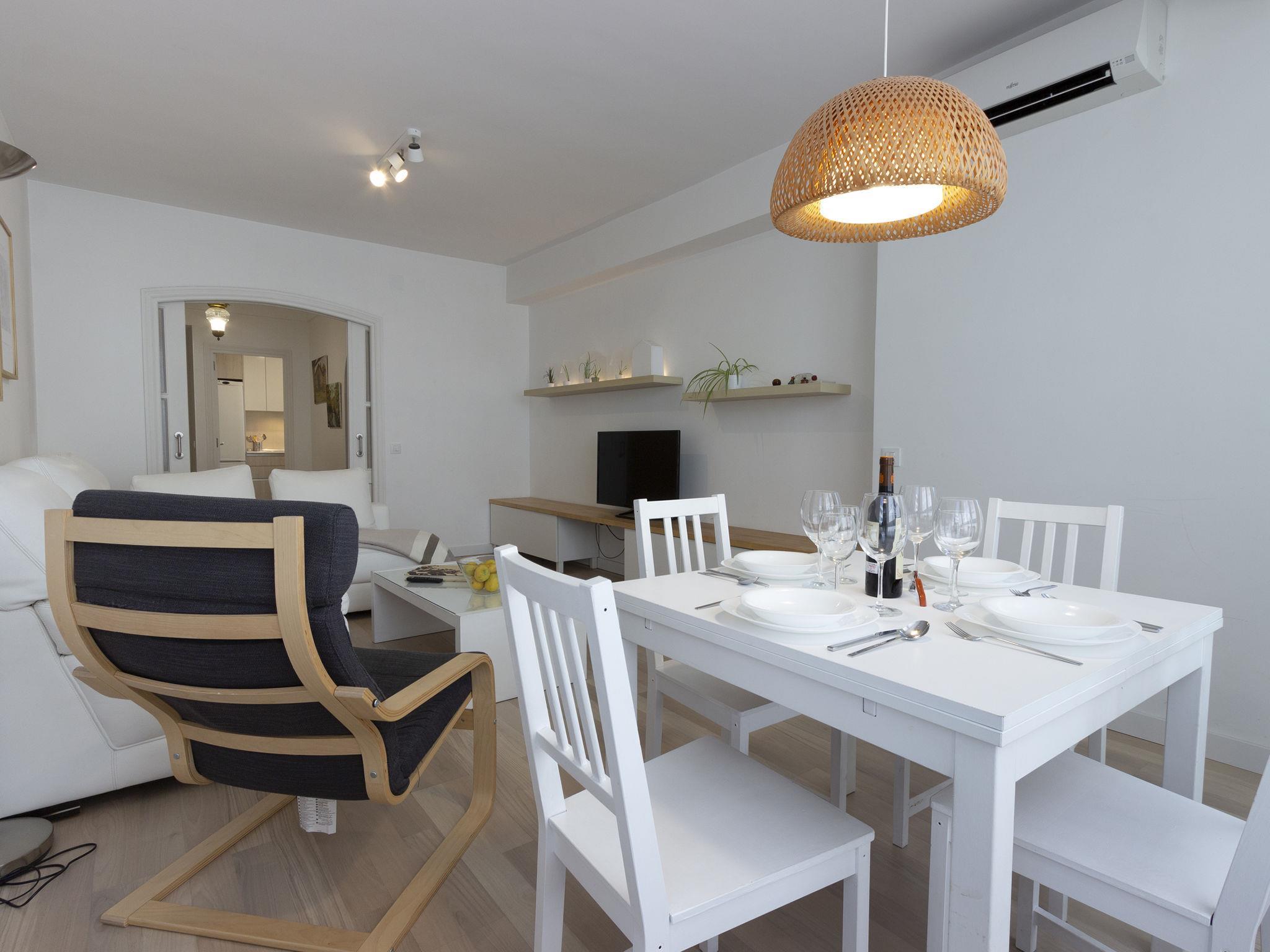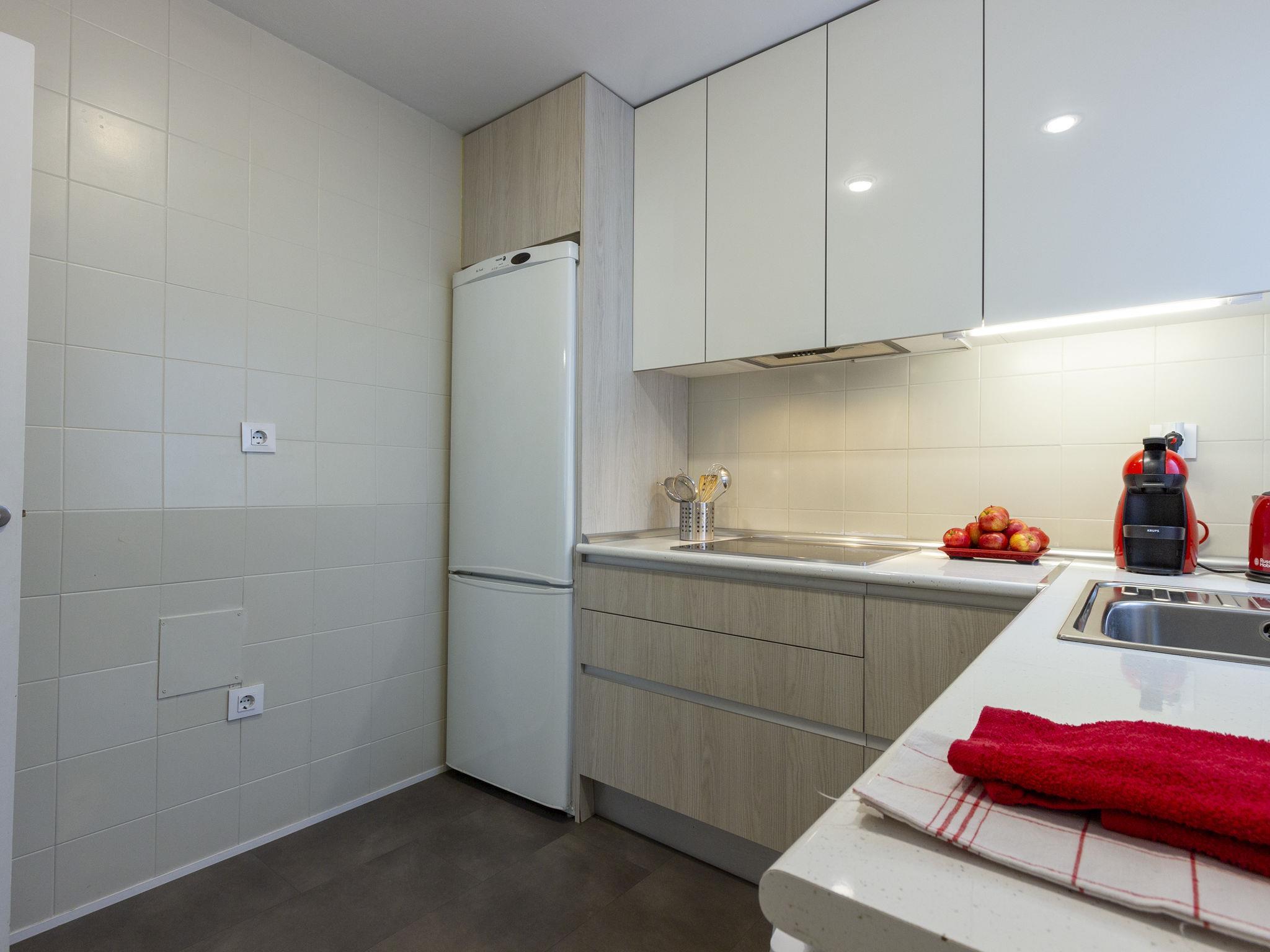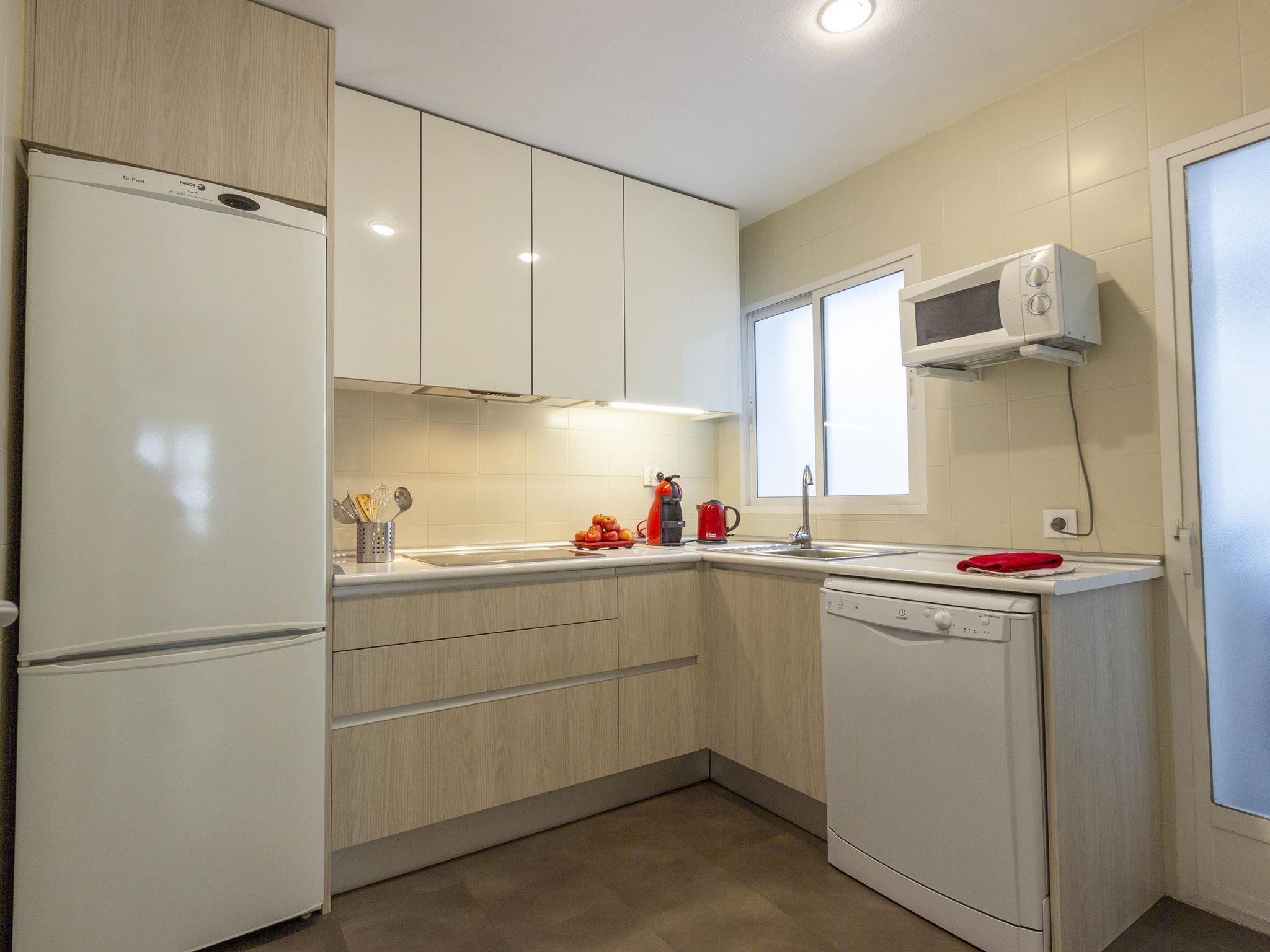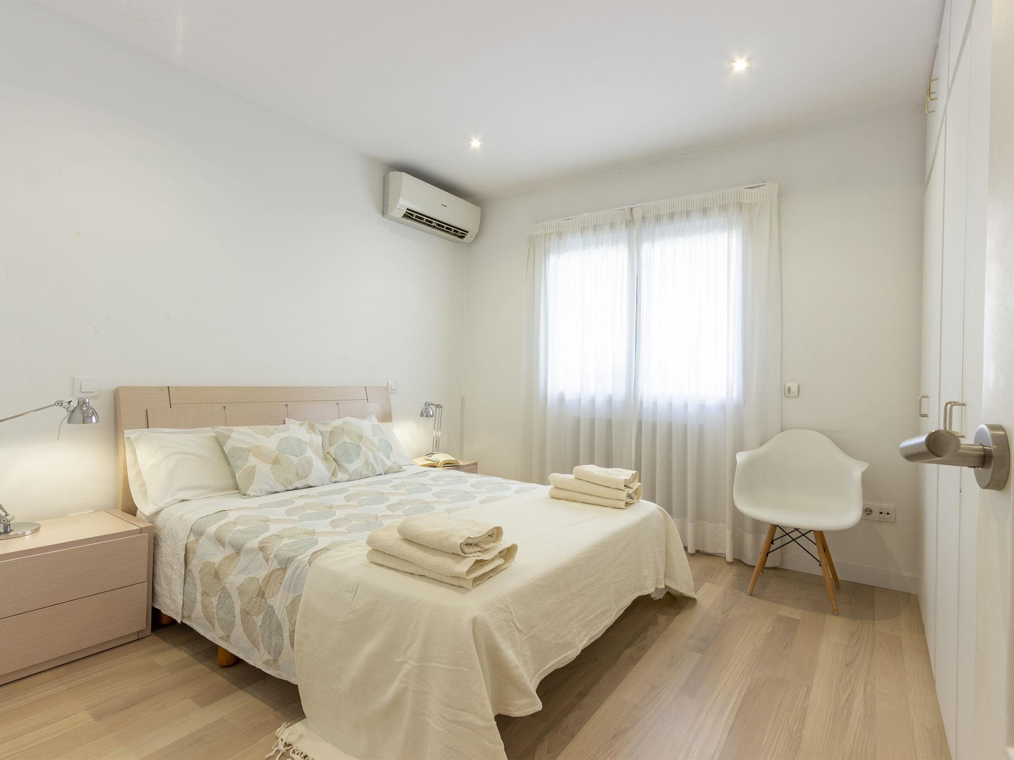 3-room apartment 80 m2 on 3rd floor. Tasteful and cosy furnishings: living/dining room with digital TV, flat screen and air conditioning. 1 room with 1 french bed (150 cm), bath/bidet/WC and air conditioning. 1 room with 1 pull-out bed (2 pers. 2 x 90 cm), air conditioning. Kitchen (oven, dishwasher, 4 ceramic glass hob hotplates, microwave, freezer). Bath/bidet/WC. Heating. Facilities: washing machine. Internet (WiFi, free). VT-8927 // Reg. Nr.: ESFCNT00002810200008241600000000000000000000000000003