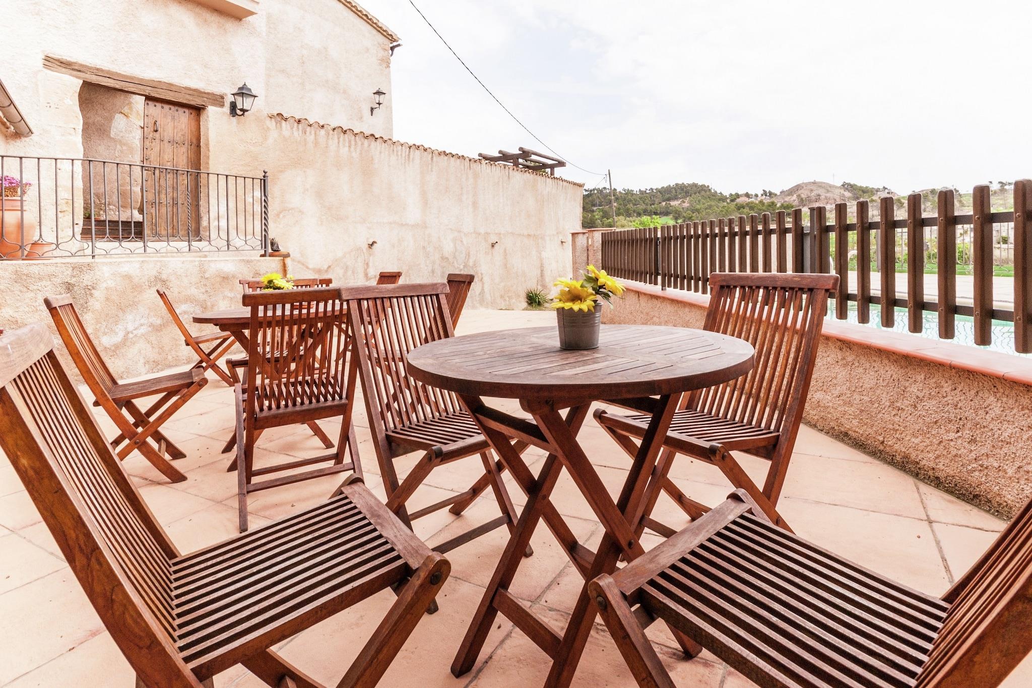 XVII århundrede, fuldt restaureret landlig ejendom på 90 m2, beliggende i Bages, i det centrale Catalonien. Transportforbindelser er fremragende, og de betagende Montserrat-bjerge ligger kun 30 km væk. Ejendommen består af 3 uafhængige boliger med alle nødvendige bekvemmeligheder til et behageligt og afslappende ophold. Gæsterne får mulighed for at besøge ruinerne af den romanske kirke samt andre steder af kult og klostre i det omkringliggende område. Adgang til huset er ved en trappe, der fører fra terrassen og i første sal finder du stue / spisestue med køkken, toilet og to soveværelser. Der er også en vindeltrappe, der fører til et lille loft. Udenfor er der en gårdhave, et skovområde og en fælles swimmingpool. Ejerne driver en lille gård og tilbyder besøg, hvis gæsterne ønsker det. En række vinkældre og en usædvanlig snegle gård, kun 2 km fra huset er også et besøg værd.