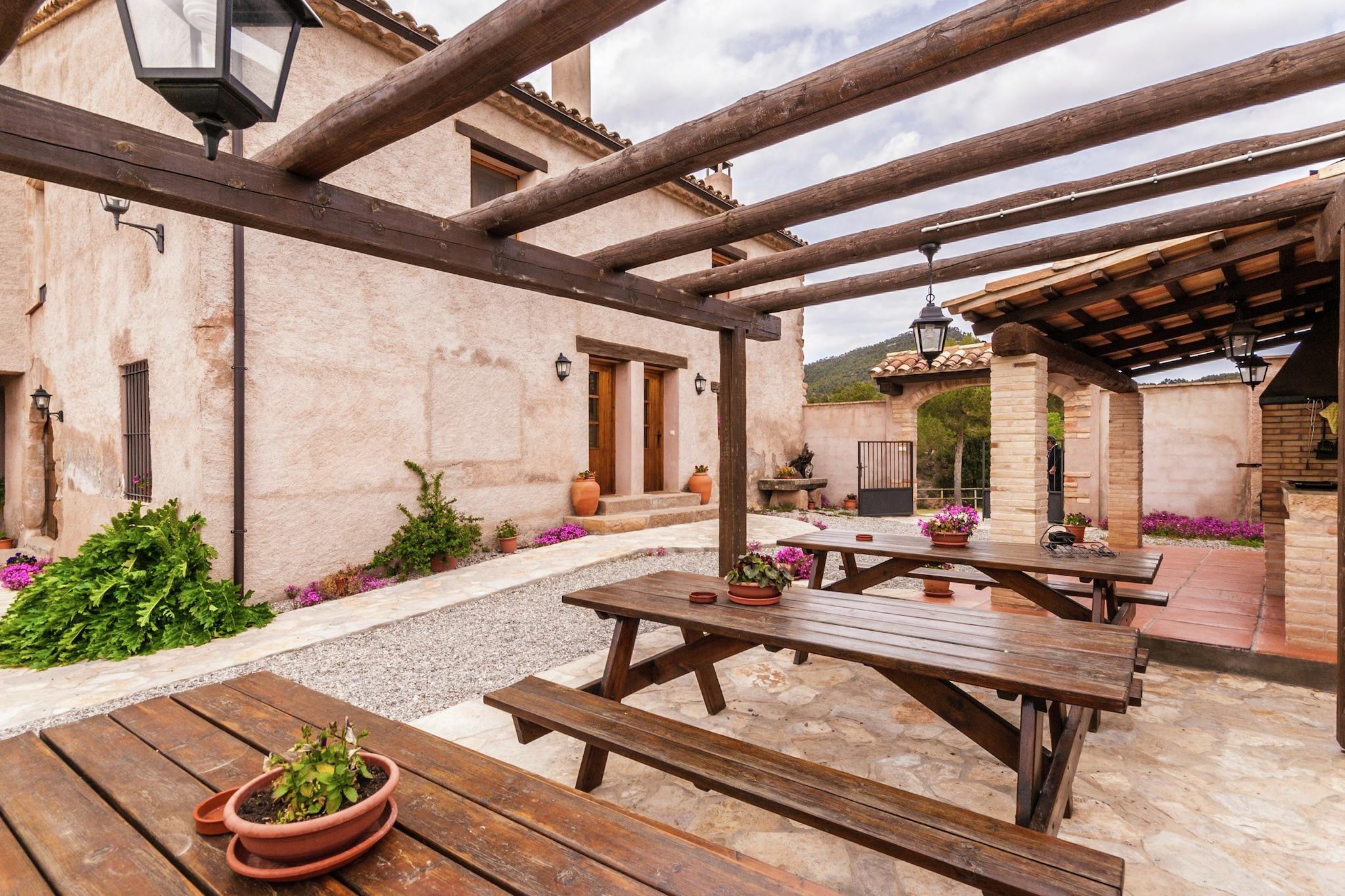 Denne restaurerede gård fra det XVIIte århundrede med swimmingpool er beliggende i regionen Bages i det indre Catalonien. Gården består af tre lejligheder på 1. sal og en stor spisestue med køkken i stueetagen, som lejede sammen for op til 14 personer. Bondegården ligger tæt på skoven. Ejerne af dette hus har en gård, hvor du kan tage et kig. Landsbyen, hvor du kan købe mad, ligger 5 miles væk. I nærheden er ruinerne af den lokale romanske kirke, vinkældre og gårde snegle til bezichtigen. De gård ligger 30 kilometer fra byen Barcelona. Montserratbjergene er også let tilgængelige.