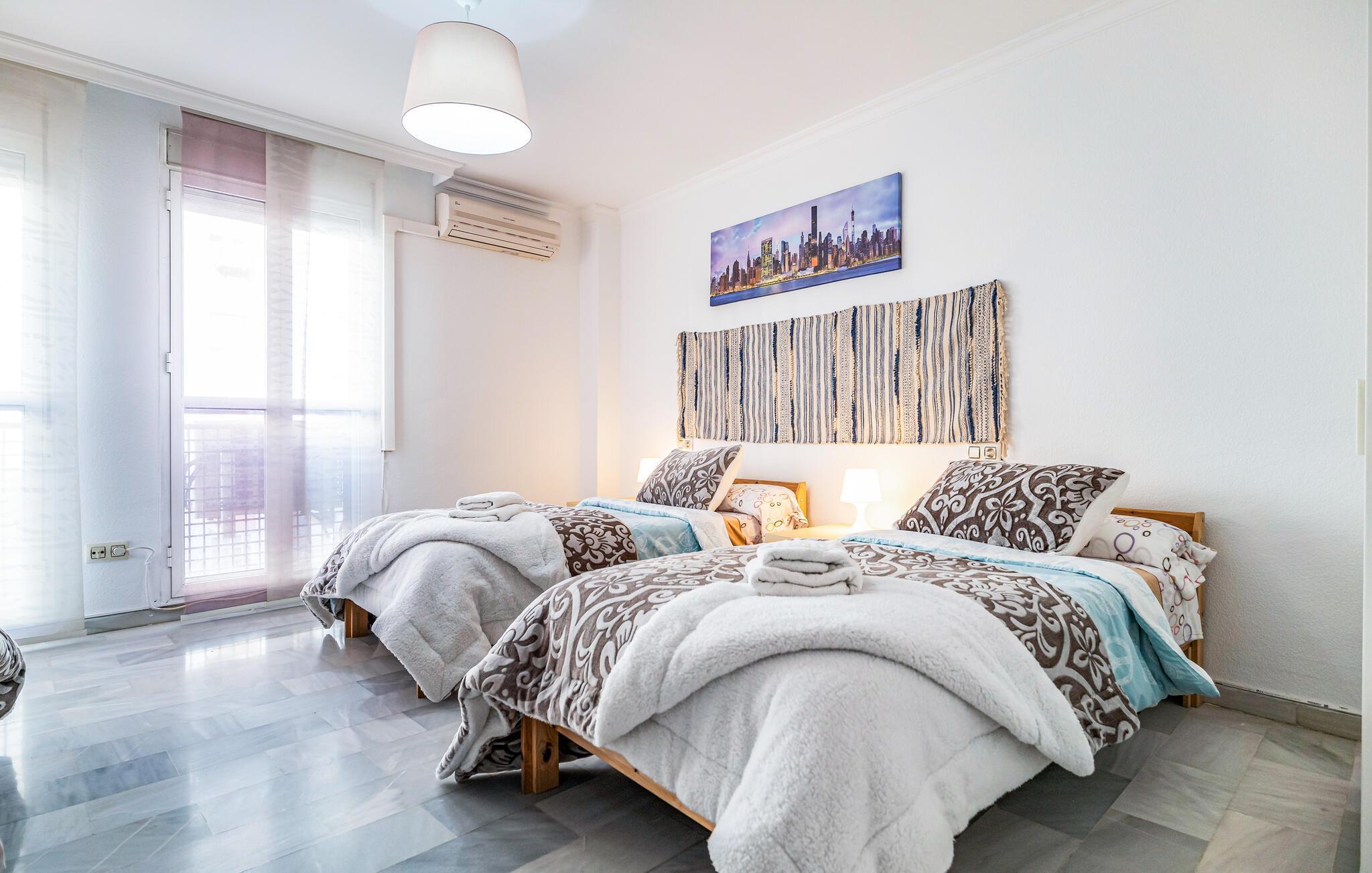 Glæd jer til en komfortabel og hyggelig ferielejlighed i Malaga, som er ideel til familien med sin lyse og attraktive atmosfære. De klassiske og kærligt designede værelser lægger op til at slappe af, mens den praktiske indretning sikrer et ubekymret ophold. Der er en legeplads i nabolaget til børnene, der garanterer sjov og motion - perfekt til en vellykket familieferie.
