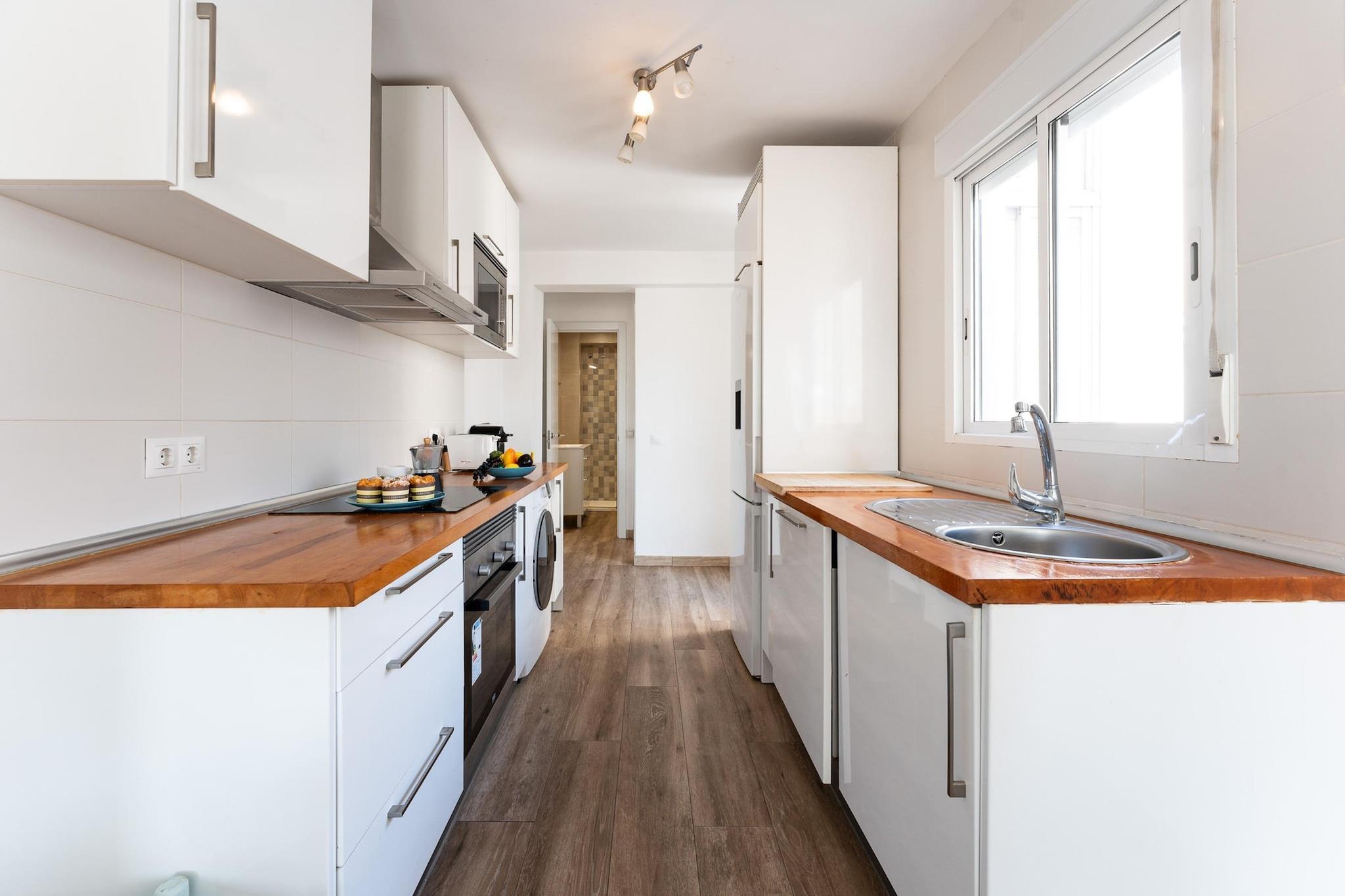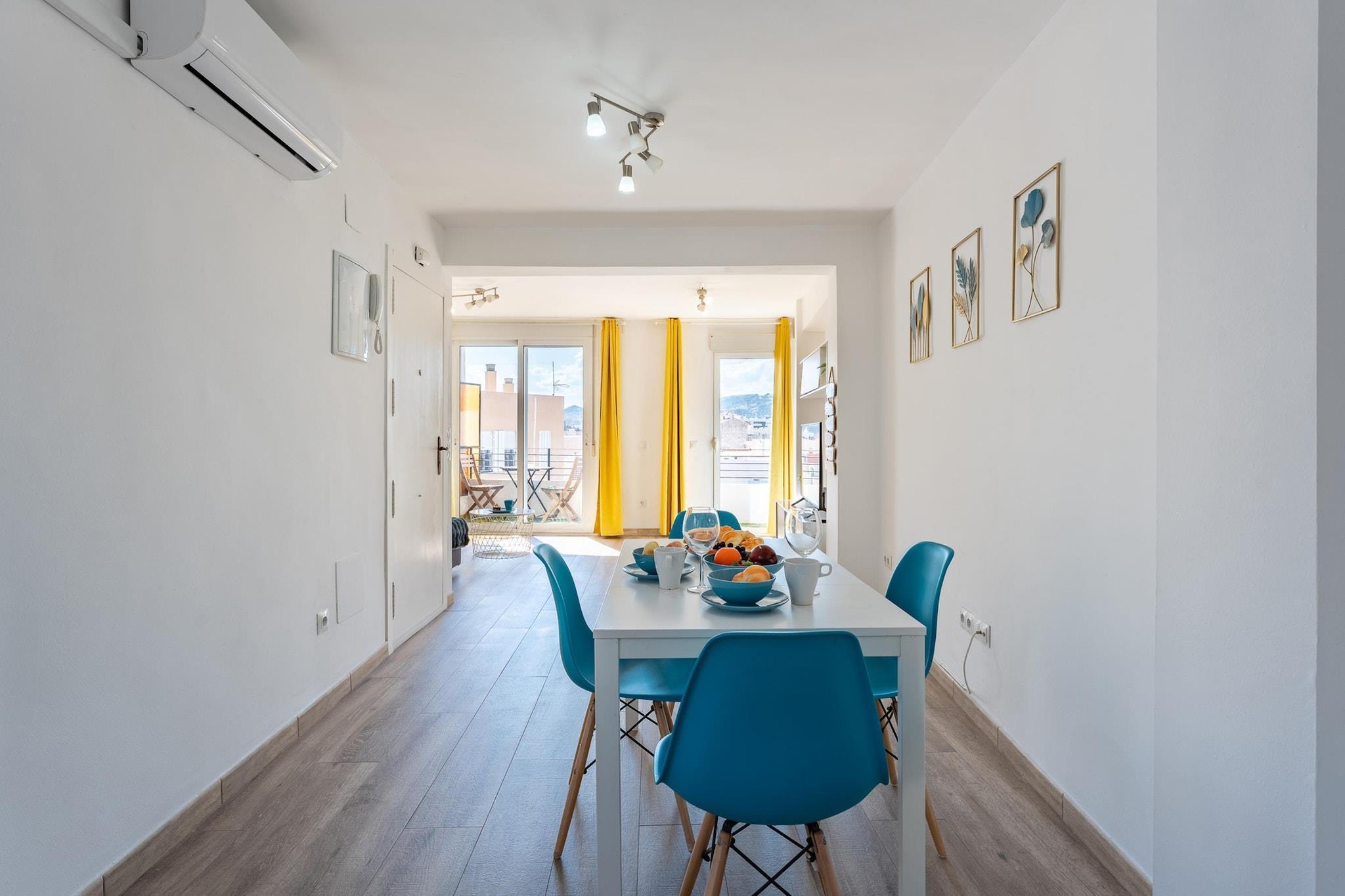 Vågn op til Málagas rytme i denne charmerende lejlighed i bymidten – et stilfuldt tilflugtssted, der indfanger varmen og pulsen i det andalusiske liv. Beliggende i byens historiske centrum er det den perfekte base for par, familier eller venner, der er ivrige efter at udforske alt fra solbeskinnede pladser til strandpromenader. Lejligheden blander komfort og moderne design med et strejf af hjemlig charme og skaber et rum, hvor ethvert ophold føles ubesværet. Indenfor strømmer sollyset ind gennem store vinduer i en rummelig stue-spisestue, hvor I kan slappe af efter en dag med sightseeing. Det åbne køkken inviterer jer til at lave mad sammen, dele historier og nyde et glas lokal vin. Soveværelset, komplet med en hyggelig dobbeltseng, lover afslappende nætter, mens det elegante badeværelse med bruseniche tilføjer et strejf af forkælelse. Træd ud på jeres private balkon for en stille morgenkaffe, eller tag op til det fælles solarium for at nyde Málagas sol og byens summen nedenfor. Uden for jeres dør udfolder det bedste af Málaga sig til fods. Gå en tur ned ad den livlige Calle Larios eller gennem Plaza de la Constitución, og følg derefter havets duft til Muelle Unos stilfulde havnefront. På bare 15 minutter kan du dyppe tæerne i bølgerne på La Malagueta-stranden eller nyde friske sardiner ved kysten i Pedregalejo. For kulturelskere ligger Picasso-museet, Alcazaba og det romerske teater lige i nærheden, som minder om byens rige historie og kunstneriske sjæl. Og når du er klar til at tage videre, afslører dagsture til Ronda, Nerja eller Frigiliana endnu mere af Andalusiens charme. Med lufthavnen kun 20 minutter væk begynder dit Málaga-eventyr i det øjeblik, du ankommer – og efterlader dig med en længsel efter at vende tilbage.