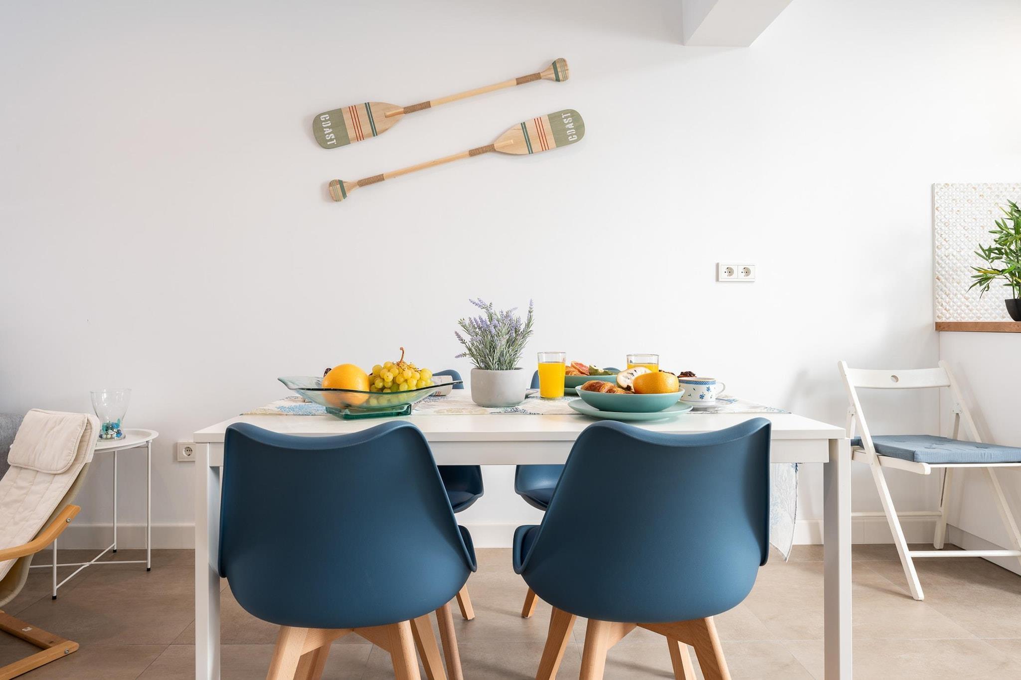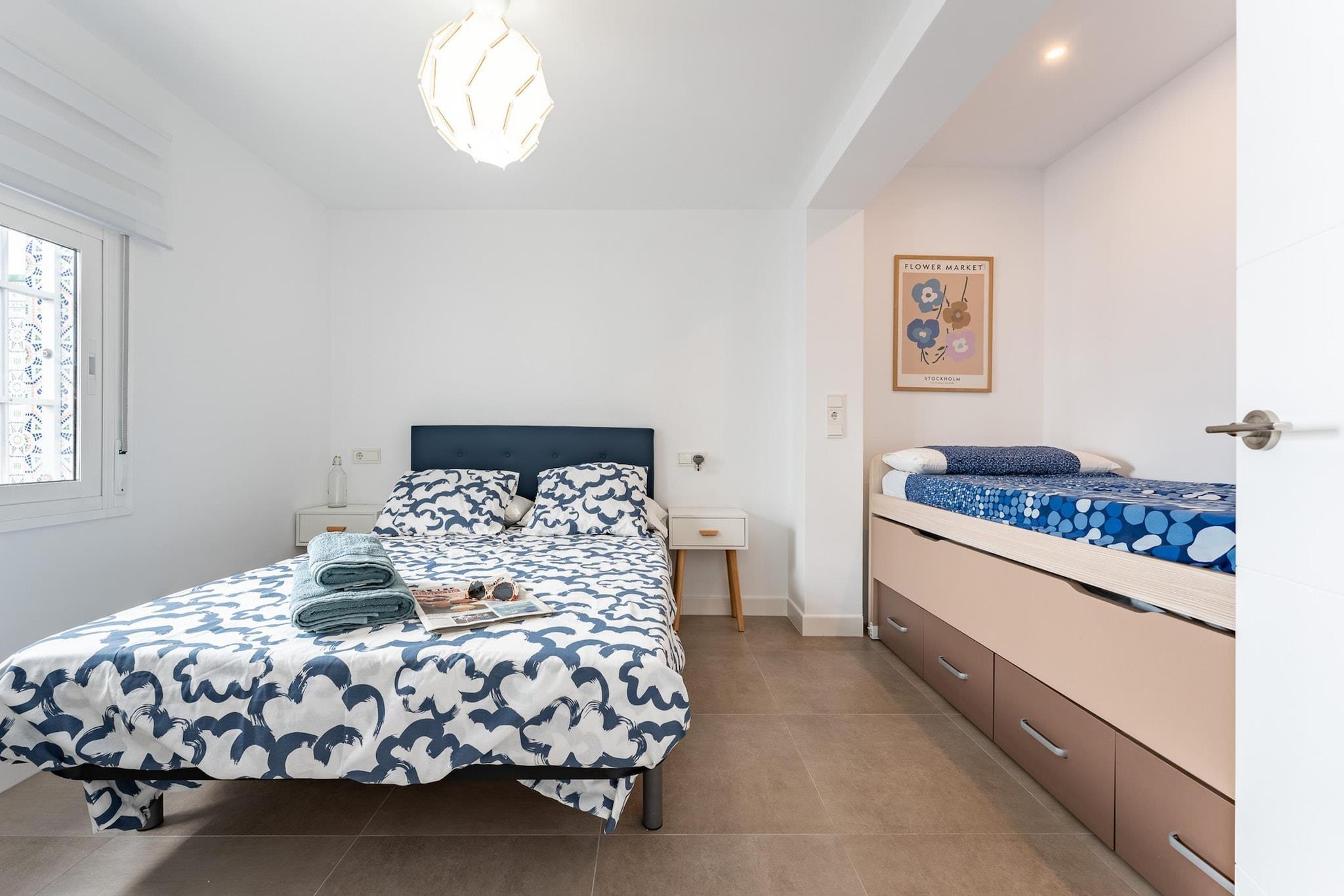 Velkommen til din perfekte ferie ved havet i Fuengirola, en charmerende kystparadis kun få skridt fra stranden! Denne varme og indbydende lejlighed tilbyder alt, hvad du behøver for en uforglemmelig ferie på Costa del Sol, og blander komfort, lys og middelhavscharme. Lejligheden har to hyggelige og veludstyrede soveværelser. Masterværelset har en komfortabel dobbeltseng, ideelt til en god nats søvn, mens det andet soveværelse tilbyder en dobbeltseng og en enkeltseng - perfekt til venner eller familie. Der er to moderne badeværelser, det ene med et forfriskende brusebad, et fuldt udstyret køkken til hjemmelavede måltider og en lys stue-spisestue, der åbner ud til en dejlig terrasse - det ideelle sted at nyde din morgenkaffe eller aftenvin, mens du nyder det andalusiske solskin. Bare få skridt fra din dør finder du Fuengirolas gyldne strande, der strækker sig over syv kilometer. Uanset om du foretrækker at solbade, svømme eller prøve vandsport som paddlesurfing eller jetski, vil Playa de Los Boliches og Playa de Carvajal helt sikkert begejstre med deres livlige atmosfære og fremragende faciliteter. Takket være den privilegerede beliggenhed kan du nemt udforske andre skatte på Costa del Sol. Málaga, med sin rige historie og pulserende kultur, ligger kun 30 minutter væk, mens det glamourøse Marbella byder på luksuriøs shopping og natteliv. For en mere traditionel oplevelse, besøg Mijas - en malerisk hvidkalket landsby beliggende på bakkerne med betagende udsigt og brostensbelagte gader.