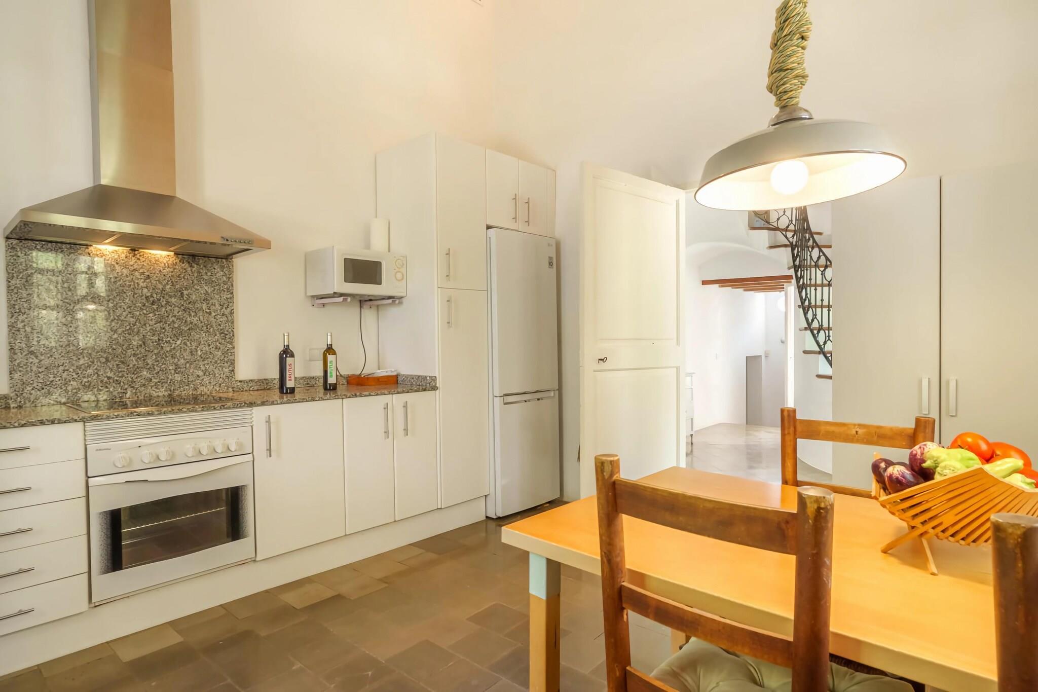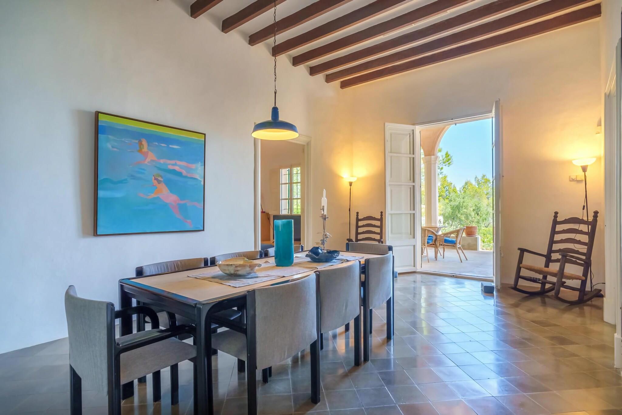 Denne traditionelle mallorcanske villa ligger i det fredfyldte Mal Pas-område og tilbyder en flot udsigt over havet og den maleriske Marina de Bonaire. Omgivet af frodig skov giver det en unik følelse af afsondrethed på trods af at det kun er 300 meter fra strandene i Sant Joan og Sant Pere. Villaens store terrasse er perfekt til at slappe af i solen i løbet af dagen eller nyde udendørs måltider under stjernerne, alt imens du nyder de fredelige kystnære omgivelser. Denne rummelige og charmerende villa fanger autentisk mallorcinsk karakter med sit varme design og enestående beliggenhed. Uanset om du vågner til lyden af ??bølger eller slentrer til den nærliggende Crocodile Restaurant eller den afslappede "5 Oceans" bar, er alt hvad du behøver inden for gåafstand. Der er også et lille supermarked ved marinaen, som tilbyder nem adgang til det væsentlige under dit ophold. Udendørsområdet er et sandt højdepunkt med panoramaudsigt over den flimrende saltvandspool og det turkisblå hav bagved. En stor terrasse med liggestole inviterer dig til at slappe af, mens en overdækket sektion omfatter komfortable siddepladser og et spisebord - perfekt til alfresco-måltider eller blot at nyde brisen. Denne villa er et ideelt valg for dem, der søger ro med nem adgang til det bedste af Alcudias kystlinje.