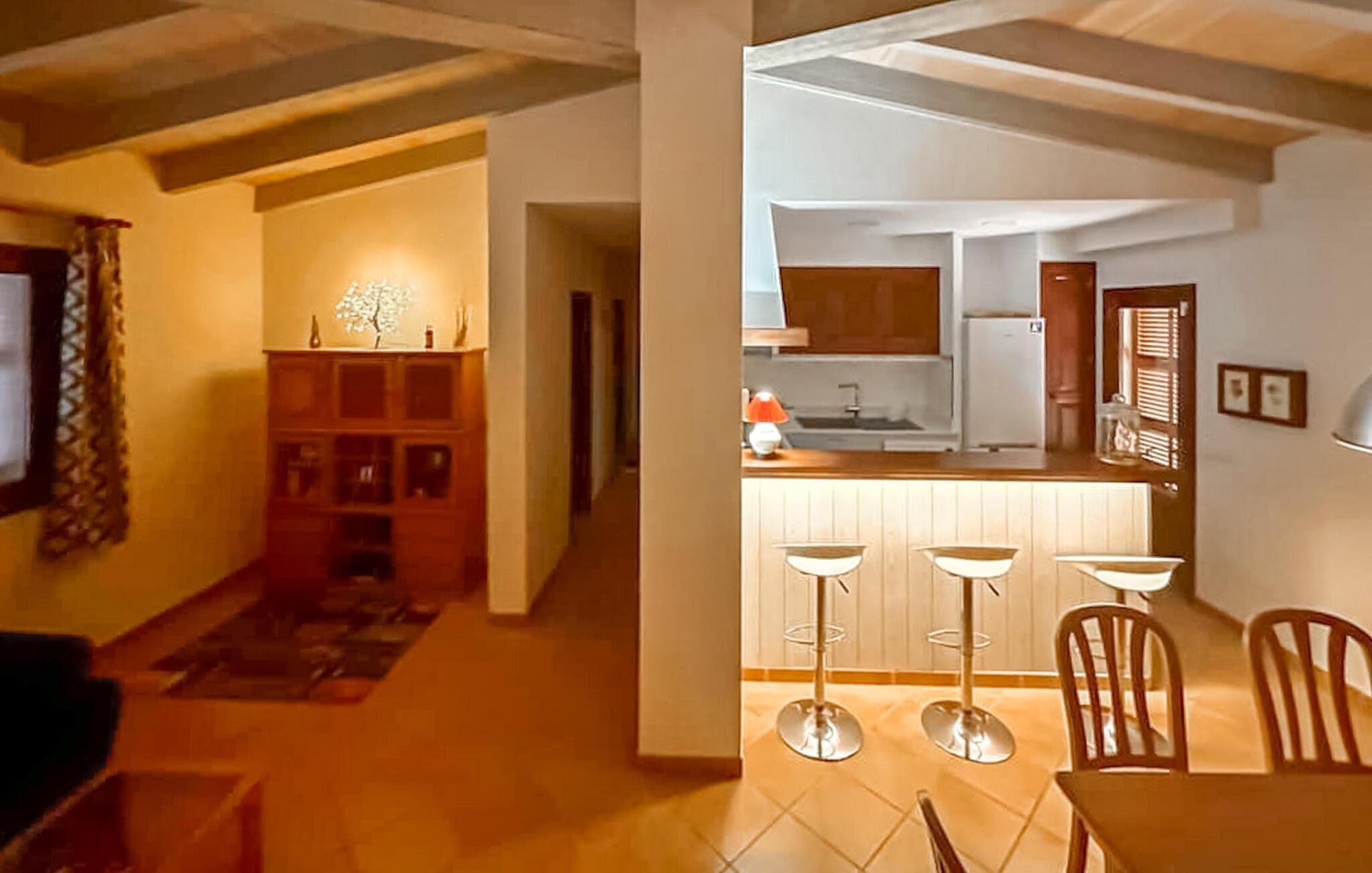 Den charmerende “Villa MallorCasita” er et hyggeligt, veludstyret feriehus for op til 7 gæster på Mallorcas østkyst. Kun et minuts gang fra Cala Moreia-stranden og fem minutters gang fra det familievenlige S'. Denne villa på Illot strand er ideelt placeret til en badeferie. Nyd aftenen på den skyggefulde terrasse med en gasgrill perfekt til at grille. Den lokale infrastruktur gør det nemt at besøge nærliggende restauranter og barer samt vandsport som surfing og dykning. Dette sikrer en god nattesøvn på trods af de travle omgivelser. I stueetagen finder du en åben opholdsstue med stue, spisestue og et moderne køkken med morgenmadsbar. Opholdsstuen og fire hyggelige dobbeltværelser har aircondition. Der tilbydes også gratis WiFi og parkering på stedet. "Villa MallorCasita" anbefales til strandelskere, familier, vennegrupper og aktive feriegæster, med eller uden børn. Kæledyr er velkomne. Beliggende i boligområdet Cala Morlanda nær S'Illot. Cala Moreia-stranden ligger 1 minuts gang derfra, og S'Illot-stranden ligger 5 minutters gang derfra. Der ligger et supermarked 50 meter derfra, i nærheden er der restauranter, barer, et dykkercenter og en surfudlejning. Dette er et Fincallorca feriehus.
