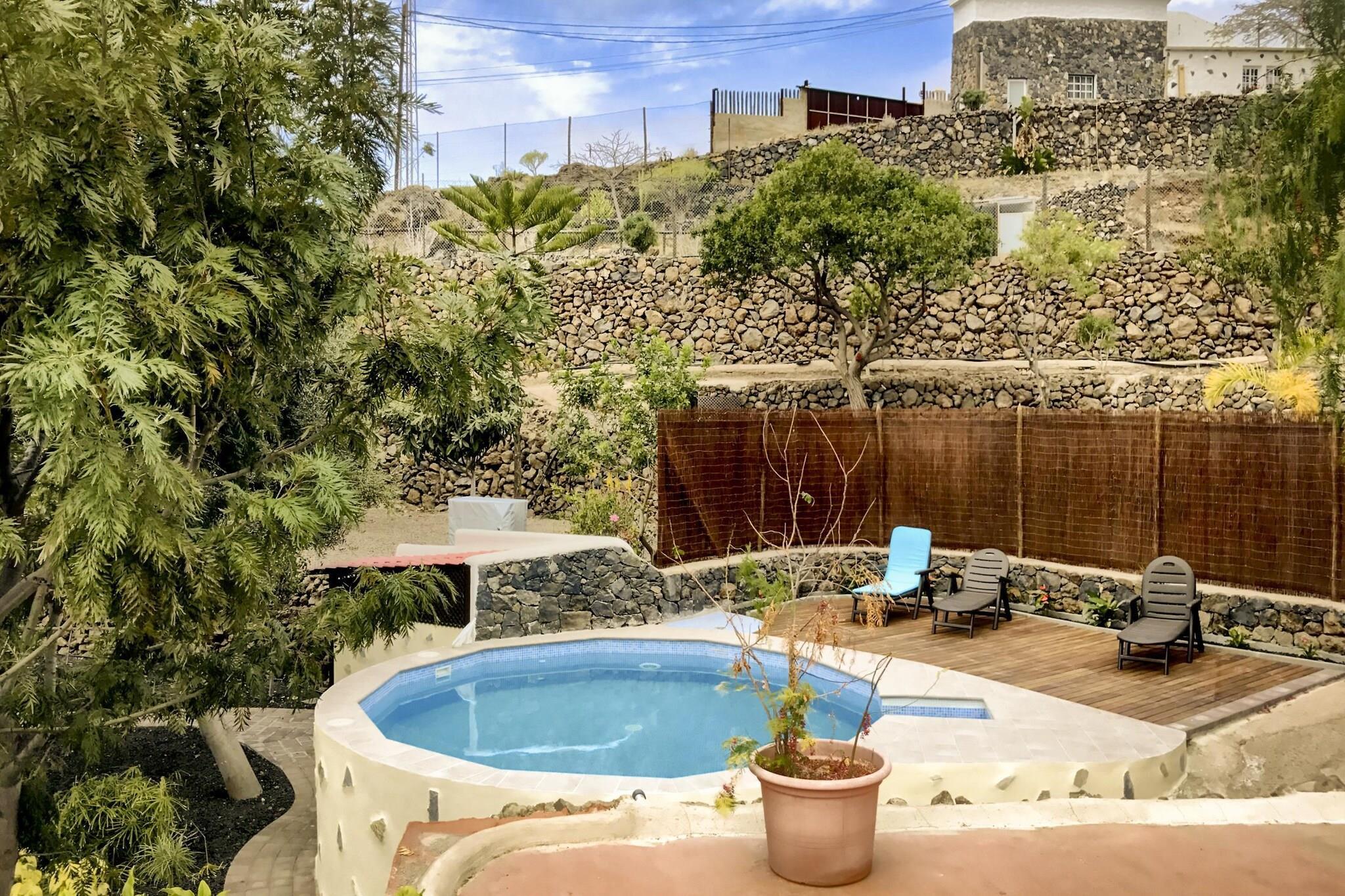 Typiske kanariske feriehuse med privat pool, have og grillplads! Husene ligger i et smukt kompleks med masser af grønt og hjemmehørende planter i Malpais de Candelaria, på den sydøstlige del af øen Tenerife. Træk dig tilbage til dit lille private paradis og slap af med en kølig drink ved poolen eller i skyggen af træerne. Boligerne imponerer med deres hygge og detaljer som træbjælkelofter, harmonisk indretning og indretning, skyggefulde opholdsområder og kølige stenvægge, der giver husene en rustik atmosfære. Malpais de Candelaria ligger kun seks kilometer fra kysten i Candelarias idylliske bagland. Candelaria selv har i de senere år udviklet sig til en smuk by med en gågade, talrige butikker og mange restauranter og barer. Detaljer: WLAN Aktiviteter i nærheden: I Candelaria er der flere strande til solbadning, afslapning og svømning. Hver søndag er der ugentligt marked foran den store parkeringsplads ved havet, som er åben fra 8.00 til 14.00. En kort gåtur gennem byen med et besøg i basilikaen og de ni statuer i naturlig størrelse af Guanche-kongerne er det værd. Udflugtstip: Øens hovedstad Santa Cruz er kun 15 kilometer væk - ideel til gåture og shopping og stop i en af tapasbarerne Ikke egnet til personer med nedsat mobilitet