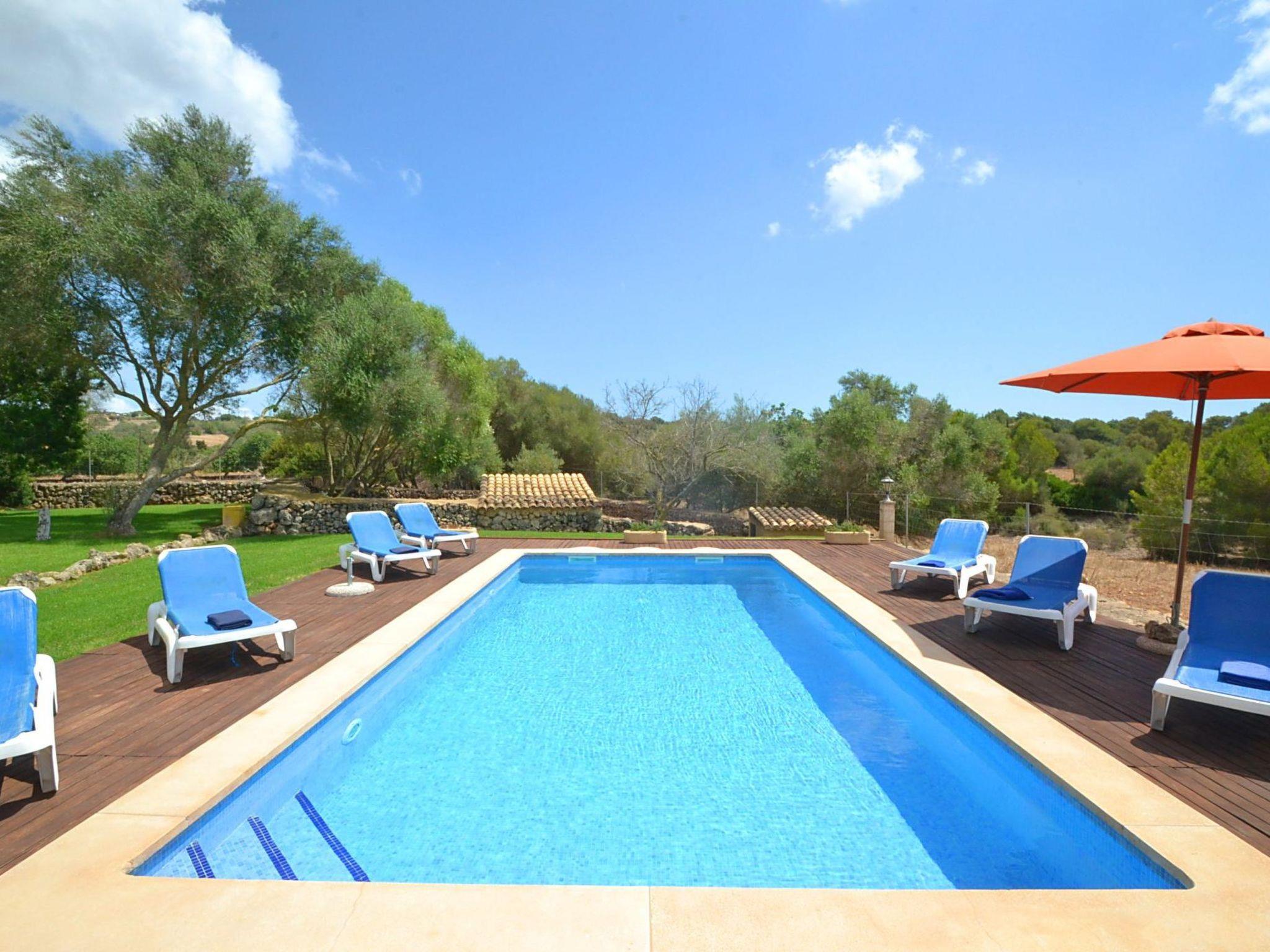 Manacor: Cosy, comfortable house "Mascaro", built in 2006, surrounded by trees and fields. On the outskirts Manacor, in a quiet position, in the countryside. Private: property (fenced), lawn for sunbathing, beautiful garden to relax, swimming pool (9 x 4 m, seasonal availability: 01.Mar. - 30.Oct.). Outdoor shower, patio, pergola, garden furniture, barbecue. In the house: internet access, WiFi, air conditioning, washing machine. Parking on the premises. Shop 4 km, grocery 4 km, supermarket 4 km, restaurant 4 km, bus stop "Manacor" 9 km, railway station "Manacor" 9 km, sandy beach 4 km. Please note: car recommended. Suitable for families, suitable for seniors baby equipment (included). The owner does not accept any youth groups. Loading and unloading of baggage is possible at the holiday house. Airfield 48 km from the property.