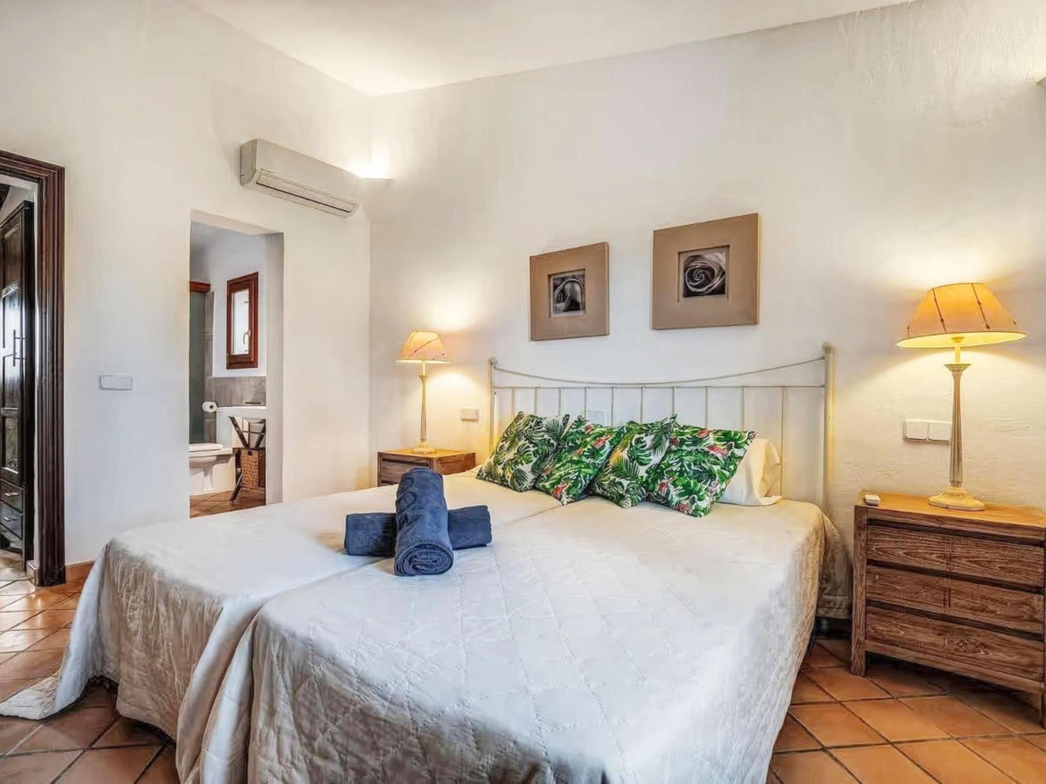 The house, which can accommodate 8 persons, offers approximately 280 m² of living space on two floors, a living-dining room, a fully equipped kitchen with dishwasher, four spacious bedrooms ( 2x double bed, 2x single bed ) and a total of three bathrooms ( 1x ensuite bathroom ). Two bedrooms are on the upper floor. All bedrooms and the living room have their own air conditioning. Next to the pool there is also a covered terrace equipped with barbecue, sofas and dining table.