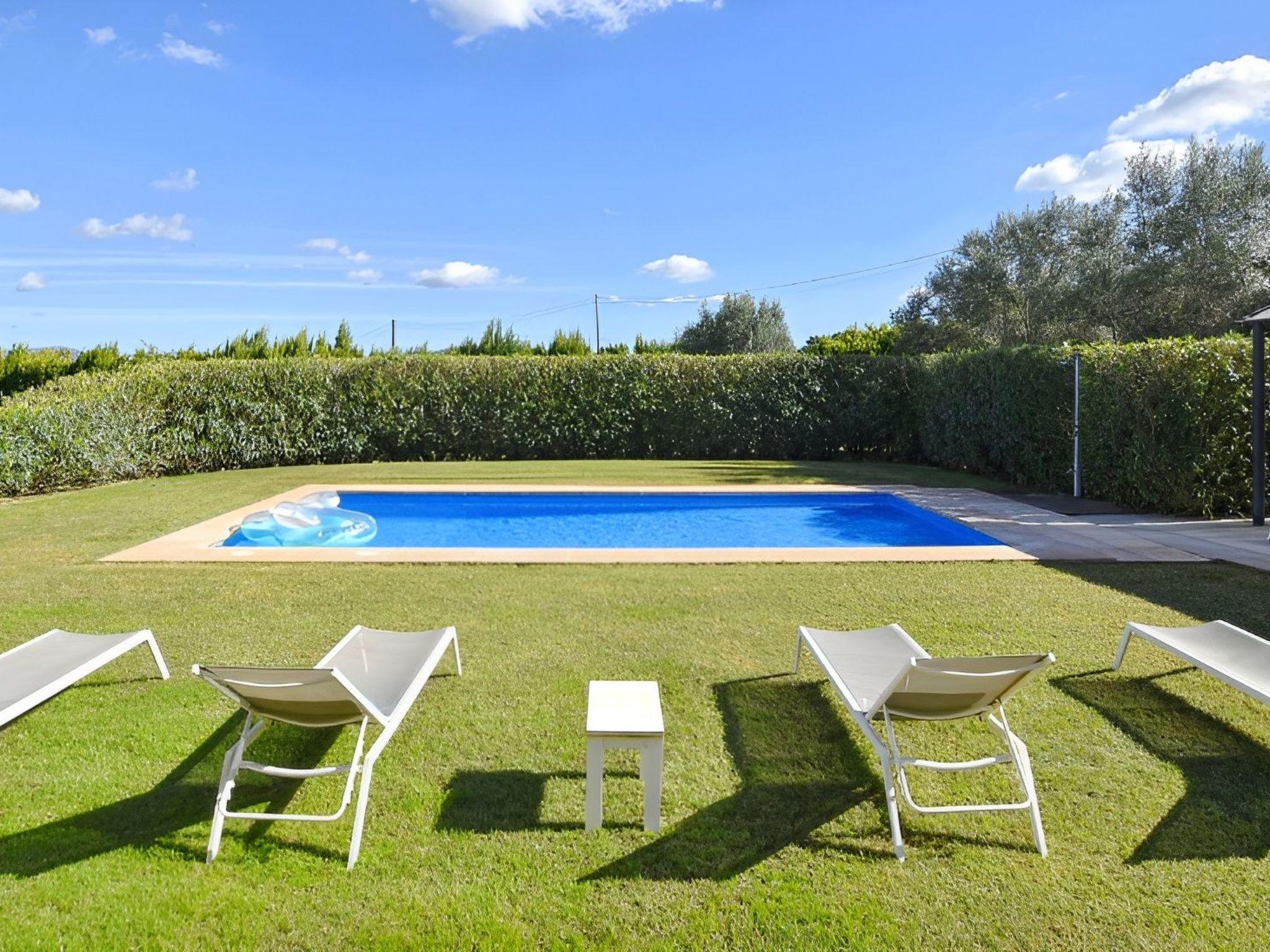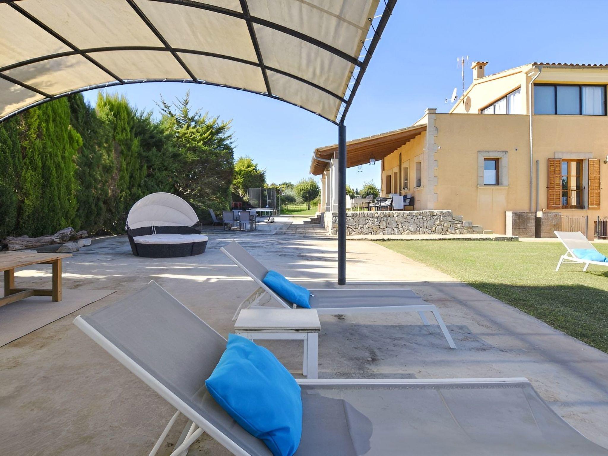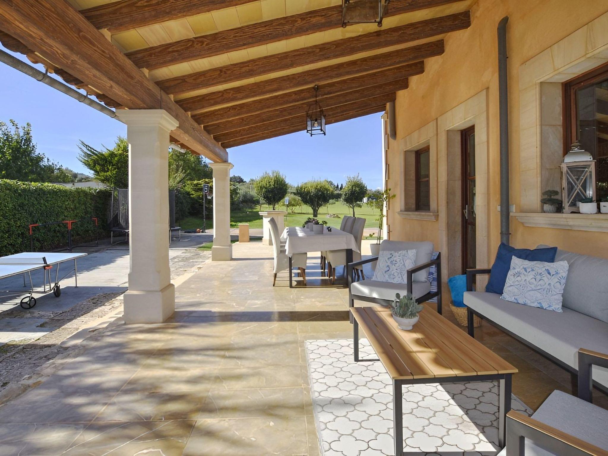 The highlight of this finca is undoubtedly the beautiful natural garden with the lawn area surrounding the pool. The covered terrace next to the pool with comfortable sofas offers plenty of shade. The pool measures 9 m x 5 m (depth 0,90 - 1,70 m, salt water) and is perfectly integrated in the garden. Near the covered porch of the house with dining table and sofas, there is a barbecue area. For a bit of activity, there is a ping pong table, a trampoline, football goals and basketball goals.