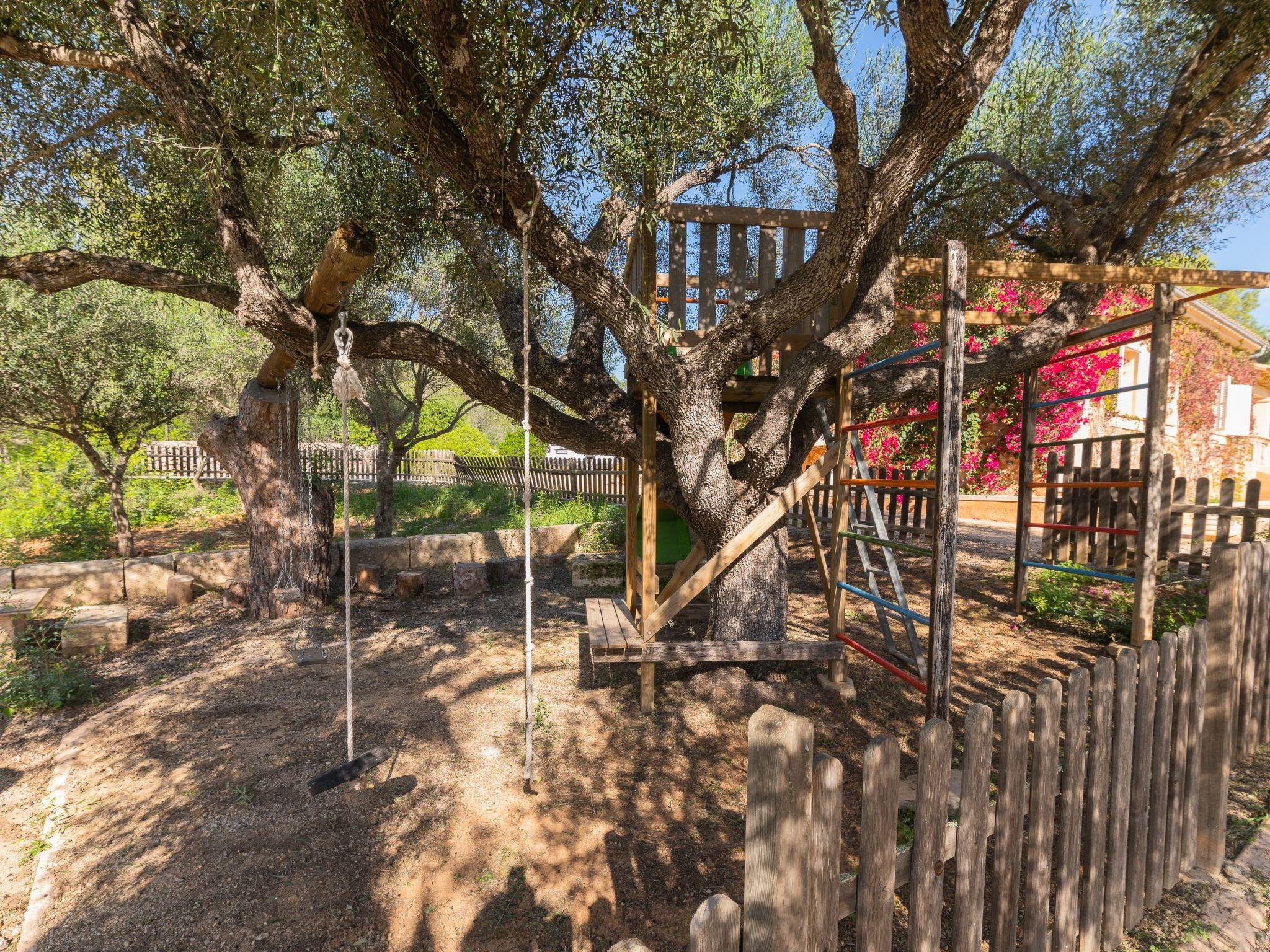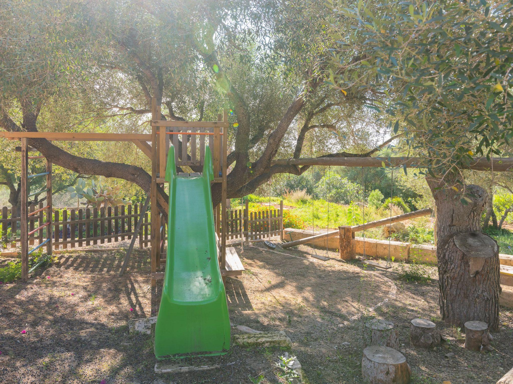 The inviting veranda with another dining table and chill-out area overlooks the pool and Calas de Mallorca with the coast in the background. There is a walled-in barbecue for cosy barbecue evenings. The highlight for the little ones is the great private children's playground with swing, slide and play area.