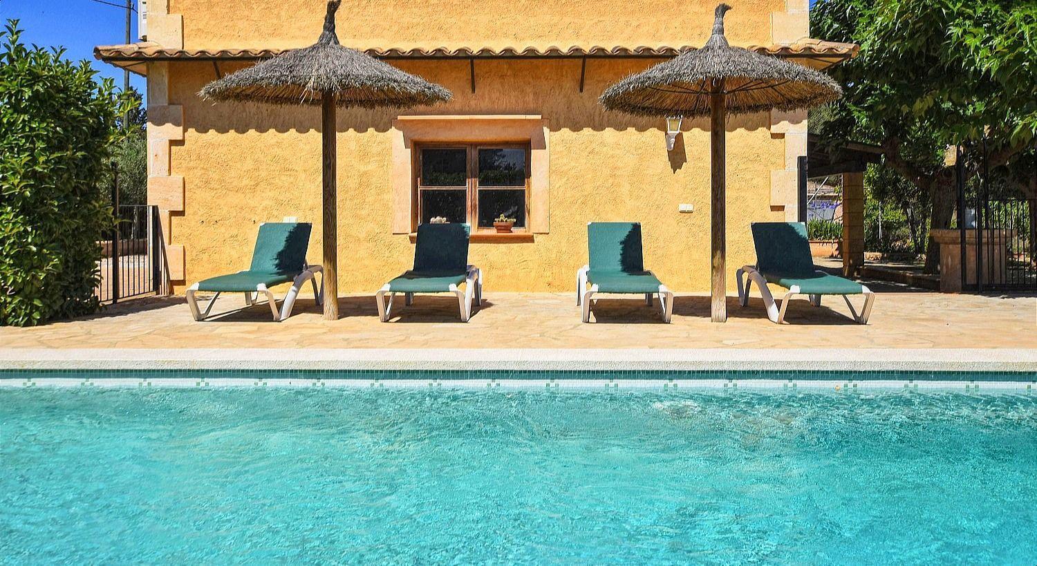 The house is surrounded by an idyllic garden with many shady spots. The paved pool terrace with two fixed thatched umbrellas houses the 11 m x 4 m ( 0.80 m to 1.90 m deep ) private salt water swimming pool with outdoor shower and a wooden porch with sofas for relaxing. An indoor brick grill has been installed for our guests on the pool terrace, so you don't have to sizzle in the sun while preparing the barbecue. Another highlight of Finca SA COVA, and therefore particularly attractive for families with children and sports enthusiasts, is its own tennis court. The finca offers a nice and quiet location, but is only a 5 minutes' drive away from Manacor, the second largest town of Mallorca. In Manacor there are supermarkets, restaurants etc.... The beaches of the areas of Porto Cristo, Calas de Mallorca and Sa Coma on the east coast, Arta and Colonia de Sant Pere in the north can be reached by car in 15-30 minutes.