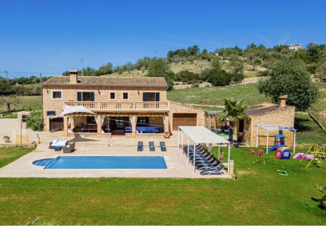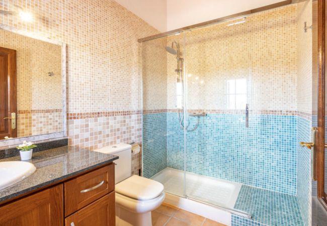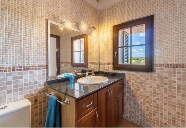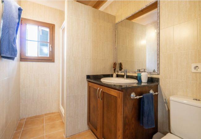 The interior of the villa stands out for its luminosity and open design, with an integrated living-dining room, a fully equipped kitchen and a bedroom on the ground floor. On the upper floor, four bedrooms are distributed: three of them have a double bed, two have an en-suite bathroom and the third has a separate bathroom located in the corridor. In addition, there is a children's bedroom with four single beds and a private bathroom, as well as a small study ideal for working or studying. Some bedrooms have access to a sunny balcony with impressive views of the Mallorcan landscape.