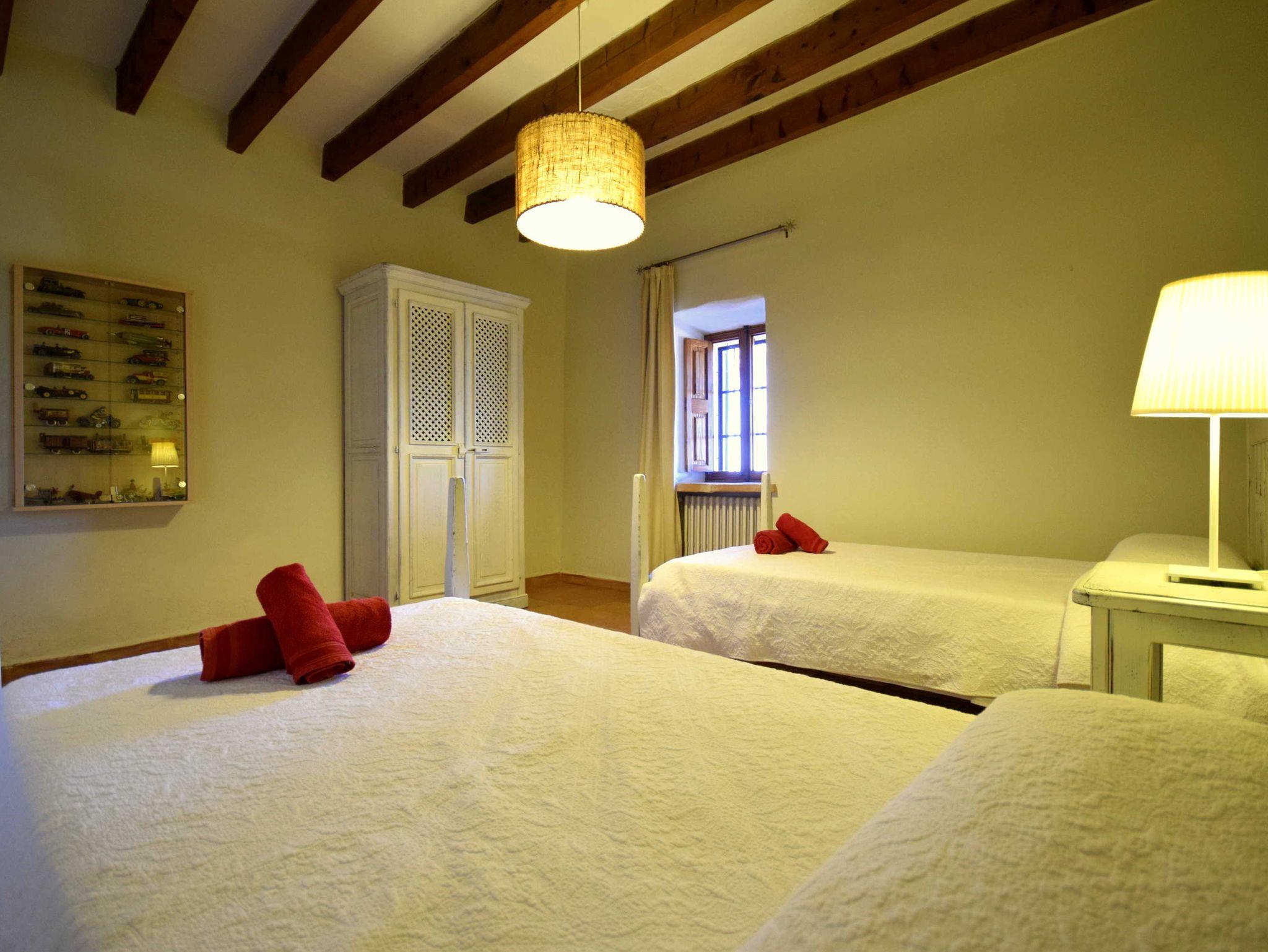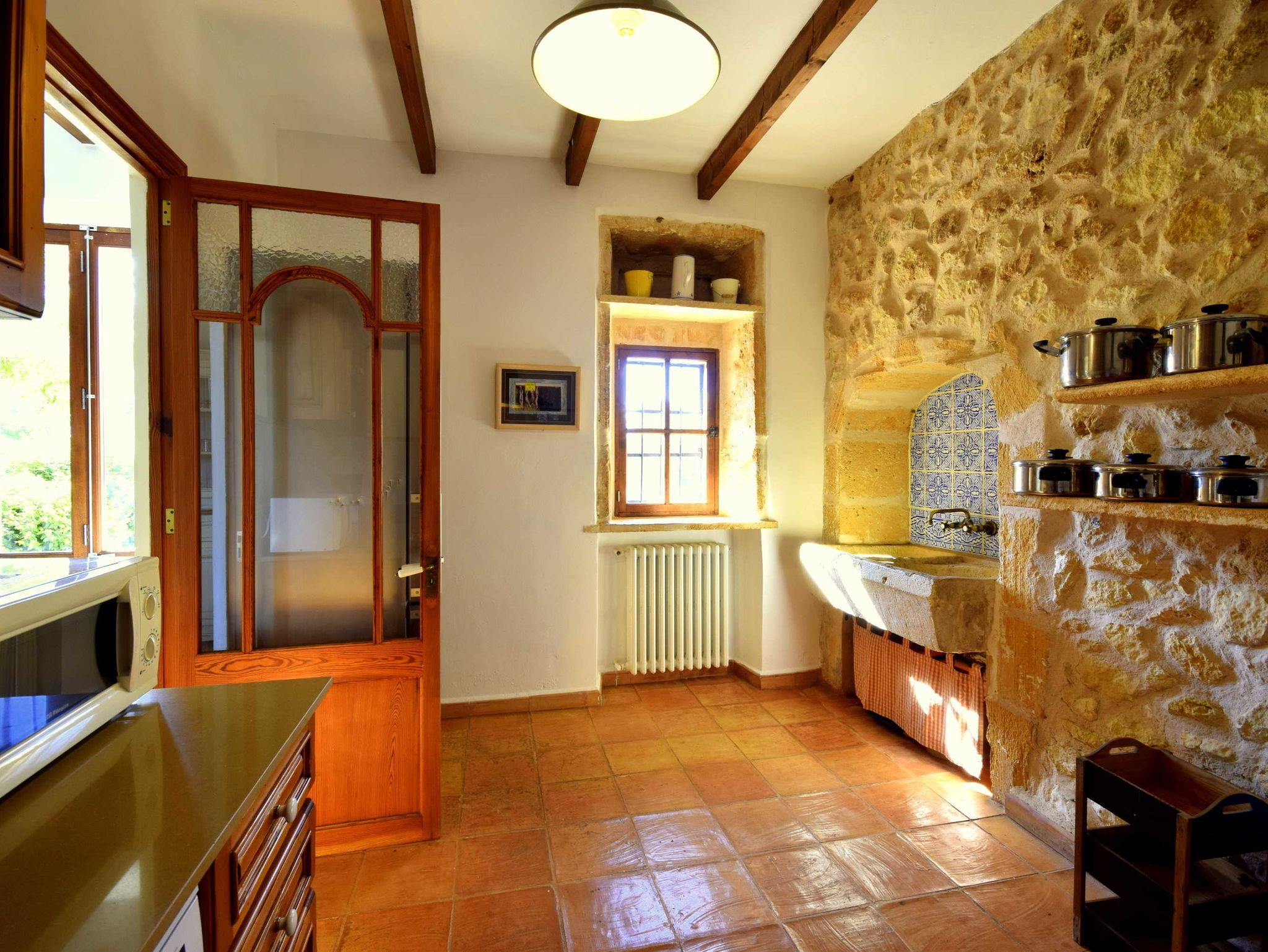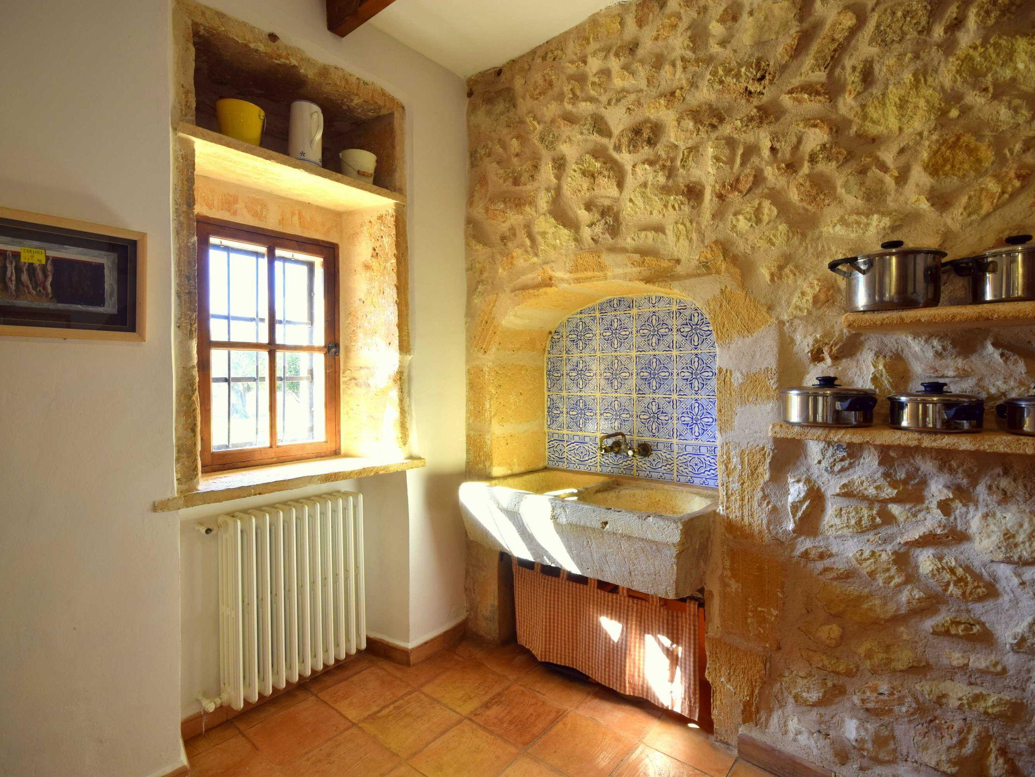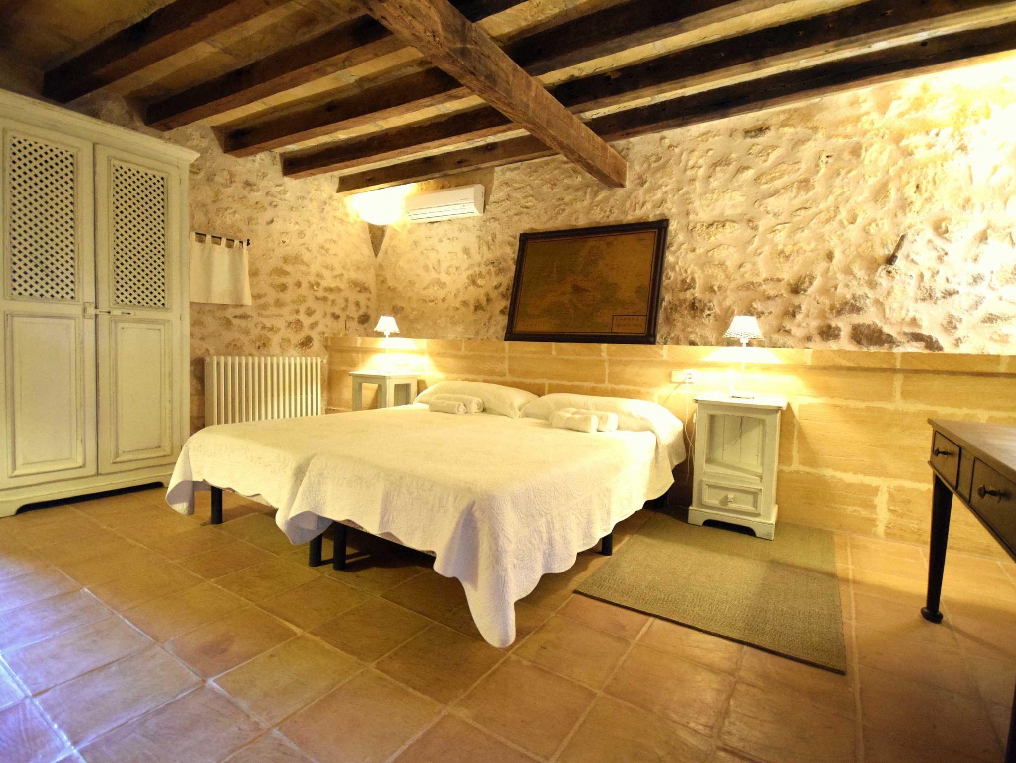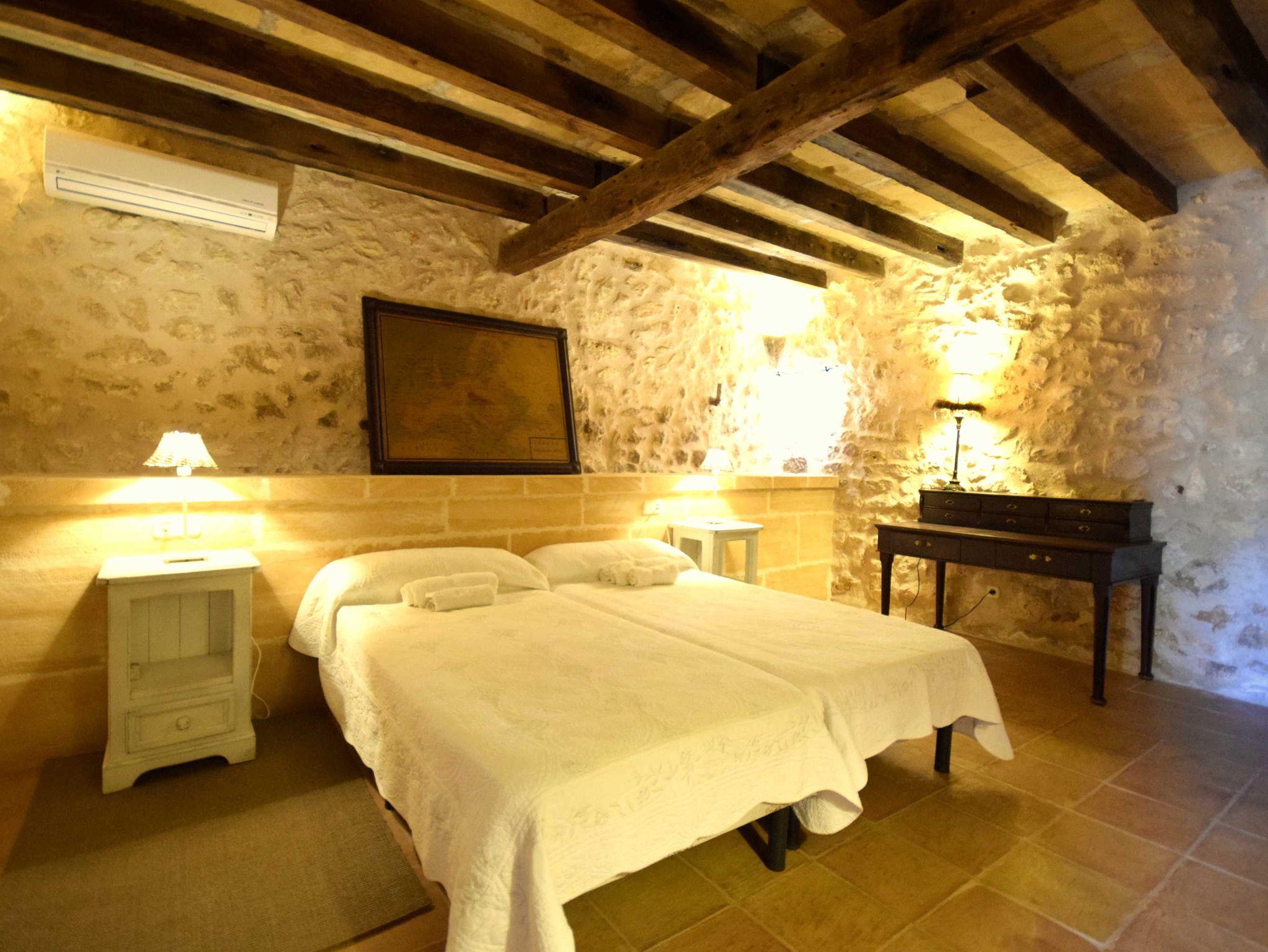 Finca Conies: In etwa 4 km Entfernung von Manacor in Richtung Colonia de Sant Pere liegt diese 130.000qm große Anwesen aus dem Jahr 1800, die Jahr 2012 restauriert und renoviert wurde. Die Wohnfläche beträgt 220qm und verteilt sich auf 4 Schlafzimmer und 3 Bäder sowie einen ca. 70qm großen Wohn-und Essbereich. Im vorderen Bereich des Hauses befinden sich ein Schlafzimmer und die Küche mit einem kleinen Esszimmer, bevor man von dort in den Wohn-und Essbereich gelangt, dem sich 2 weitere Schlafzimmer und ein zweites Bad anschließen. Alle Räume sind rustikal gestaltet und eingerichtet und haben zum Teil Wandverkleidungen aus Naturstein oder die für Mallorca so typischen Holzbalken an den Decken. Alle Gemeinschaftsräume verfügen über Klimaanlage. Eine ehemalige Stallung wurde zu einem kleinen Apartment mit separatem Eingang umgebaut, welches über ein Schlafzimmer mit Klimaanlage und ein kleines Bad verfügt. Im Außenbereich laden der Garten mit einem 5x10m großen Pool und diverse Sonnenterrassen zum Entspannen ein.
