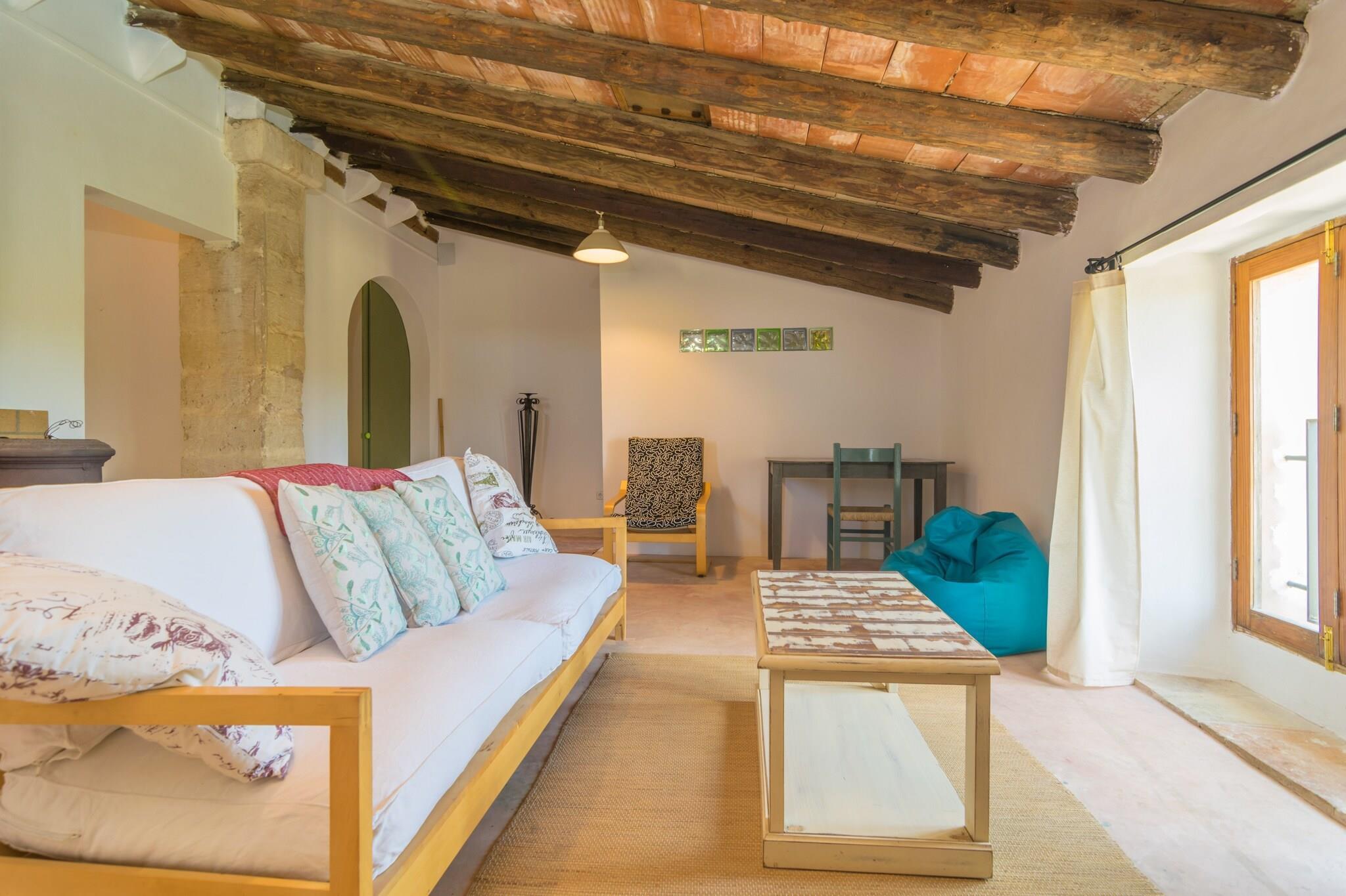Udendørsområdet på denne finca giver mulighed for at opleve et autentisk mallorcansk landsted. Den rustikke konstruktion, omgivet af ren natur, byder på smukke hjørner, hvor I kan tilbringe hyggelige stunder. Det kunstige græsplæneområde er perfekt til at sole sig på en af de 2 liggestole eller nyde jacuzzi'en, der kan opvarmes til 24ºC. Derefter finder I flere terrasser, hvor I kan nyde et glas vin. Havens midtpunkt er den dejlige saltvandspool, perfekt til en forfriskende dukkert på varme mallorcanske dage. Der er naboer i nærheden. Når I træder ind i huset, finder I en stue, et køkken-spisestue udstyret med gaskomfur og et badeværelse med badekar. Når I går op ad trappen, finder I stuen udstyret med tv og aircondition, to soveværelser, begge med to enkeltsenge og et klædeskab, og et andet badeværelse med bruser. Et af soveværelserne har aircondition og plads til at stille en barneseng og en høj stol op. Der er vaskemaskine, strygejern og strygebræt. Ventilatorer og varmelegeme er også tilgængelige. Indkvarteringen ligger 6 km fra byen Manacor, hvor du finder alle mulige former for service såsom barer, restauranter, butikker, supermarkeder og meget mere. Derudover har du nem adgang til de sydlige paradisiske strande og bugter som Cala Romántica, kun 17,6 km væk, og mange andre. Bemærk: Denne indkvartering er beregnet til familier og gæster over 30 år, der søger et fredeligt ophold. Reservationer til fester eller arrangementer accepteres ikke. En kopi af identifikationsdokumentet for alle gæster skal fremvises for at bekræfte reservationen. Kontakt annoncøren for mulige gebyrer. Kæledyr er ikke tilladt. Afholdelse af arrangementer er forbudt. Der er udendørs parkering til 2 biler.