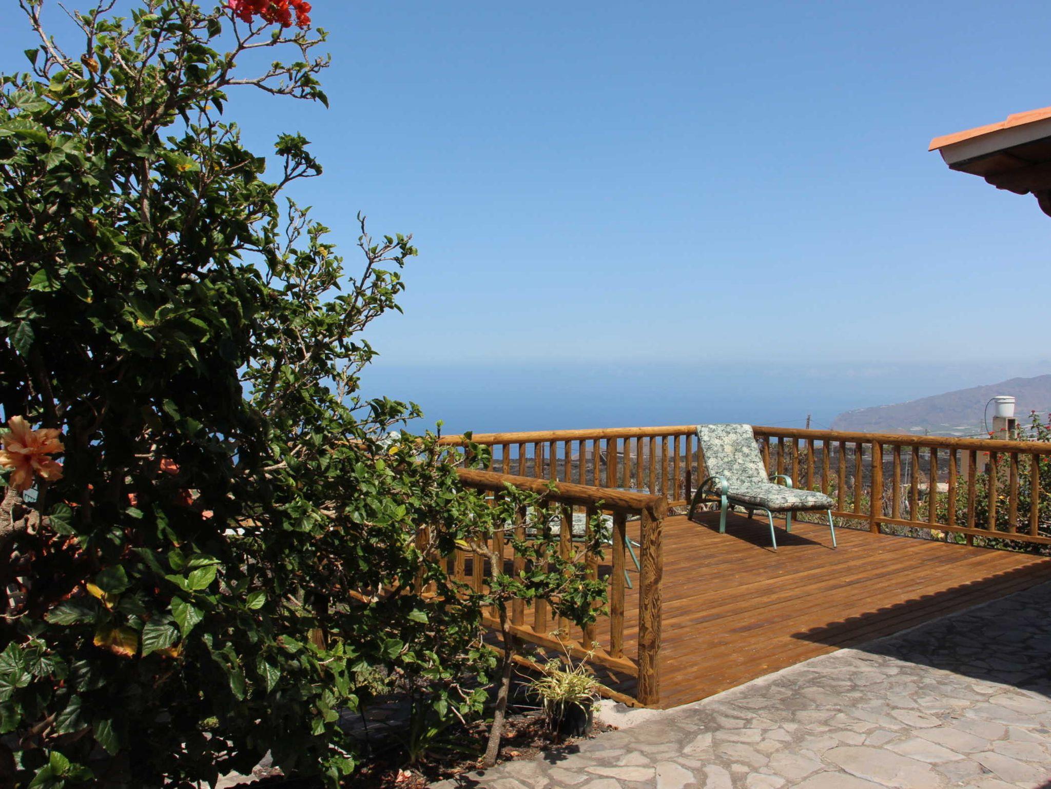 Direkt vor dem Haus gibt es eine überdachte Terrasse mit einem Tisch und Stühlen. Auf der großen, neu gebauten Holzstehlen-Terrasse haben zwei Liegestühle, ein Sonnenschirm und ein kleiner Tisch Platz. Von hier aus hat man einen wunderschönen Blick auf die in schwarzem Lavasand eingebetteten Weinreben sowie auf das Meer. Eine kleine separate Terrasse bietet einen schönen Platz um den Sonnenuntergang zu genießen. Auch ein kleiner Grill steht zur Verfügung.