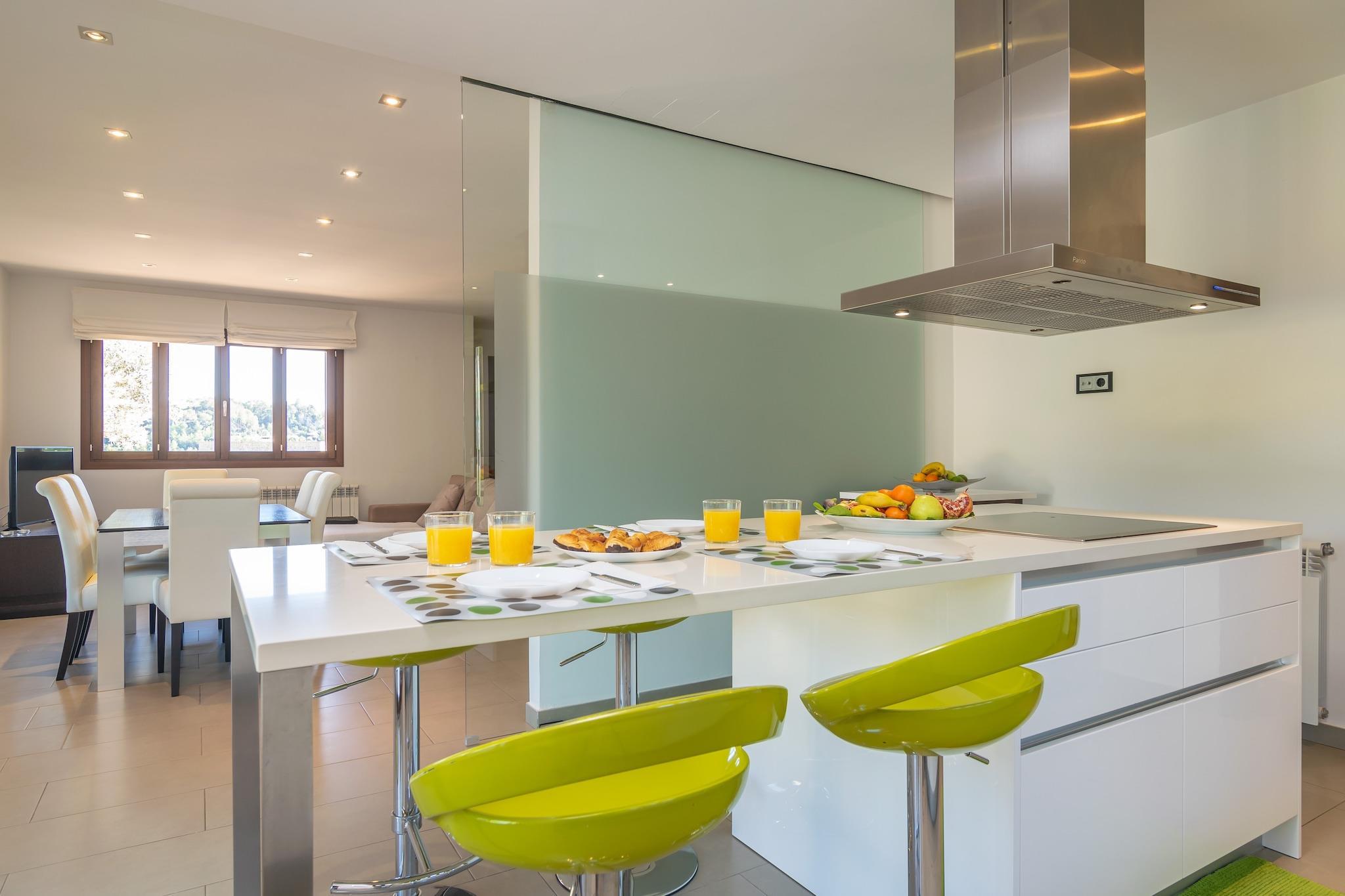 Na een dag vol activiteiten is er niets fijner dan een ontspannend bad in het chloorbad van 8 x 3,5 meter en een diepte tussen de 1,5 en 1,7 meter. De omliggende tuin is ideaal om te zonnebaden op de ligstoelen. Dan is de veranda naast het huis uw ontmoetingsplaats voor een heerlijke barbecue of een drankje terwijl u geniet van de prachtige zonsondergang over het eiland. Het terrein is omheind en er zijn buren in de buurt. Het interieur van het huis met twee verdiepingen verrast met zijn moderne en lichte stijl. De woonkamer, eetkamer en keuken bevinden zich in dezelfde praktische en functionele ruimte waar u satelliet-tv kunt kijken, kunt genieten van gezinsmaaltijden en kunt koken op de keramische kookplaat. Naast de keuken bevindt zich de wasruimte met wasmachine, strijkijzer en strijkplank. Een toilet completeert de begane grond. Boven heb je de 3 slaapkamers, allemaal met airconditioning: de hoofdslaapkamer met tweepersoonsbed en en-suite badkamer met douche; nog een slaapkamer met 2 eenpersoonsbedden en de laatste met een onderschuifbed. De eerste verdieping wordt compleet gemaakt met een badkamer met ligbad. Daarnaast is het huis voorzien van centrale verwarming op olie, evenals een kinderbedje en een kinderstoel voor uw baby. Mancor de la Vall is een prachtig stadje aan de voet van de bergen met de basisvoorzieningen voor een zelfstandig verblijf. Inca, op 5 km afstand, is een stad die meer winkels en diensten biedt naast een traditionele markt die elke donderdag plaatsvindt. Mancor is ook het perfecte startpunt voor excursies zowel te voet als per fiets, bijvoorbeeld naar Santa Lucía, naar Lluc, naar Ses Fonts Ufanes of naar de legendarische grotten van Campanet. En als u een strand wilt, ligt het dichtstbijzijnde op 32 km afstand, het paradijselijke strand van Puerto de Alcúdia. Opmerking: deze huuraccommodatie accepteert geen klanten jonger dan 28 jaar, behalve in gevallen waarin het om een ??gezinsverblijf gaat. We hebben kopieën van het identiteitsbewijs van elke persoon nodig om de reservering te kunnen accepteren. Voor eventuele extra kosten kunt u contact opnemen met de adverteerder. Wij accepteren geen huisdieren. Het vieren van evenementen is niet toegestaan. Er is buiten parkeergelegenheid voor 5 auto's. Afstanden Strand: 29,1 km - Playa de Muro Luchthaven: 41,2 km - Son Sant Joan Golfbaan: 26,2 km - Golf Pollença Stad: 0,5 km - Mancor de la Vall Treinstation: 7 km - Inca Bushalte: 0,550 km - Mancor de la Vall Veerboot: 32,2 km - Port d'Alcúdia Ziekenhuis: 7,1 km - Regionaal ziekenhuis van Inca Toeristenvergunning: ETV/9755 Op de Balearen geldt een toeristenbelasting, Ecotasa genaamd, die door de gast moet worden betaald. Het bedrag varieert tussen EURO 0,55 / per nacht per persoon in het laagseizoen en EURO 2,2 / per nacht per persoon in het hoogseizoen. Vanaf de negende dag wordt het met de helft verminderd. Personen onder de 16 jaar uitgesloten.