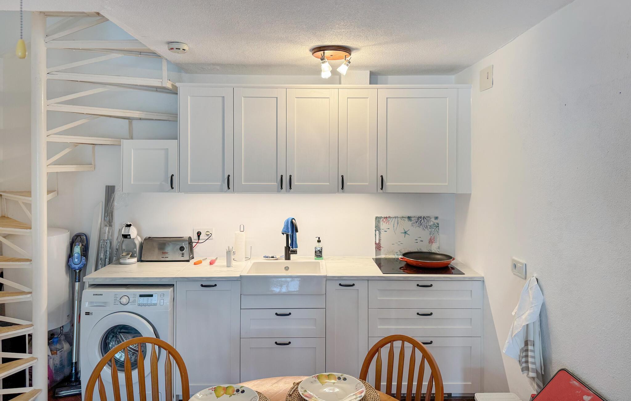 Indretningen er smagfuld og komfortabel, så I får en dejligt rolig base på jeres ferie. Anret en dejlig morgenmad i køkkenet, inden I tager til stranden. Efter en lang dag med sol og oplevelser kan I slappe af i sofaen med snacks og en god film.