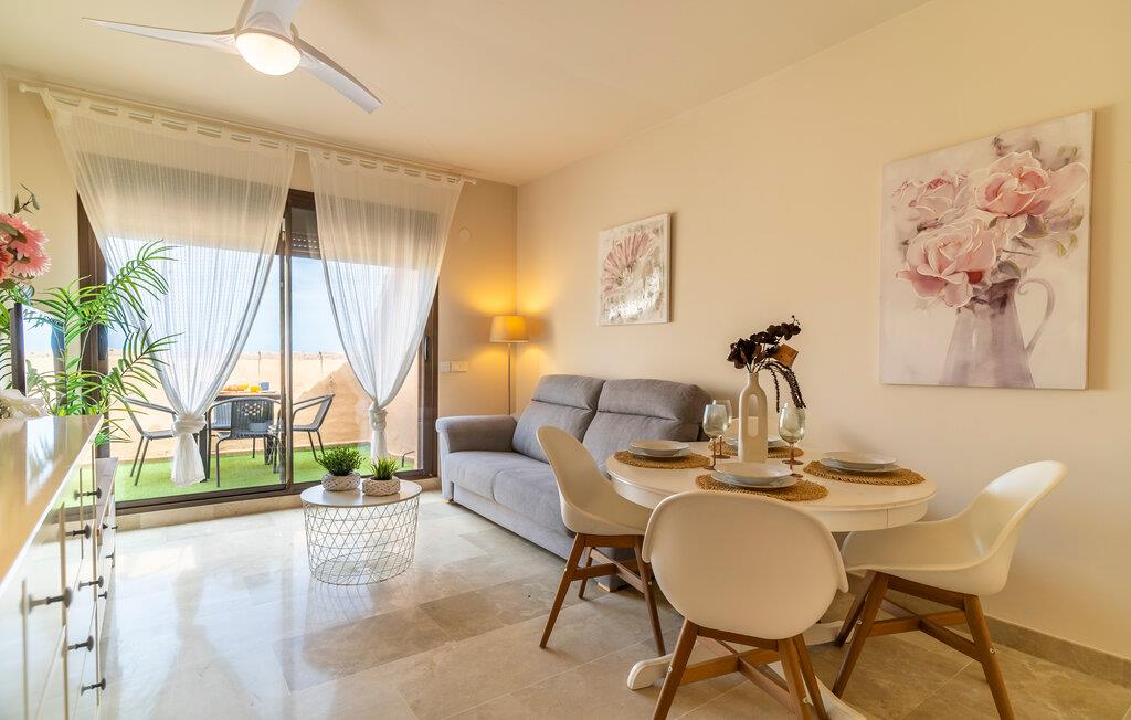 Denne indbydende lejlighed lover en afslappende pause fra hverdagen. Et lyst opholdsrum, muntre farver og moderne møbler skaber en atmosfære, hvor I hurtigt kan slappe af og nyde livet. Uanset om I snakker over en kop kaffe, tilbereder lækre måltider sammen eller lytter til afslappende musik, sætter I selv tempoet for dagen her.