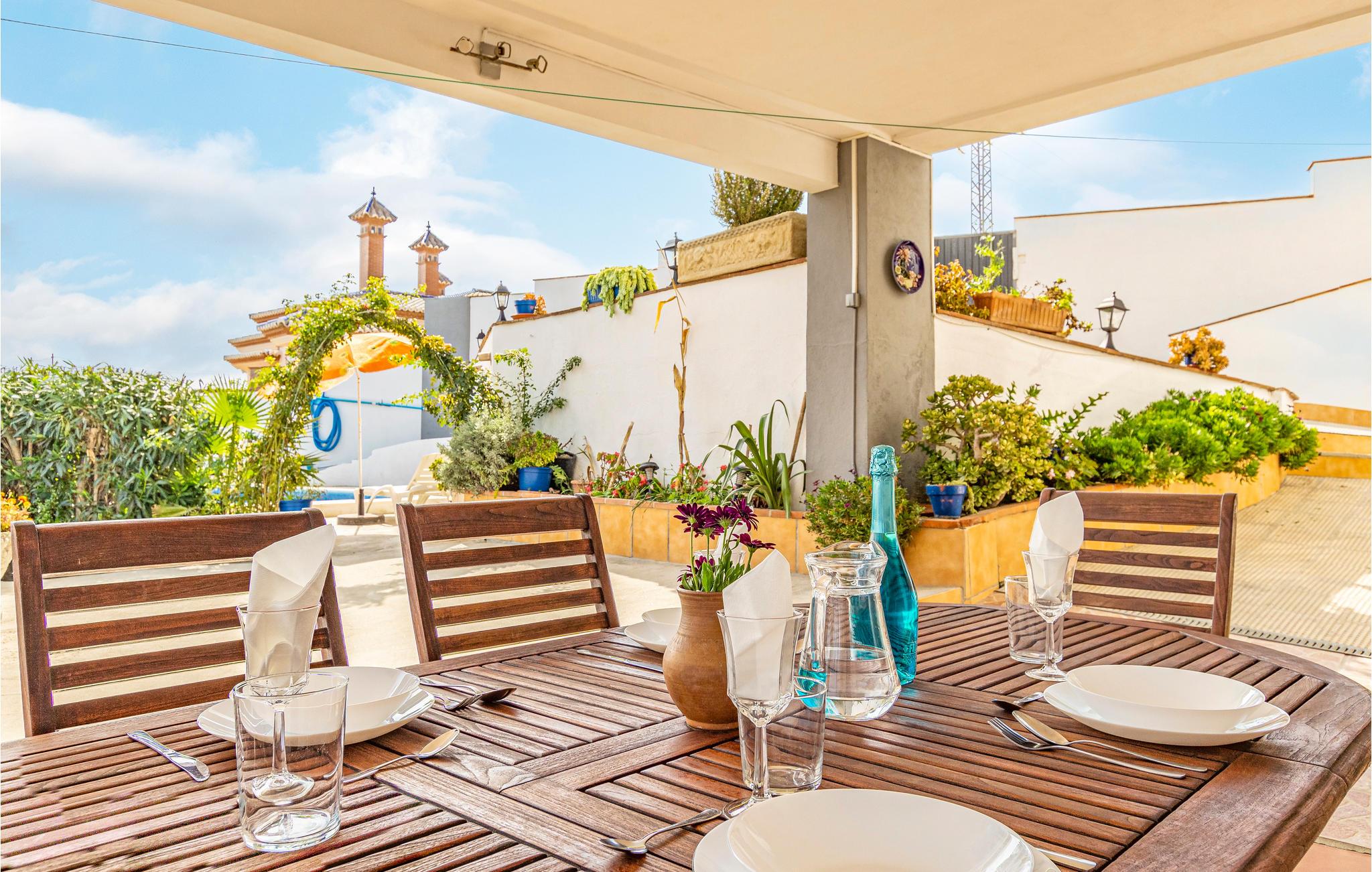 Dette feriehus er smukt placeret på Spaniens solrige sydkyst. Om morgenen vågner I i det klare solskin i det hyggelige soveværelse og kan se frem til en fantastisk dag. I skal blot åbne døren til den store overdækkede terrasse. Så skinner solen ind i soveværelset, og I har en unik udsigt til naturen i det fjerne. I kan spise her eller i det hyggelige køkken. I kan også slappe af i middagssolen på terrassen og i stuen. Her i byen nær havet kan I både nyde livet komfortabelt på stranden og lære mange gode steder at kende. Der er masser af muligheder, uanset hvad I vil gøre.
