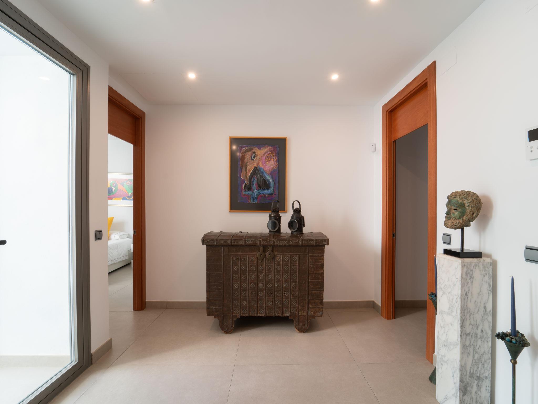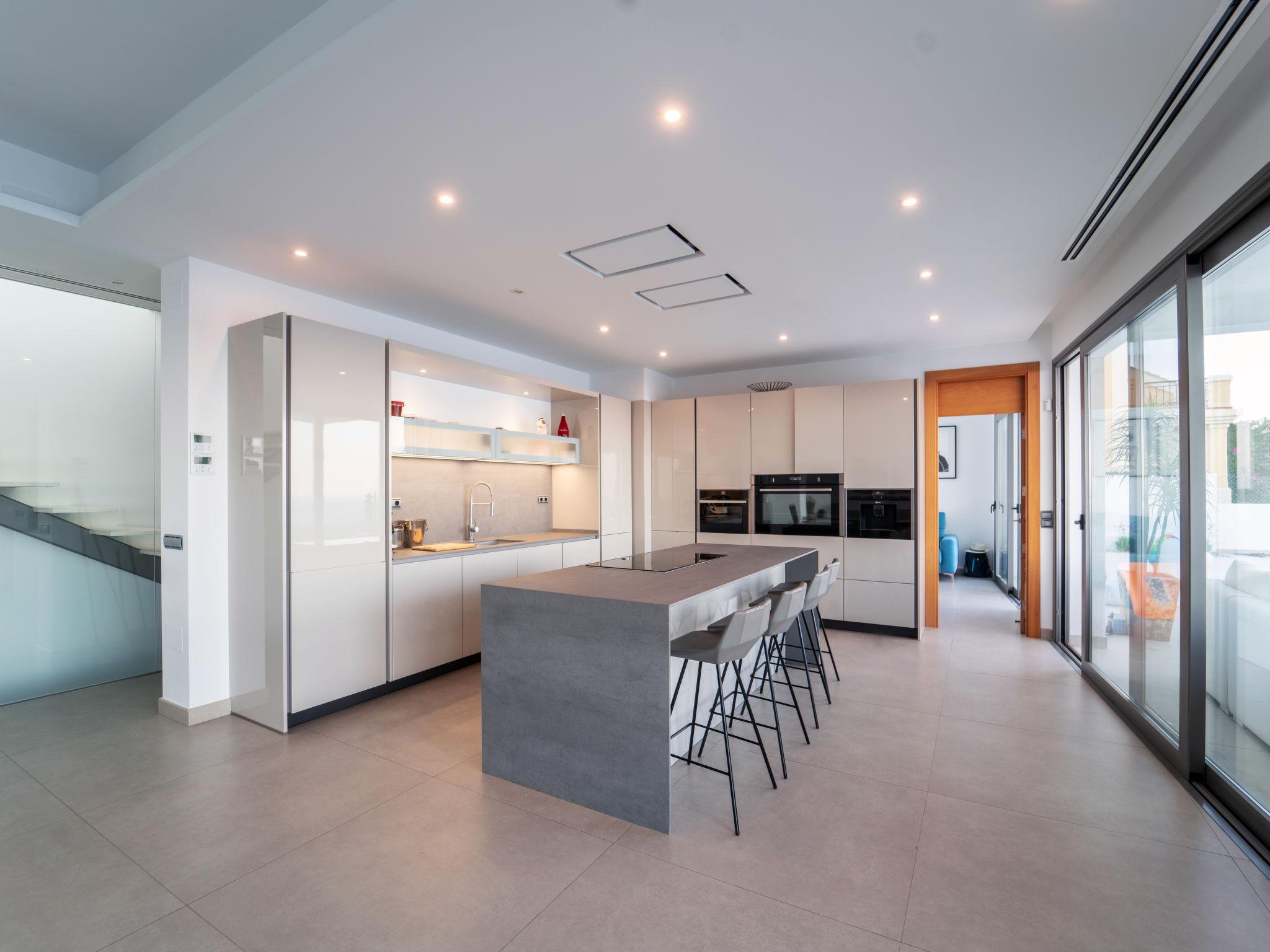 "Luz", 8-room villa 651 m2 on 3 levels. Object suitable for 10 adults. Spacious and bright, practical and tasteful furnishings: lounge with digital TV and flat screen. Exit to the terrace, to the swimming pool. Living/dining room with air conditioning and forced-air heating. Exit to the terrace, to the swimming pool. Open kitchen (oven, dishwasher, 3 induction hot plates, toaster, kettle, microwave, electric coffee machine, Capsules for coffee machine (Dolce Gusto) extra, cooking island). Exit to the terrace, to the swimming pool. On the lower ground floor: lounge with digital TV, flat screen and Home cinema. 1 room with 1 double bed (180 cm, length 200 cm), shower/WC (private) digital TV. Upper floor: 1 room with 1 french bed (200 cm, length 200 cm), shower/WC (private) air conditioning and forced-air heating. 1 room with 1 french bed (200 cm, length 200 cm), shower/WC (private) air conditioning and forced-air heating. 1 room with 1 french bed (180 cm, length 200 cm), shower/WC (private) air conditioning and forced-air heating. 1 room with 1 french bed (180 cm, length 200 cm), shower/WC (private) air conditioning and forced-air heating. Living/dining room with dining table and kitchen corner. Lounge with digital TV. 3 terraces. Terrace furniture, deck chairs (6). Panoramic view of the sea. Facilities: washing machine, dryer, iron, children's high chair, baby cot for up to 2 year olds, hair dryer. Internet (WiFi, free). Please note: non-smoking house. Maximum 1 pet/ dog allowed. Smoke alarm, fire extinguisher. VUT/MA/44722 // Reg. Nr.: ESFCTU0000290400001268930000000000000000VUT/MA/447725