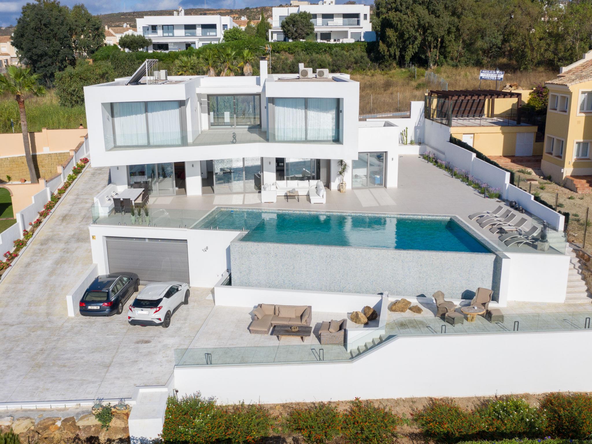 Urbanización La Paloma 9 km from Marina de Sotogrande: Beautiful, comfortable house "Villa Luz", 3 storeys, detached, built in 2019. In an elevated position residential area (villas), 1.5 km from the sea. Private: property 1'195 m2 (fenced), terraced garden, swimming pool angular (6 x 13 m, depth 40 - 175 cm, seasonal availability: 01.Jan. - 31.Dec.) with internal staircase. Outdoor shower, terrace, garden furniture, pool maintenance by the owner/gardener. In the house: lift. Single garage. Supermarket 4.8 km, shopping centre 10.5 km, restaurant 1.6 km, café 600 m, bus stop "Bus Stop Duquesa West, N-340," 6 km, railway station "Estación de tren Algeciras" 37.5 km, sandy beach "Playa de Las Arenas" 1.7 km. Sports harbour 6 km, marina 8.3 km, golf course (18 hole) 6.6 km, sailing school 10.2 km, tennis 9.4 km, minigolf 12.6 km, riding stable 10.8 km. Nearby attractions: Gibraltar 33.8 km, Puerto Deportivo Sotogrande 8.3 km, The Estepona Old Quarter Casco Antiguo 18.6 km, Ciudad Romana de Acinipo 102 km, Ciudad de Ronda 83.4 km, Tarifa Beach 59.2 km. Hiking paths: El Caminito del Rey - Acceso Norte 118 km.