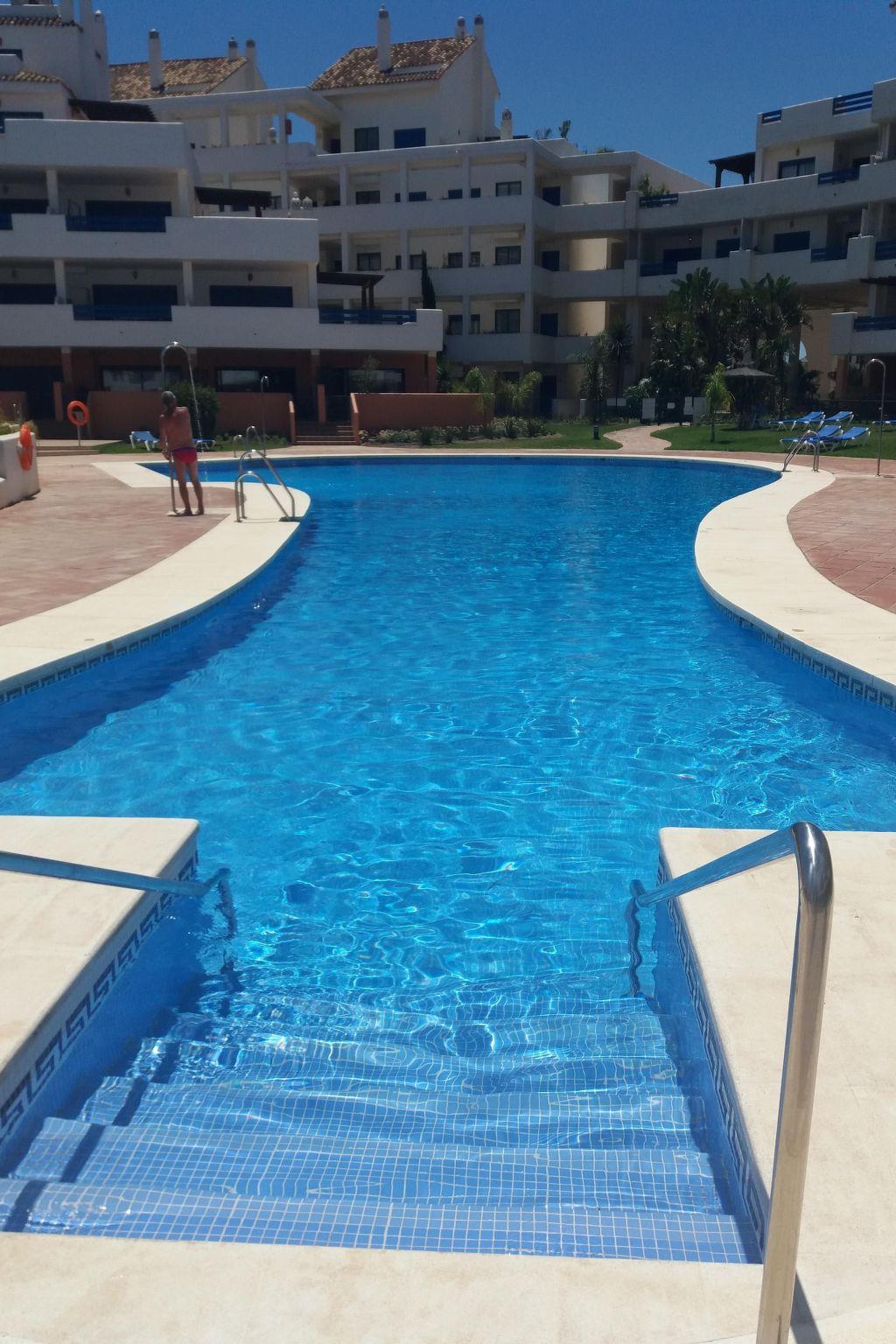 Superb 5-person flat with magnificent sea views in a fully fenced and secure estate, access to which is scrupulously controlled by a 24-hour security guard. In the heart of the Golf de la Duquesa, the property boasts vast and sumptuous gardens covering 20.000m2, ponds, three swimming pools (freshwater, 2 OF WHICH ARE EQUIPPED WITH HYDRAULIC SEAT FOR DISABLED PERSONS AND WHEELCHAIR ACCESS) with sun loungers and showers, with lifeguards on duty (in high season), a paddle court, a mini-soccer pitch, a petanque pitch, a barbecue area and a playground for children Apartment: 98m2, Hall, Living room - dining room - kitchen - laundry room - night hall - two full bathrooms (1 en suite with whirlpool bath, 1 with shower) - 20m2 terrace - garage