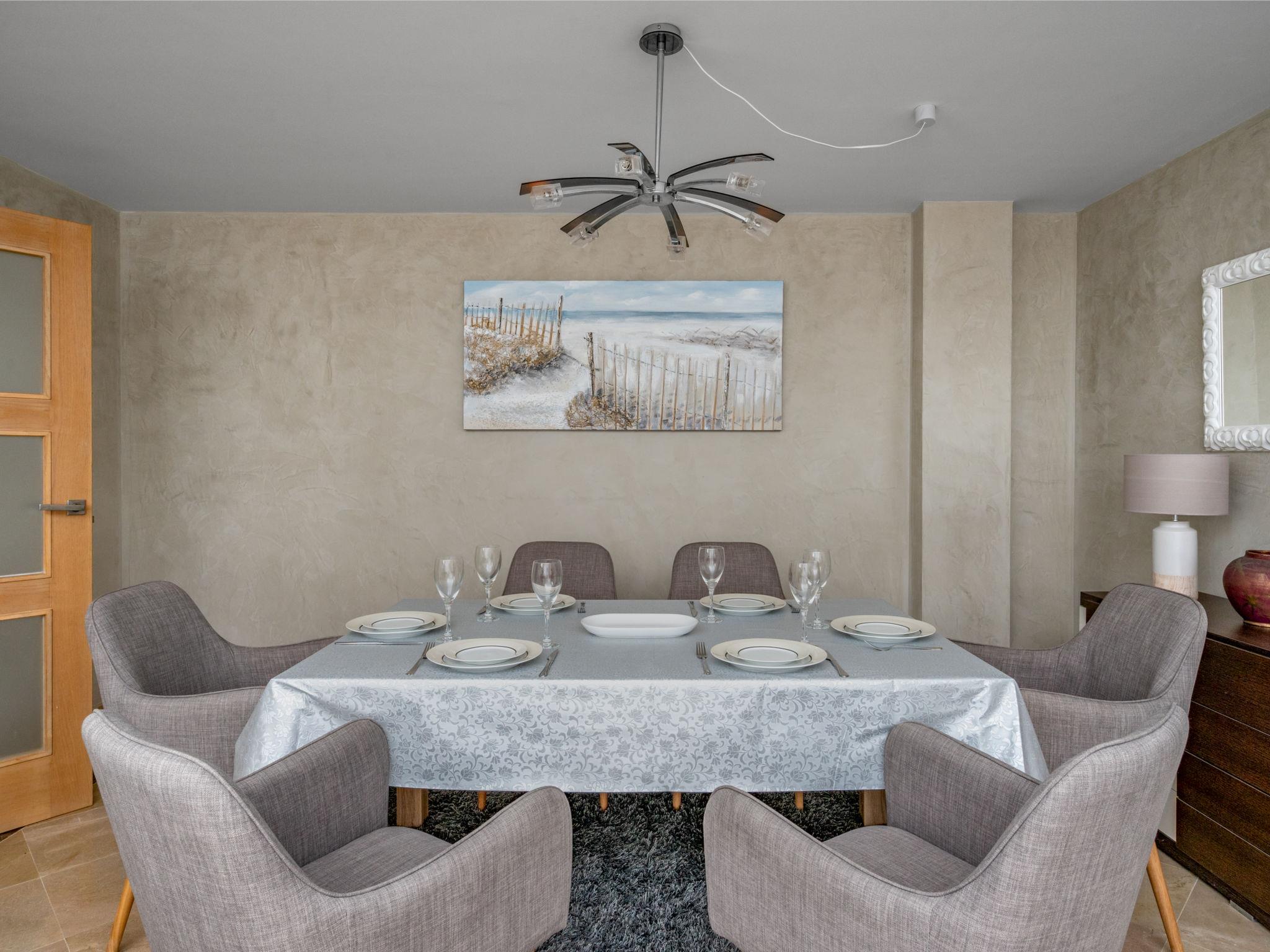 "Sea View Marina del Castillo", 3-room apartment 98 m2. Object suitable for 4 adults. Bright, very comfortable and cosy furnishings: living/dining room with dining table, TV, international TV channels, flat screen, air conditioning and forced-air heating. Exit to the terrace. 1 room with 1 double bed (180 cm, length 200 cm), bath/bidet/WC, double hand-basin, air conditioning, forced-air heating and electric shutters. Exit to the balcony. 1 room with 1 french bed (180 cm, length 200 cm), air conditioning, forced-air heating and electric shutters. Kitchen (oven, dishwasher, 4 induction hot plates, toaster, kettle, microwave, freezer, electric coffee machine, Capsules for coffee machine (L or) extra). Shower/WC. Electric heating. Natural stone floors. Terrace 11 m2. Terrace furniture. Panoramic view of the sea. Facilities: washing machine, safe, iron, children's high chair, baby cot, hair dryer. Internet (WiFi, free). Garage space n 27 (1 car). Please note: suitable for families. Non-smokers only. Fire extinguisher. VUT/MA/76606 // Reg. Nr.: ESFCTU0000290400001860880000000000000000VUT/MA/766064