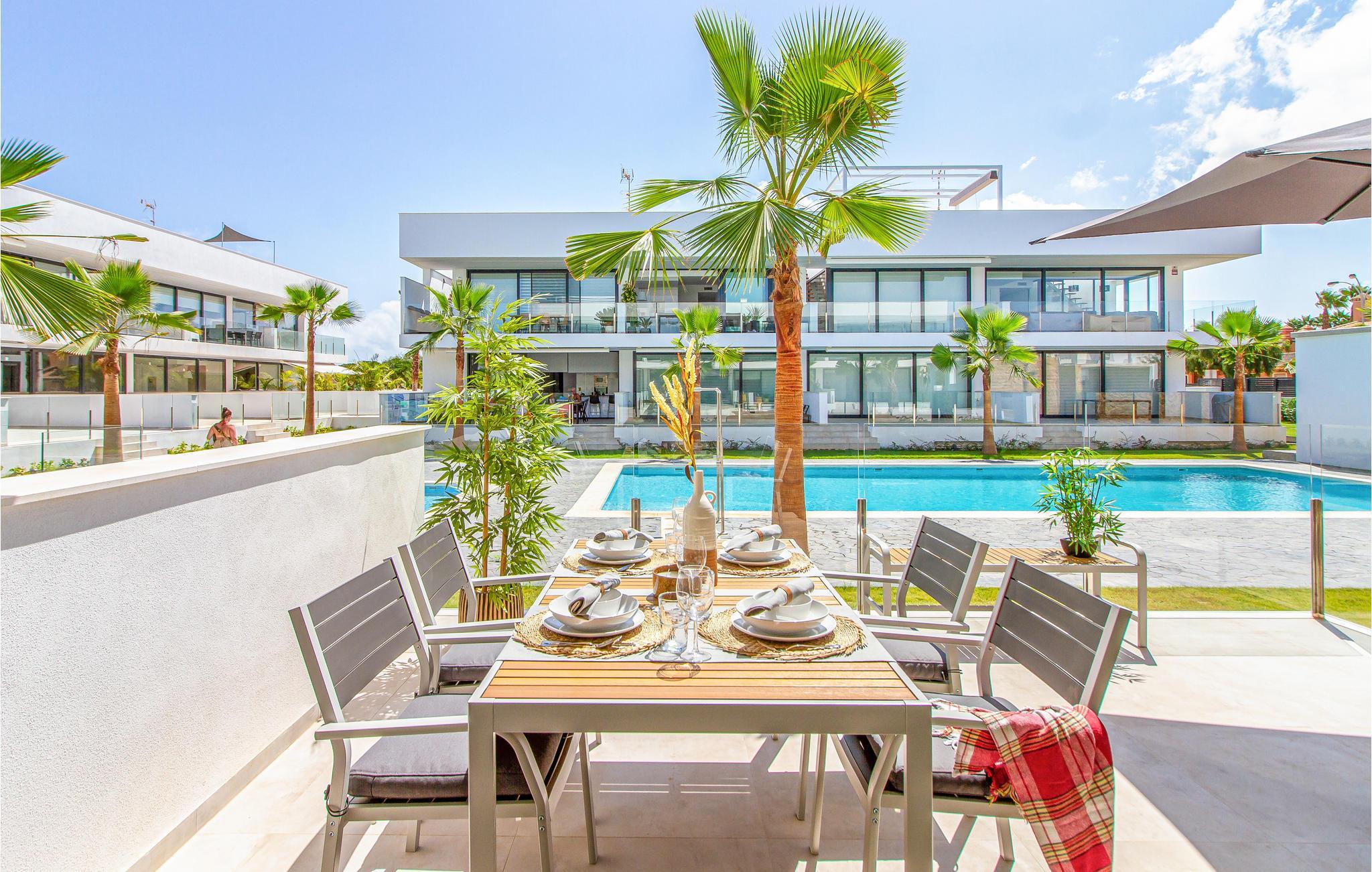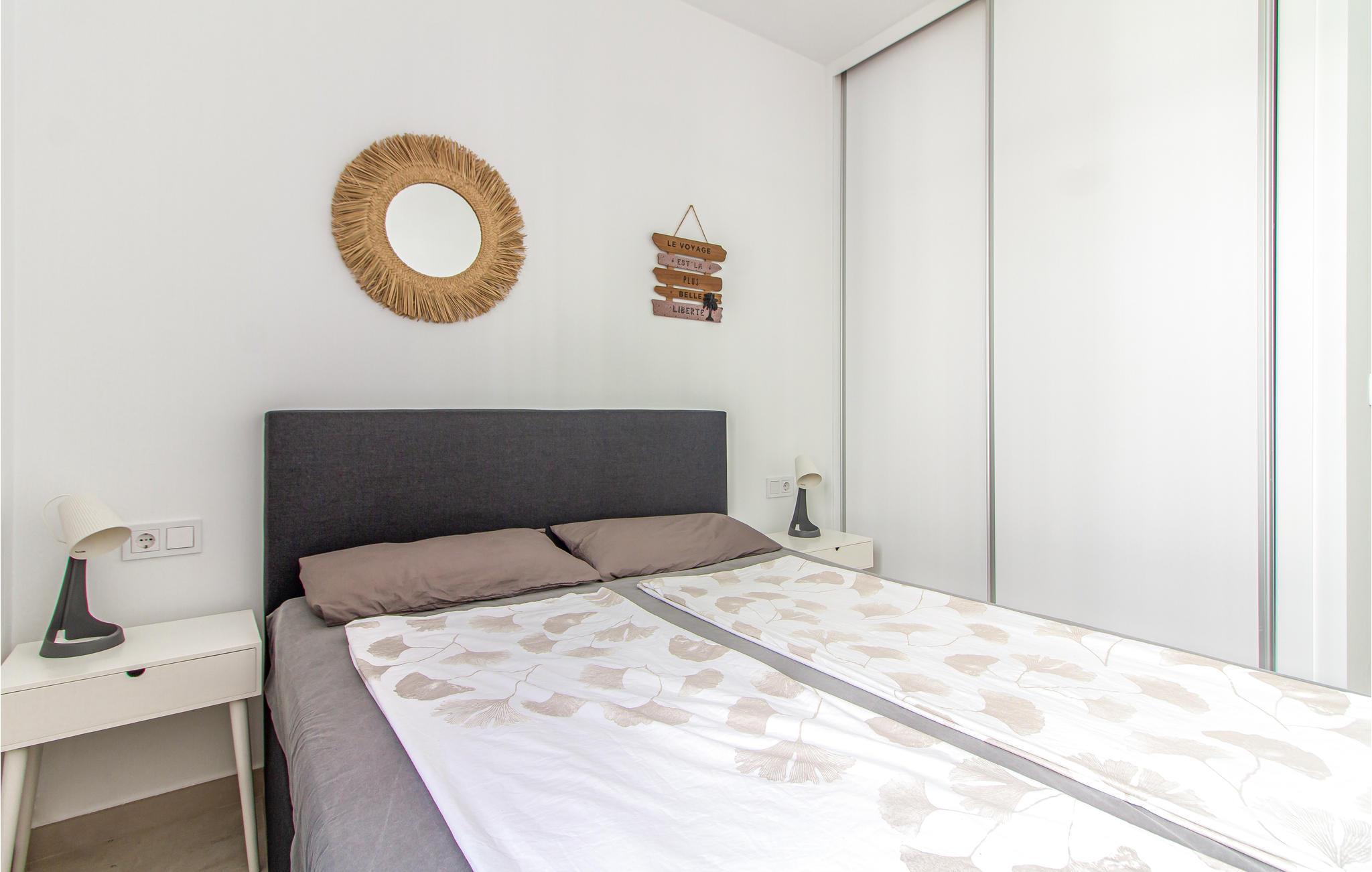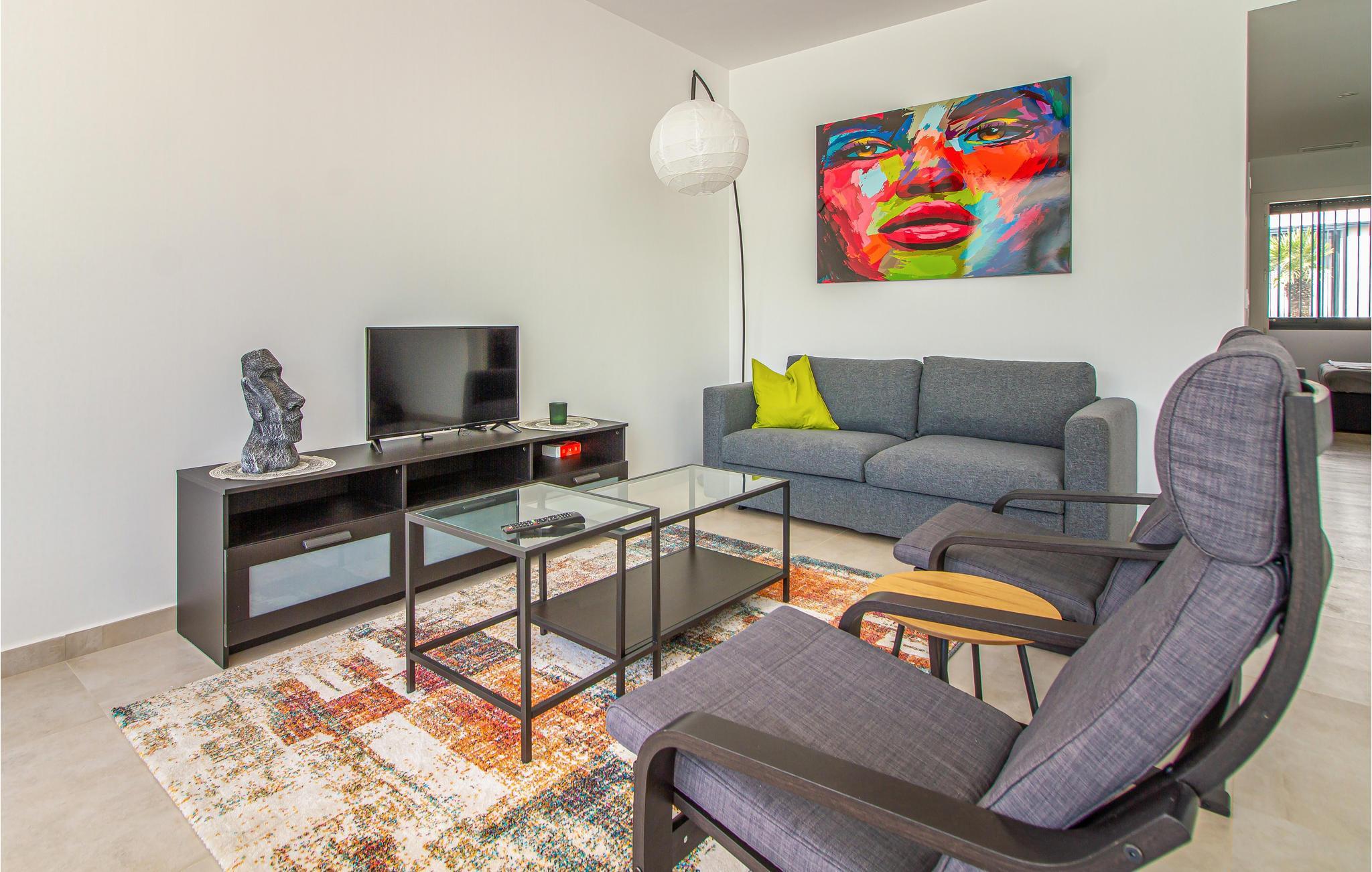 Denne moderne lejlighed vil opfylde alle jeres ønsker. Her finder I plads nok til en ferie med familien eller et vennepar. Møblerne er moderne og dekorative. Den flotte terrasse og det store udendørsområde er boligens force. Læn jer tilbage i liggestolene eller nyd en kølig drink i de herlige loungemøbler. Fra terrassen kan I hoppe direkte ud i den fælles pool, og efter en morgendukkert kan I spise en let morgenmad på terrassen og diskutere jeres aktiviteter for dagen.