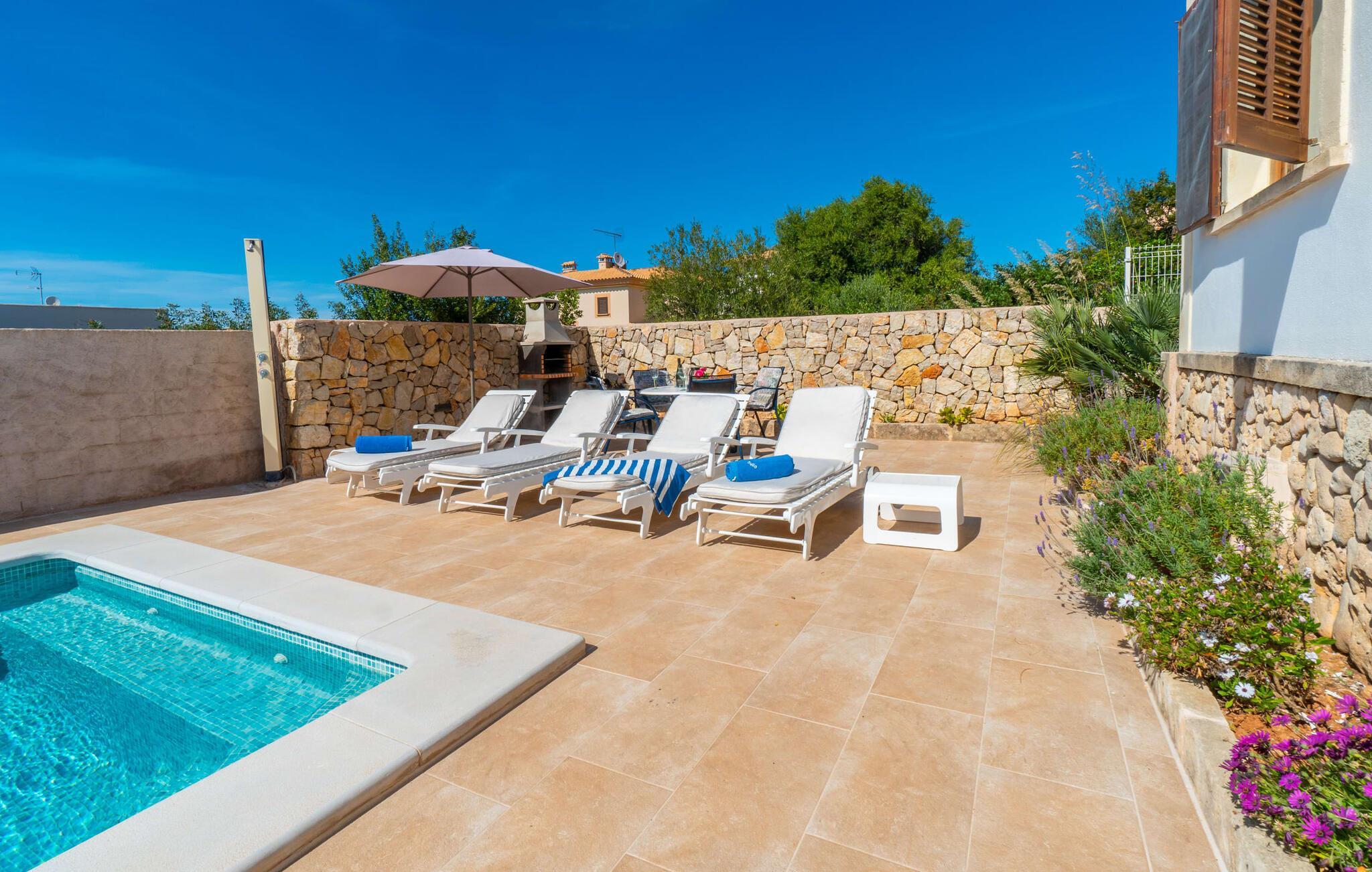 Hvad værdsætter du mest ved din ferievilla på Mallorca? Nærhed til stranden? Gode vandrestier i området? lange solbade? En rolig beliggenhed? Dejlige restauranter ved havet i gåafstand? Hvis du ikke vil gå glip af alt dette, kan villaen "Mar i Cel" være lige noget for dig. Den mindste af de to overdækkede terrasser ved indgangen giver en forsmag på den hygge, der venter jer i jeres sommerhus. Den større veranda er vært for et indbydende udendørs spiseområde til lange stearinlys sessioner langt ud i de varme sommernætter. Det nærliggende poolområde ligger i læ for vinden, så du kan få dine måltider her lige ved siden af grillen. Har du brug for at være endnu tættere på solen? Du skal blot gå op ad udvendige trapper til den perfekt placerede tagterrasse på din ferievilla. Den vidunderlige udsigt over havet er gratis her! Stueetagens opholdsstue er godt opdelt og har en skøn opholds- og spisestue. Det er udstyret med pejs og aircondition. Vinduerne byder på en vidunderlig udsigt over haven og de nærliggende foden af Ferrutx - et smukt sted at vandre. Både stuen og det tilstødende køkken har direkte adgang til den rummelige veranda. Et af de tre soveværelser har eget badeværelse en suite. De to andre soveområder deler et separat badeværelse med badekar. Villaen "Mar i Cel" er en del af boligområdet Colònia de Sant Pere på Mallorcas østkyst. Marinaen, små supermarkeder og restauranter er inden for nem gåafstand. Den lange naturlige strand Colònia de Sant Pere ligger kun 6 minutters kørsel fra feriehuset. Den smukke by Artà kan nås på 15 minutter i bil. Bemærk venligst, at denne ejendom ikke accepterer ungdomsgrupper eller polterabender. En ungdomsgruppe på denne ejendom består af personer under 30 år. Book ikke denne ejendom, hvis du er en ungdomsgruppe eller en polterabendgruppe, da din reservation vil blive afvist, når den er booket, hvilket også kan være tilfældet ved ankomst til ejendommen eller under dit ophold, og du vil ikke modtage en refusion. Dette er et Fincallorca feriehus.