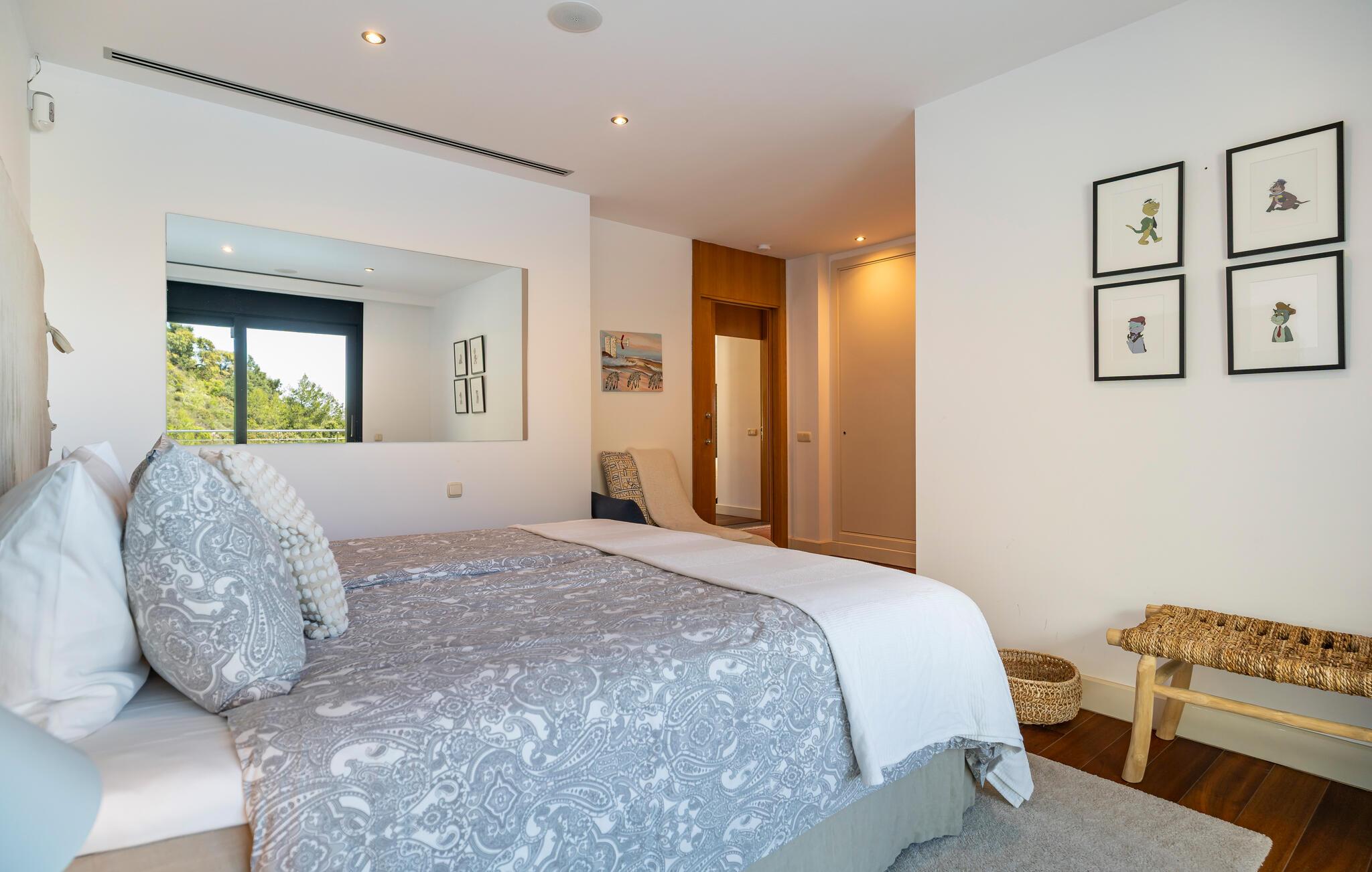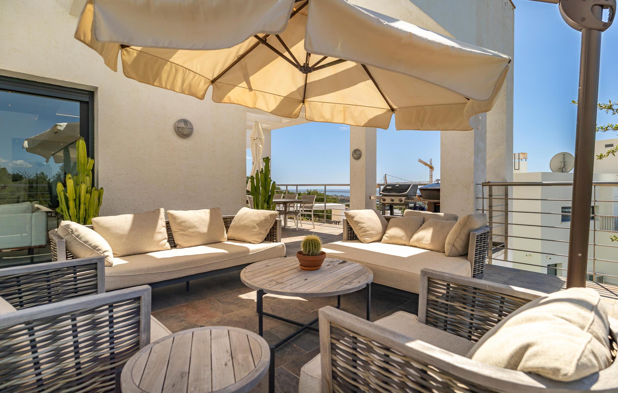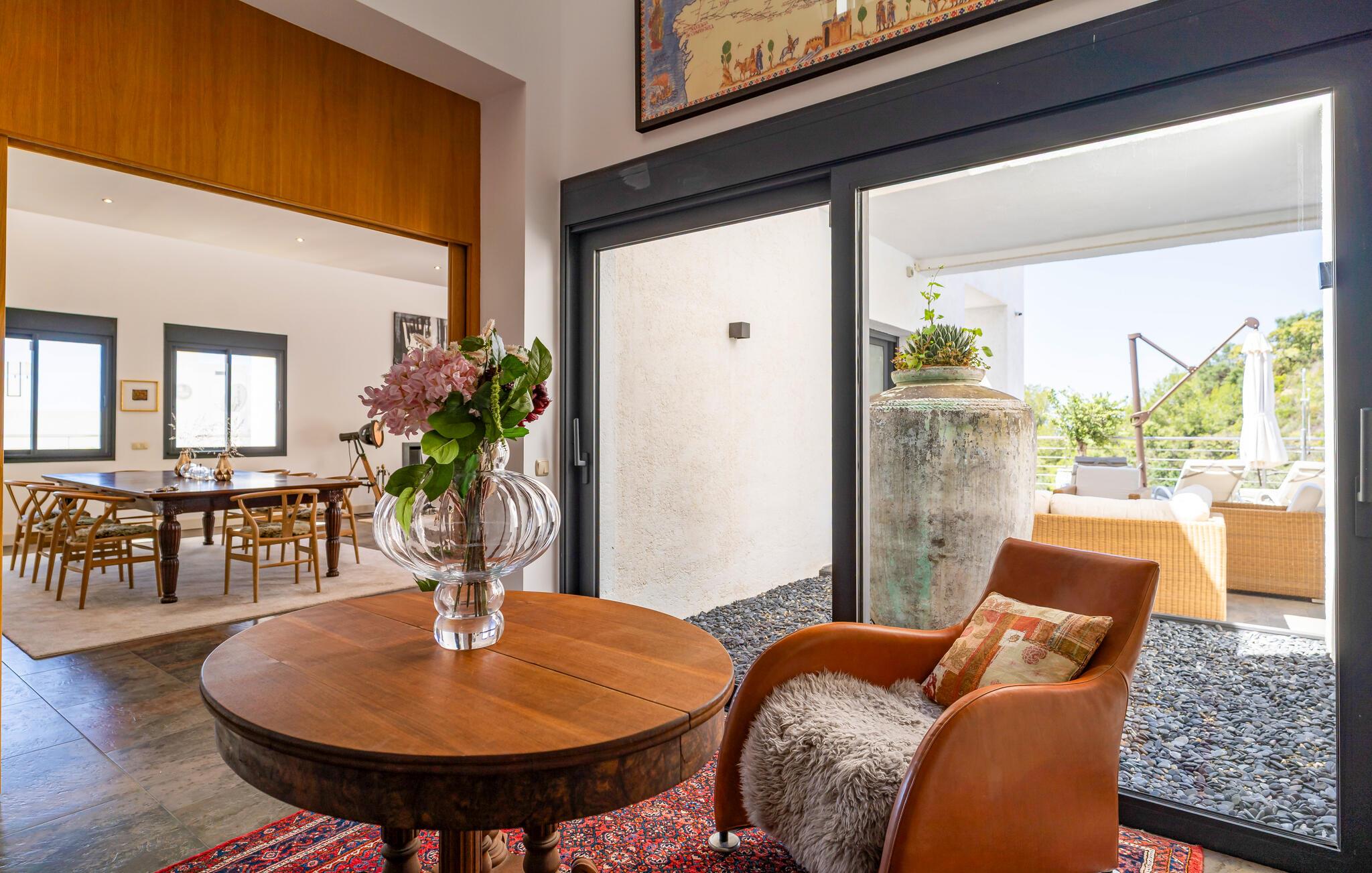 Denne eksklusive villa vil forkæle jer med alt hvad I behøver til en drømmeferie og tilbyder masser af plads til venner eller familie. De lyse, smagfulde værelser af høj kvalitet opfylder de højeste standarder. Med havet altid i sigte kan I fremtrylle kulinariske højdepunkter i det topmoderne køkken og spise sammen med en stor gruppe. Træn i fitnesscentret, stream en god serier, og nyd gode samtaler med et glas vin.