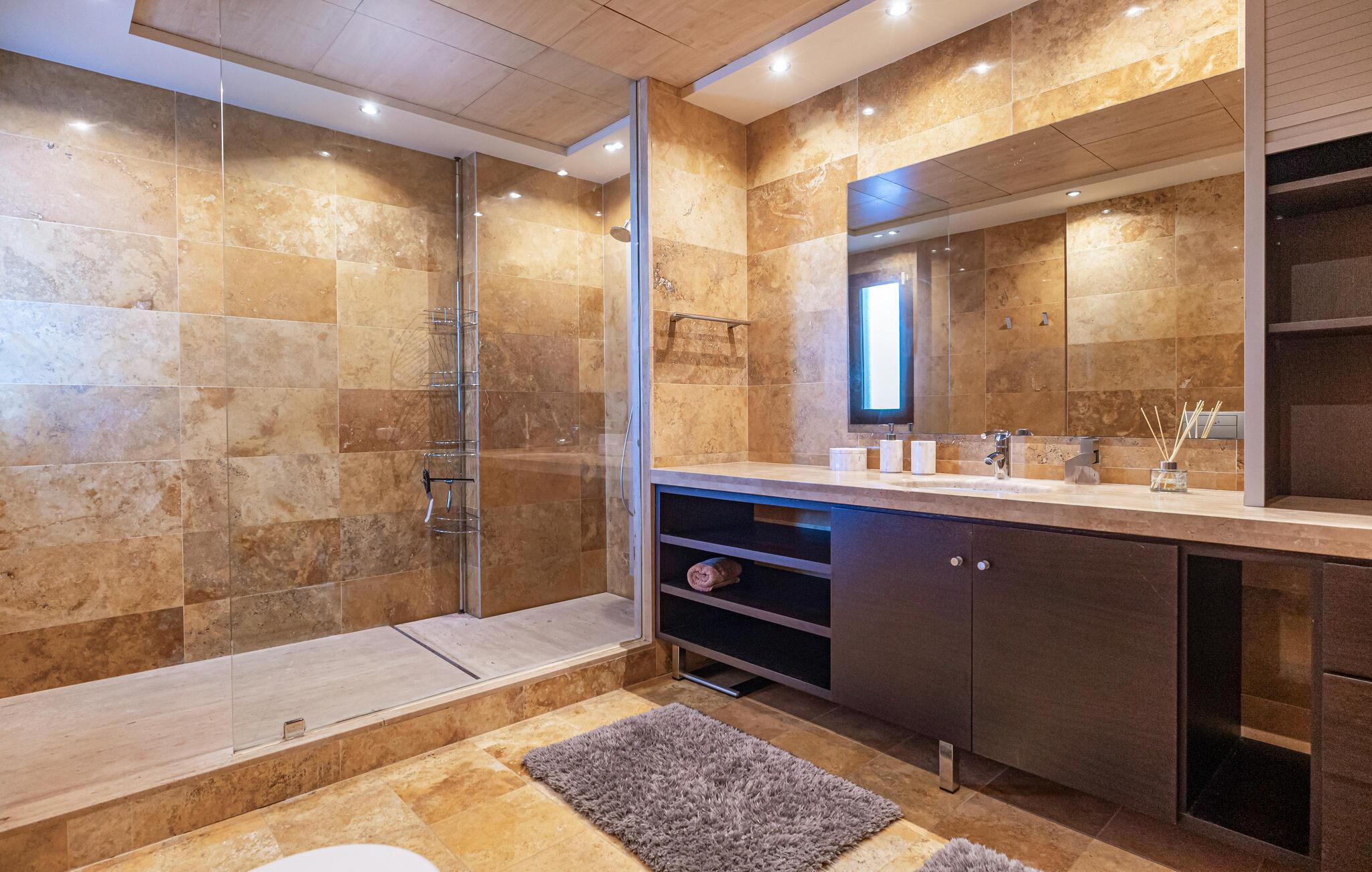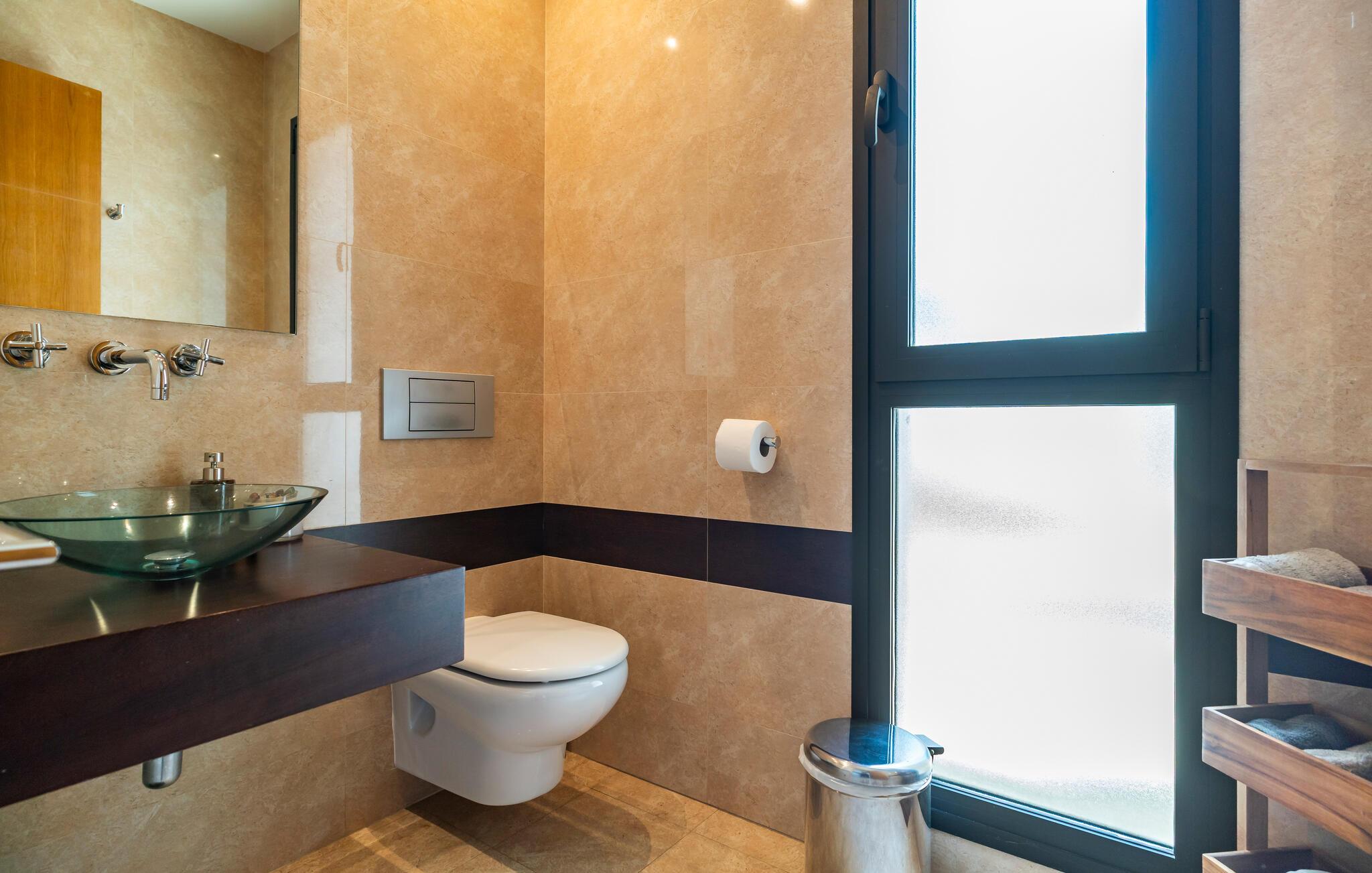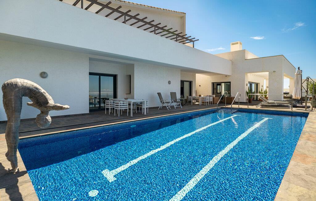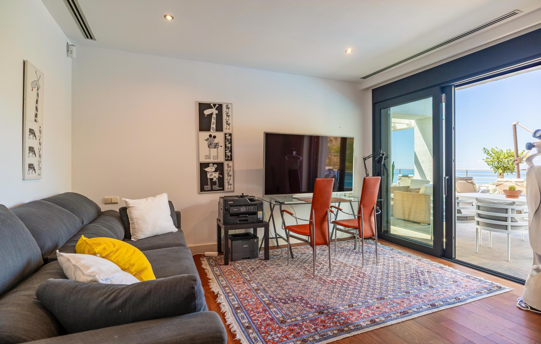 Denne eksklusive villa vil forkæle jer med alt hvad I behøver til en drømmeferie og tilbyder masser af plads til venner eller familie. De lyse, smagfulde værelser af høj kvalitet opfylder de højeste standarder. Med havet altid i sigte kan I fremtrylle kulinariske højdepunkter i det topmoderne køkken og spise sammen med en stor gruppe. Træn i fitnesscentret, stream en god serier, og nyd gode samtaler med et glas vin.