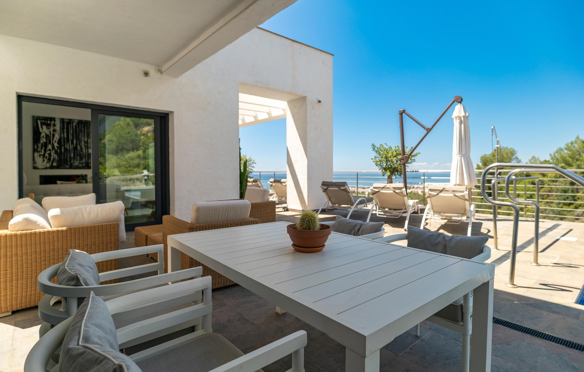 Forkæl jer selv med luksus og komfort i dette rummelige feriehus med pool og havudsigt.